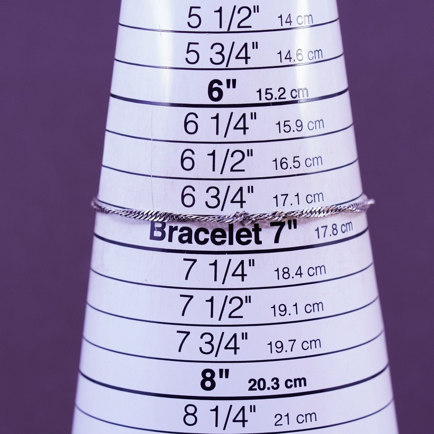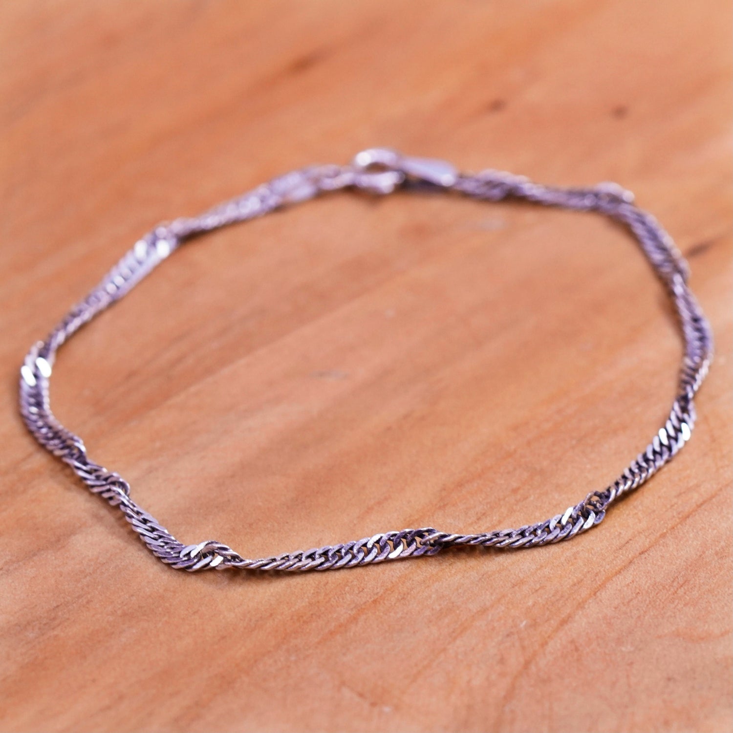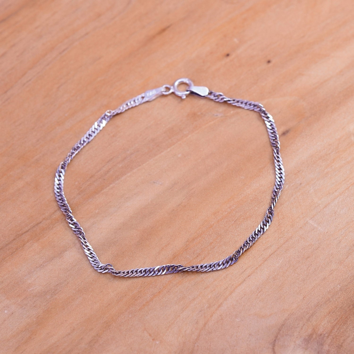 7", 2mm, vintage Sterling silver handmade bracelet, Italy 925 twisted flatten curb chain, stamped FAS