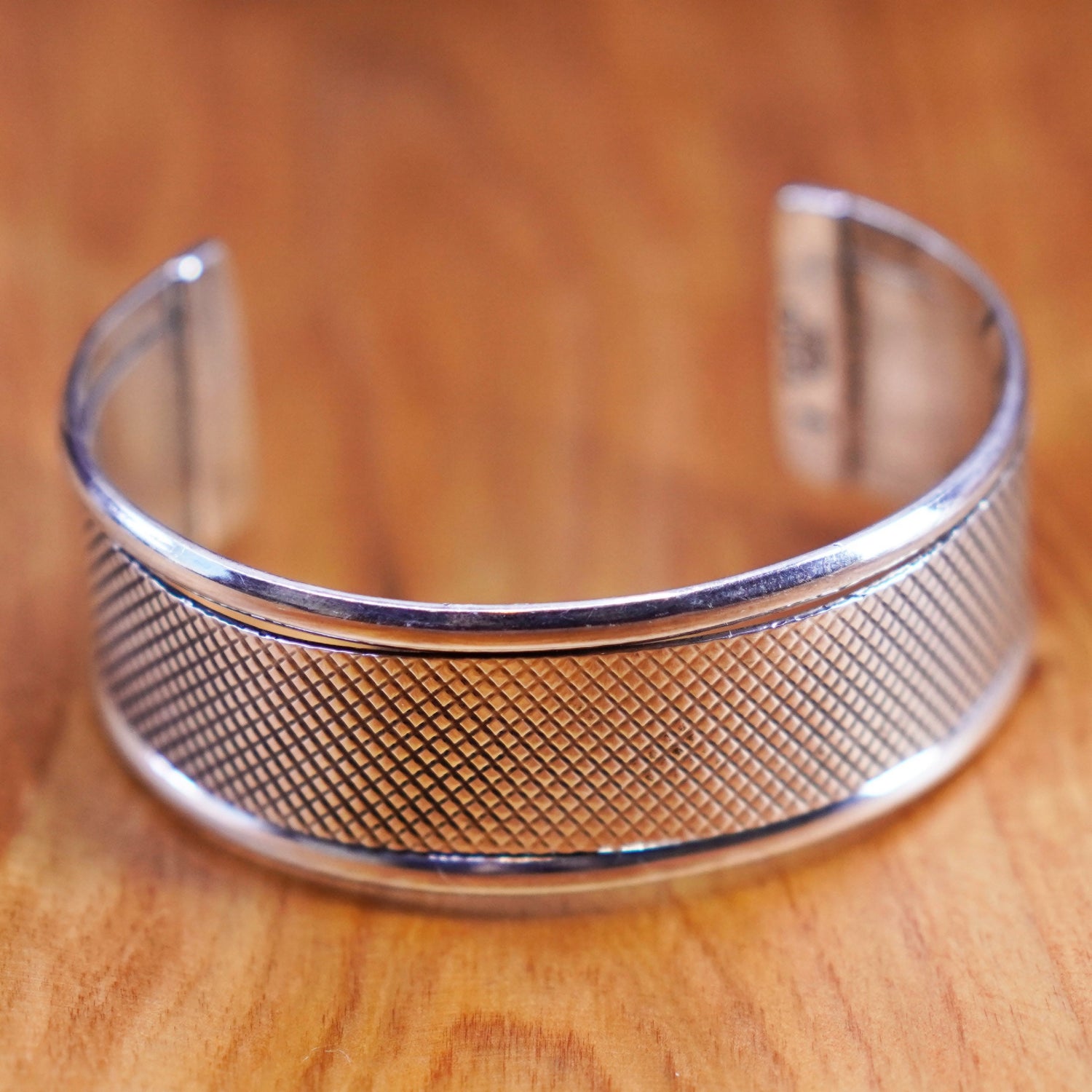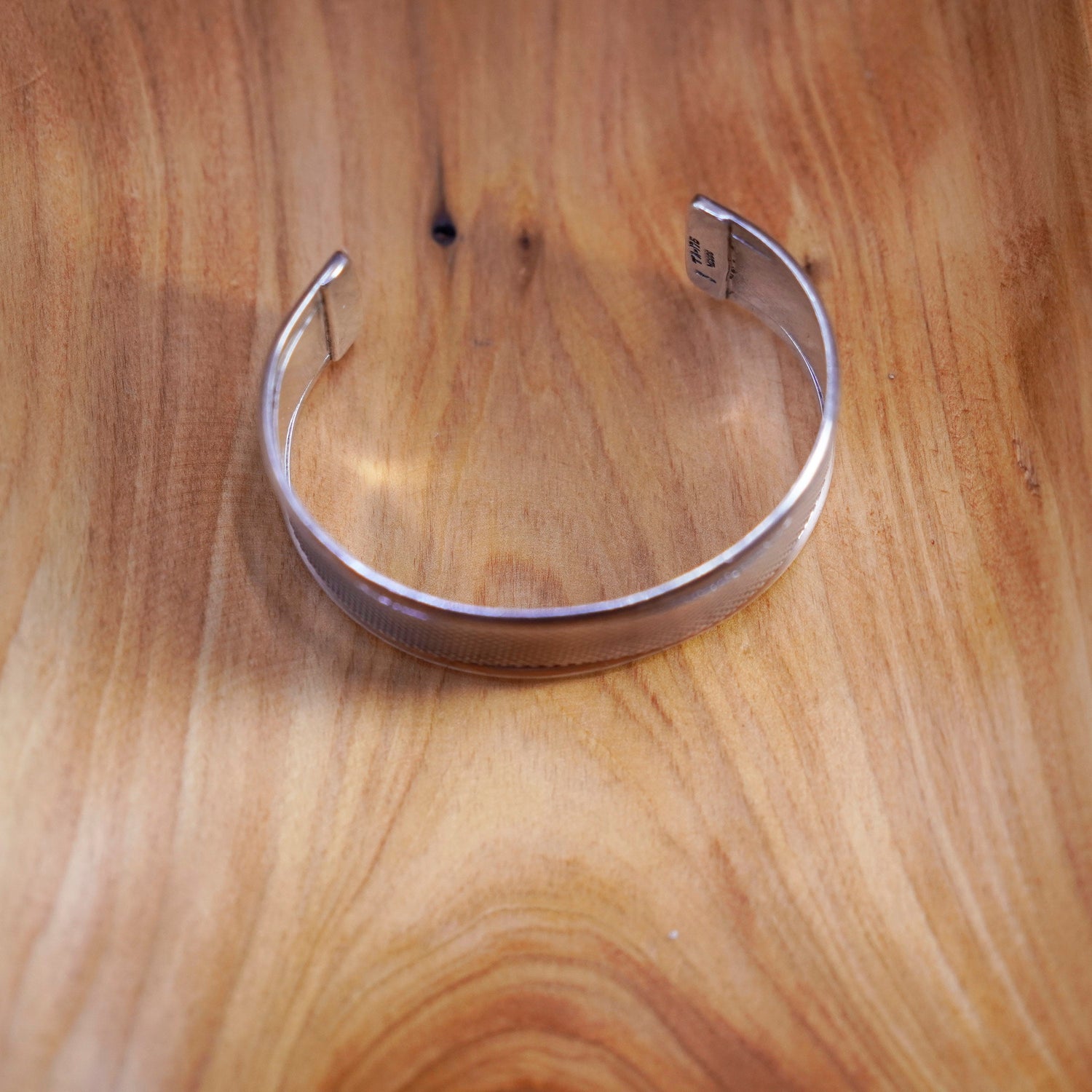 7", Vintage Mexico Sterling silver handmade bracelet, textured 925 cuff, stamped 925 Mexico TA-116