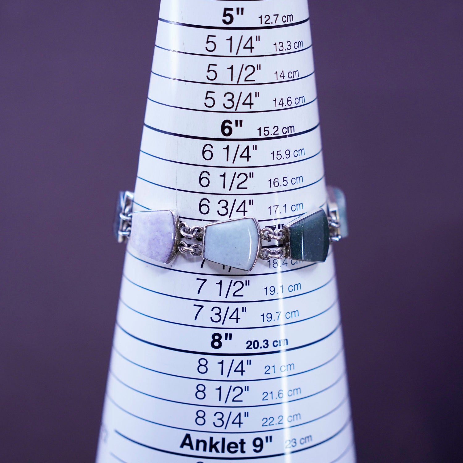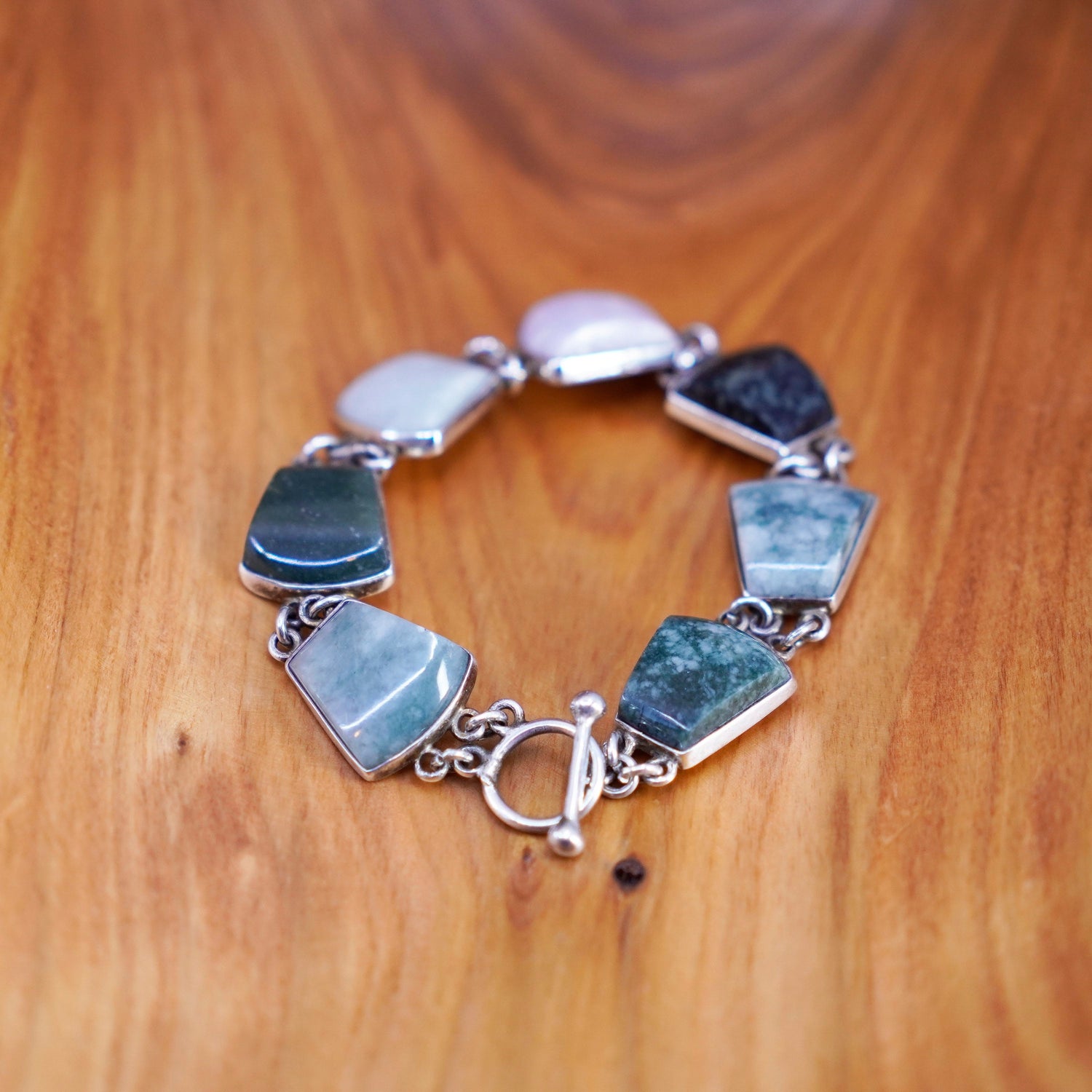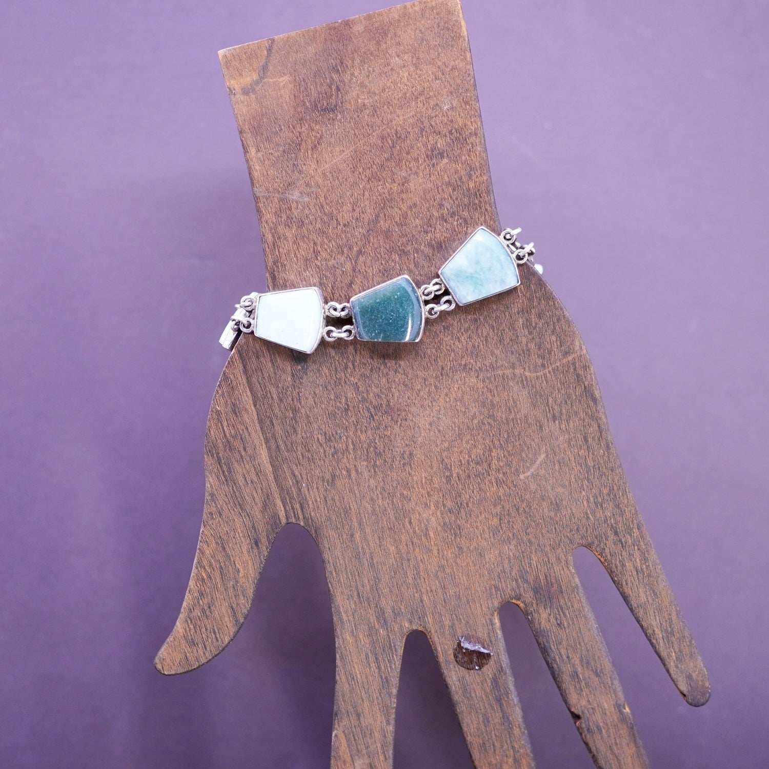 7”, vintage Sterling 925 silver handmade bracelet with various jade carnelian