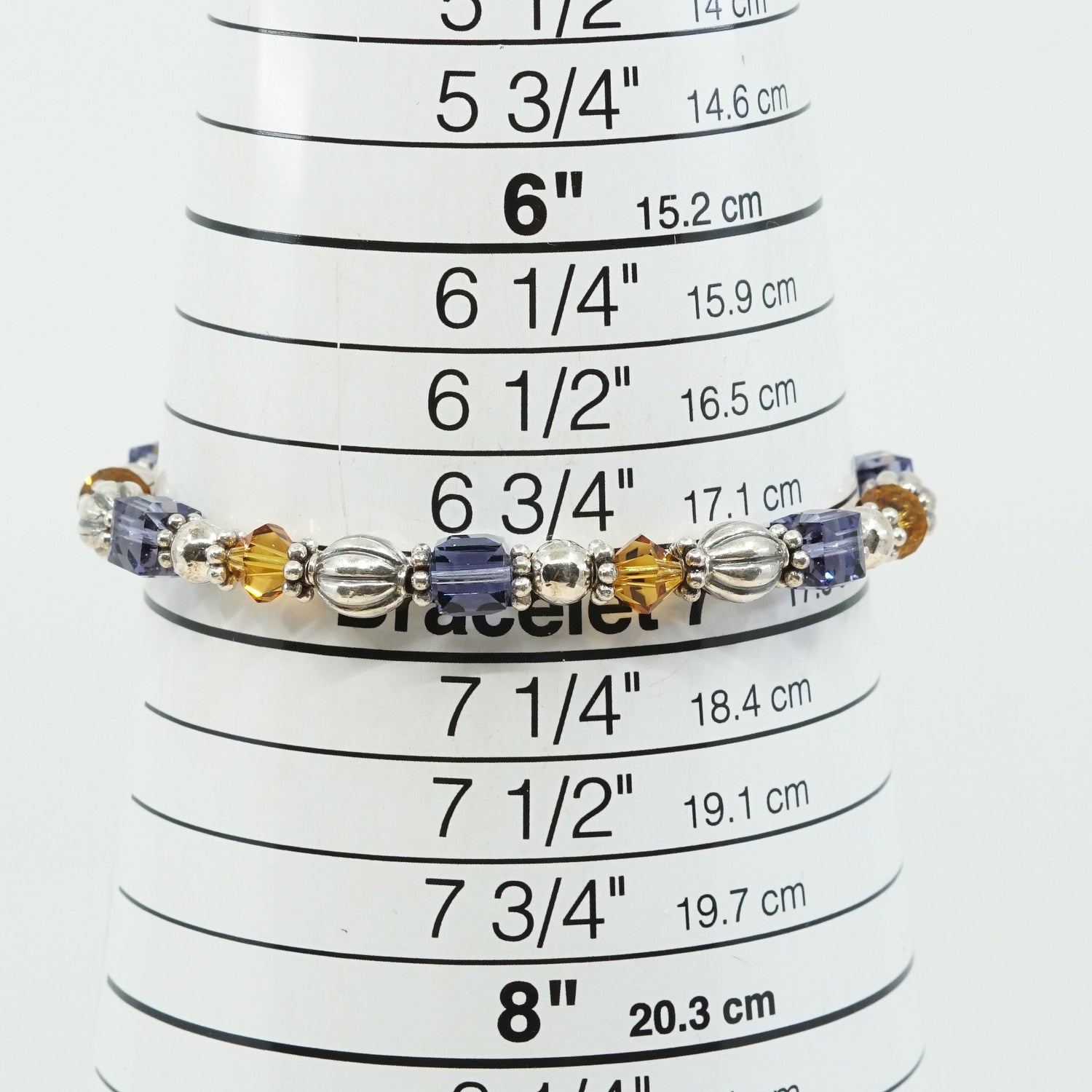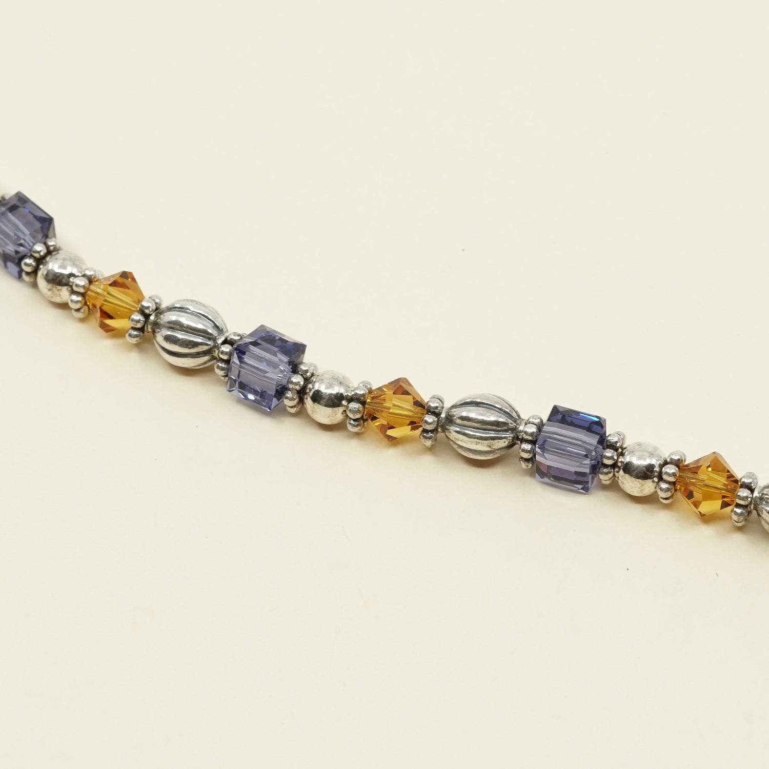 7", VTG Sterling 925 silver handmade bracelet w/ purple, yellow Swarovski beads