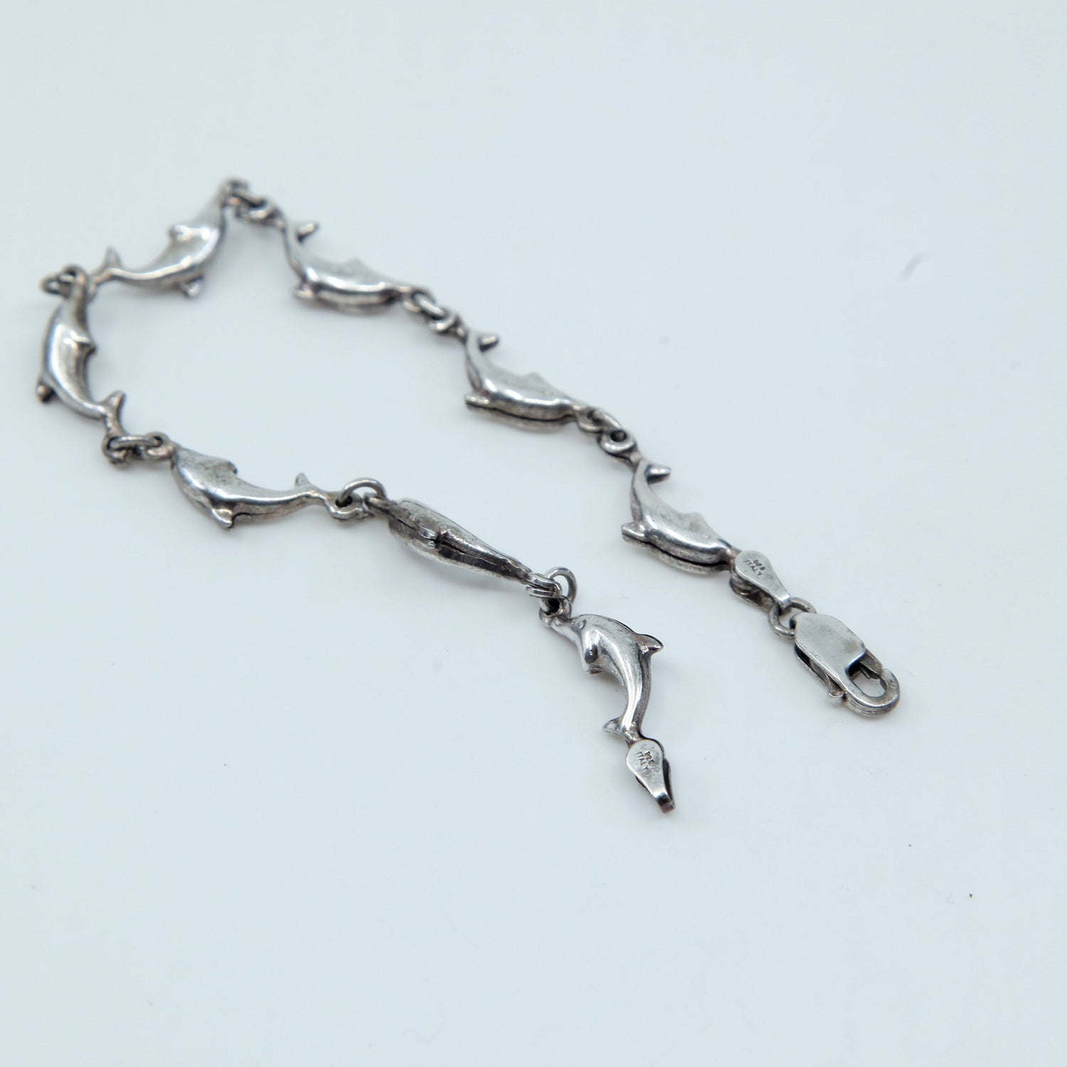 7.", VTG Sterling silver handmade bracelet, solid 925 silver dolphin links
