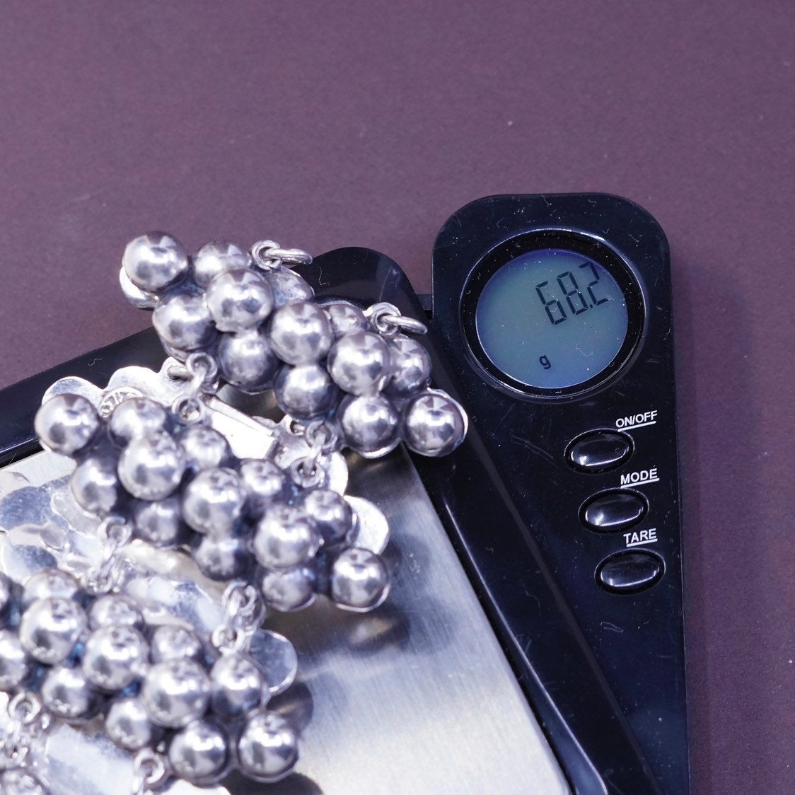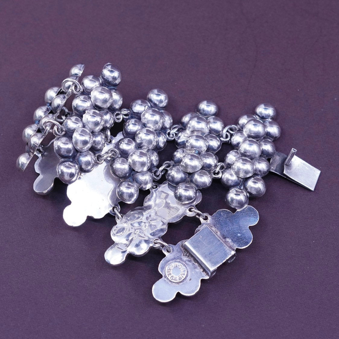 7”, vtg Sterling silver handmade cluster beads bracelet, mexico 925 beads chain