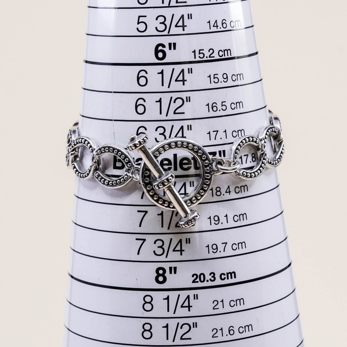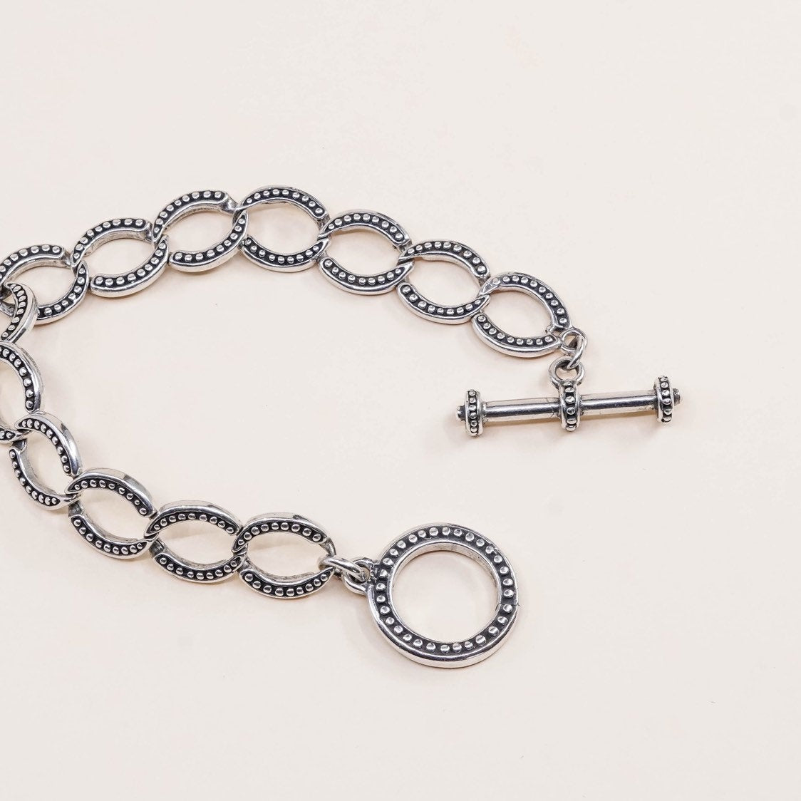 7", Vintage sterling silver link bracelet, charm bracelet, fine 925 silver curb link chain with beads Details and toggle closure, silver tested