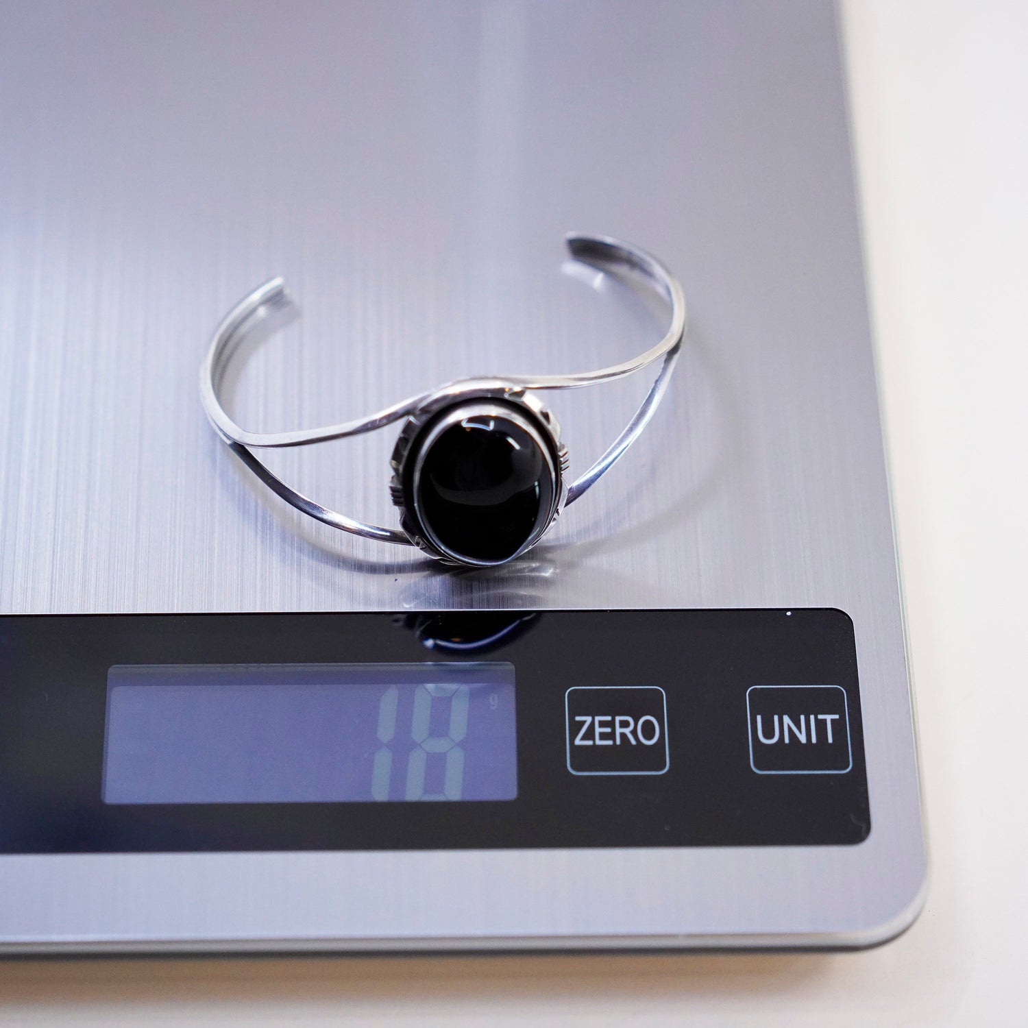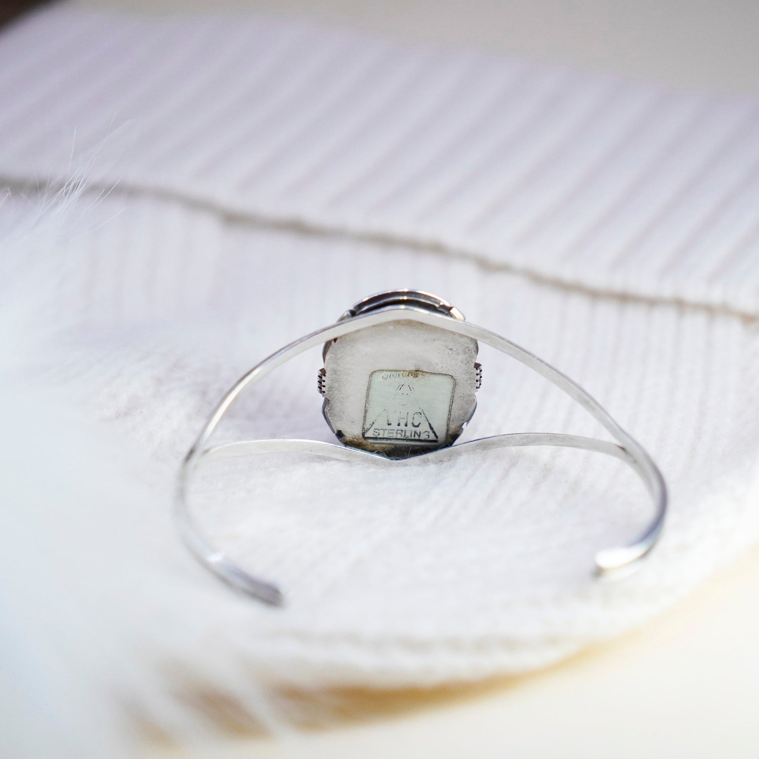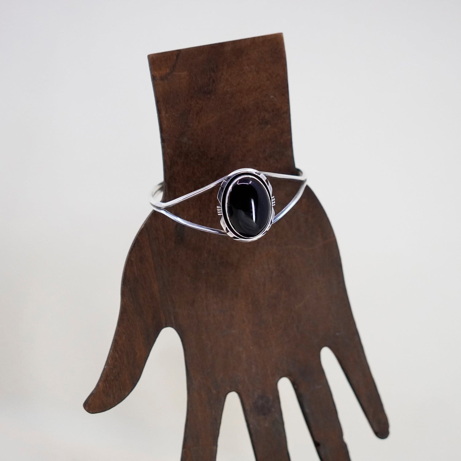 7", Vintage VHC Native American sterling silver double strands cuff bracelet with onyx, Stamped Sterling VHC