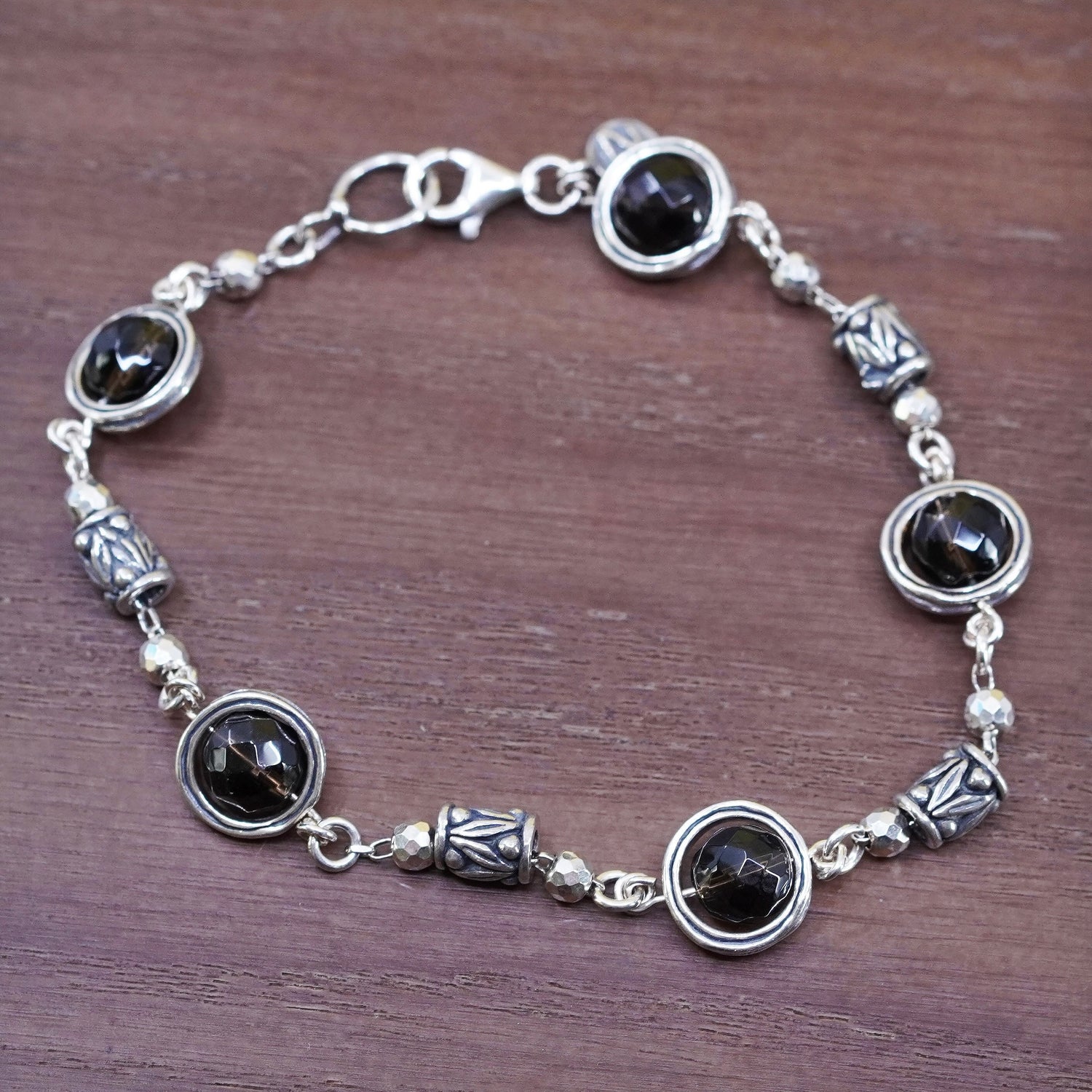 8”, Israel Paz PZ jewelry sterling 925 silver handmade bracelet w/ smoky quartz