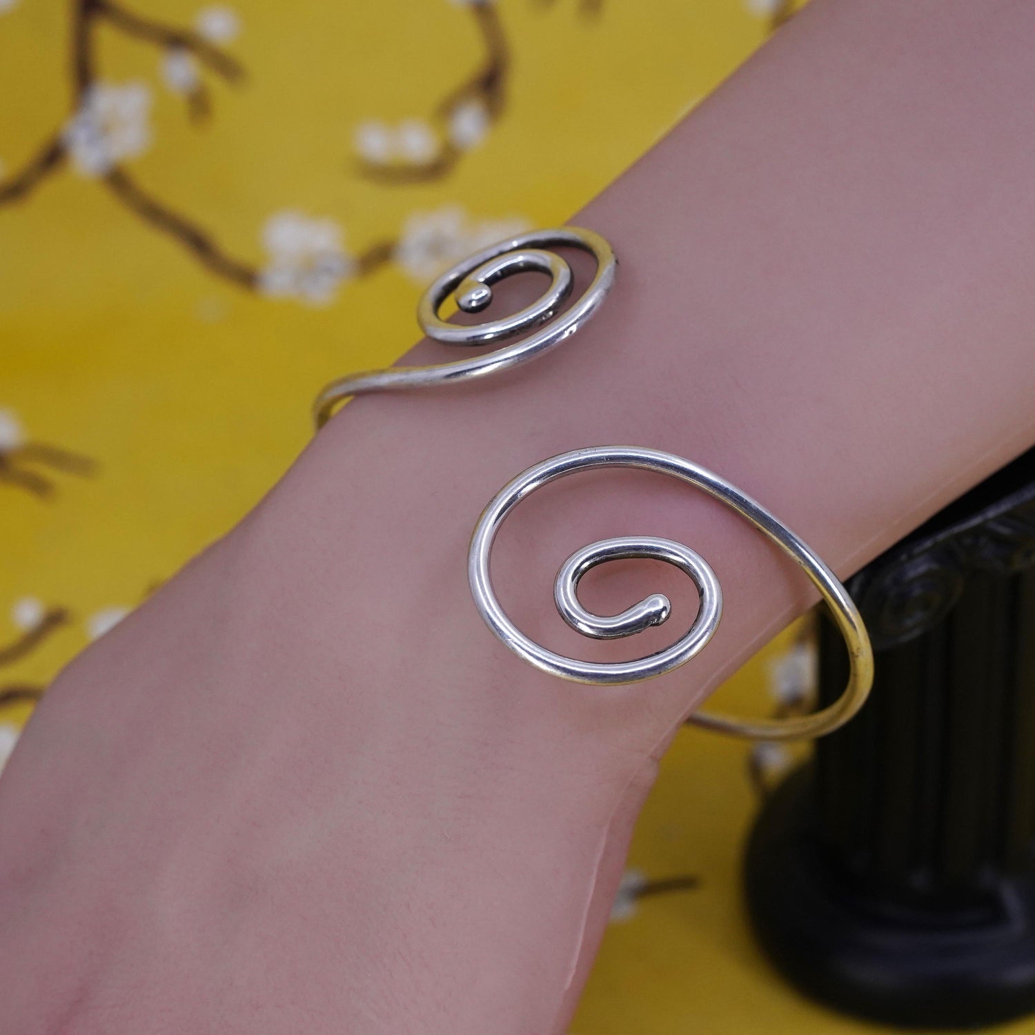 8”, Native American Dennis Ramone Sterling silver bracelet, 925 spiral cuff