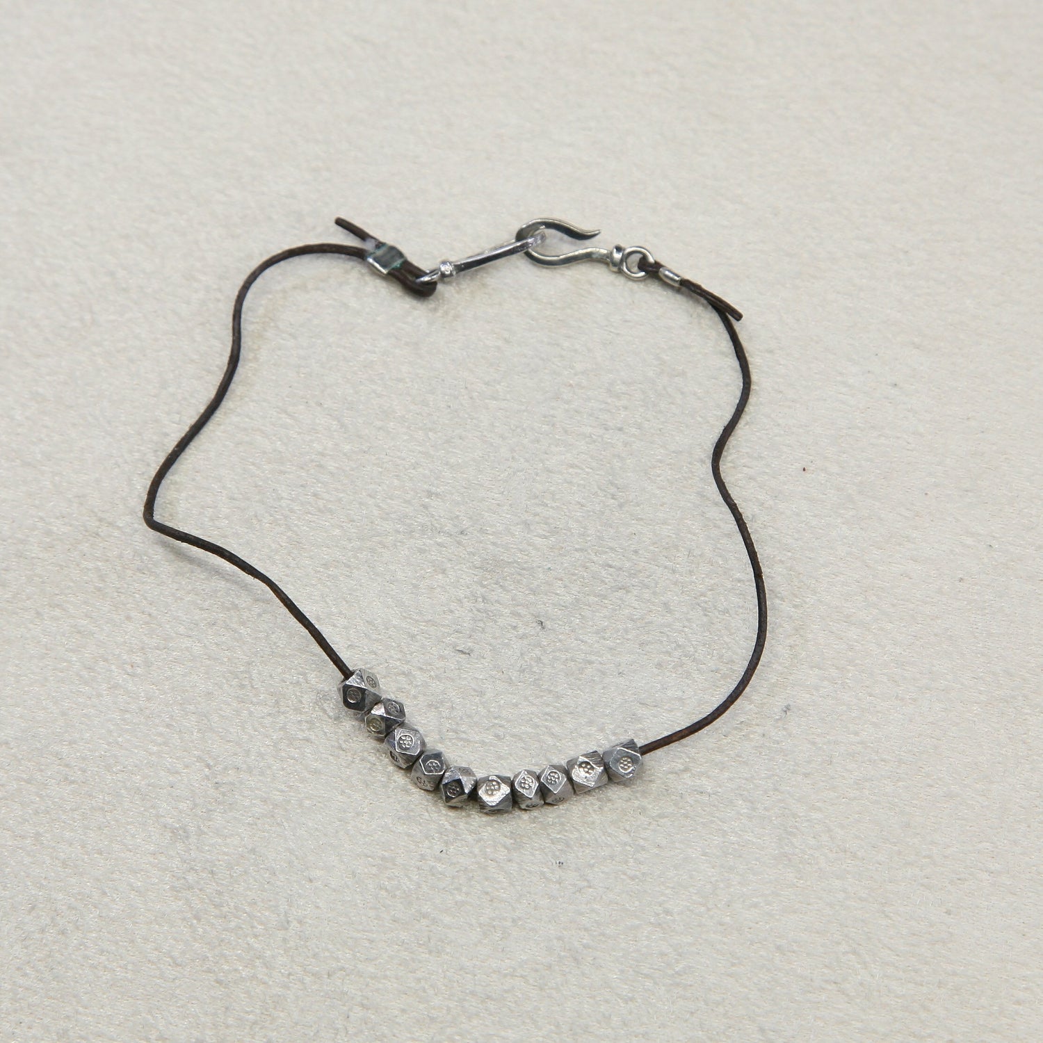 8" Vintage Sterling silver handmade bracelet, 925 beads w/ linen thread