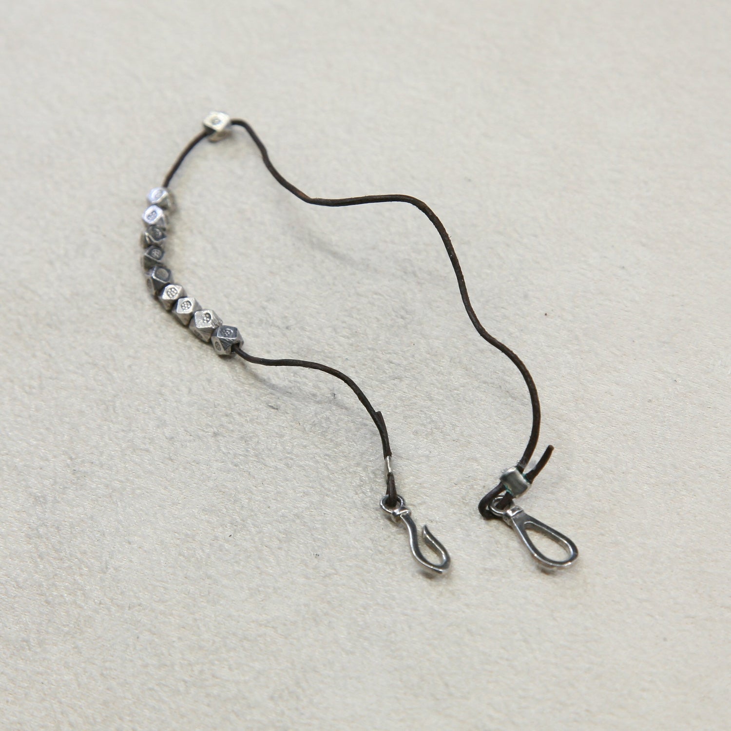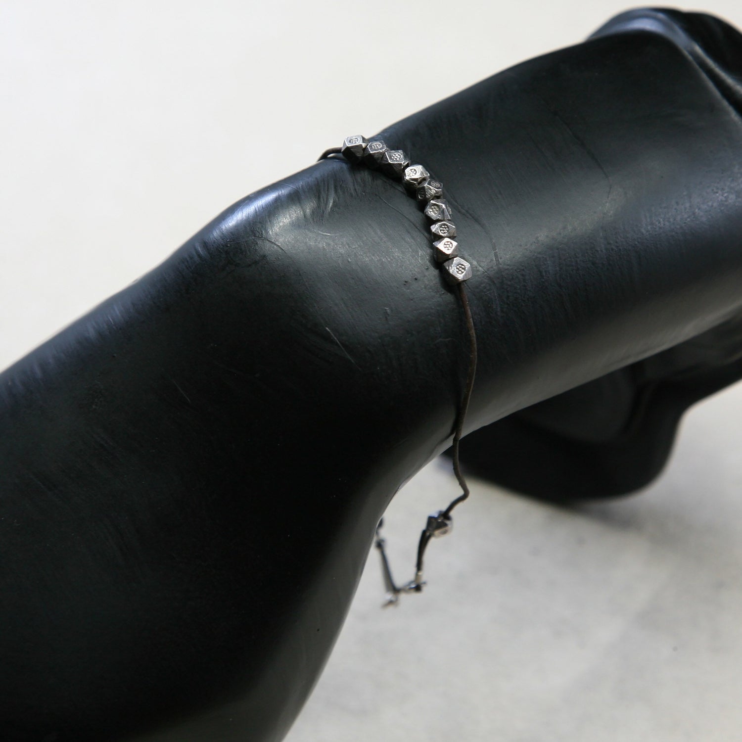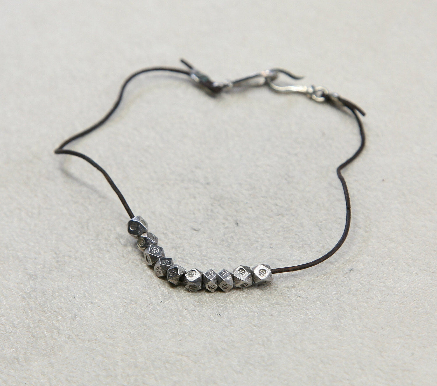 8" Vintage Sterling silver handmade bracelet, 925 silver beads with linen thread, stamped 25
