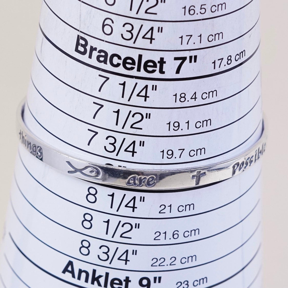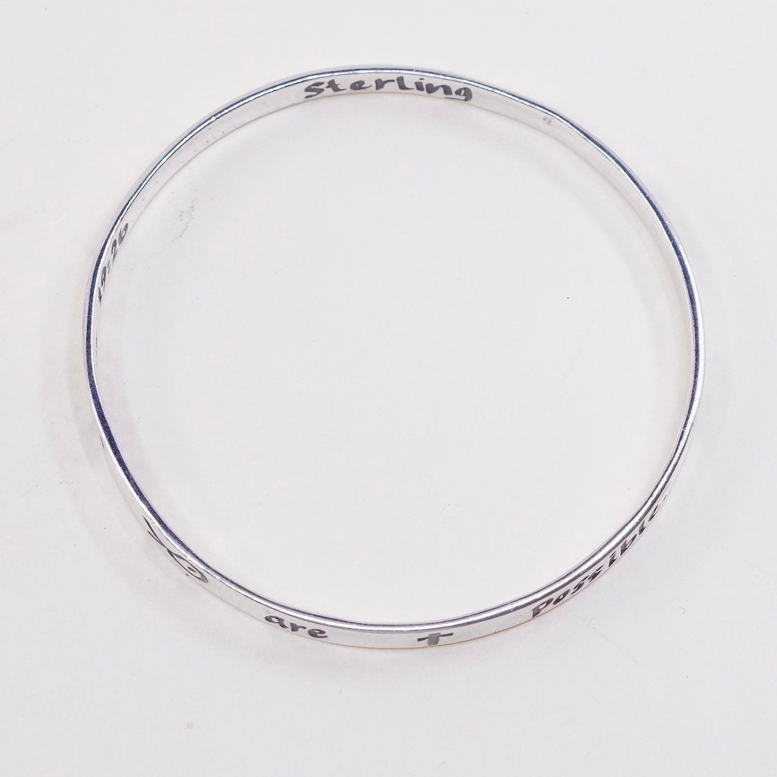 8", Vintage SRSB bible sterling silver handmade 925 silver bracelet, solid prayer cuff Embossed "with god all things are possible", stamped SRSB sterling Matthew 19:26
