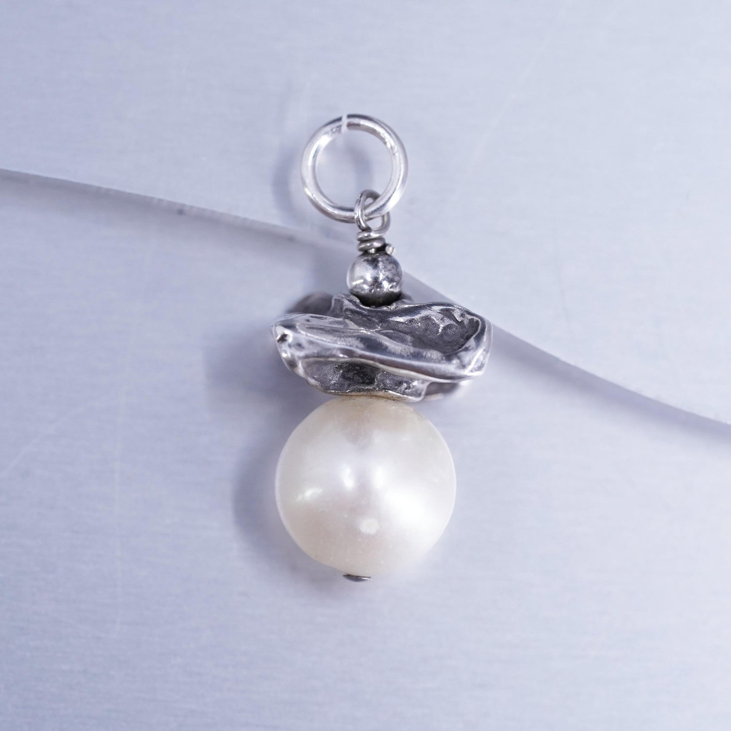 antique sterling 925 silver handmade charm pendant with pearl, silver tested