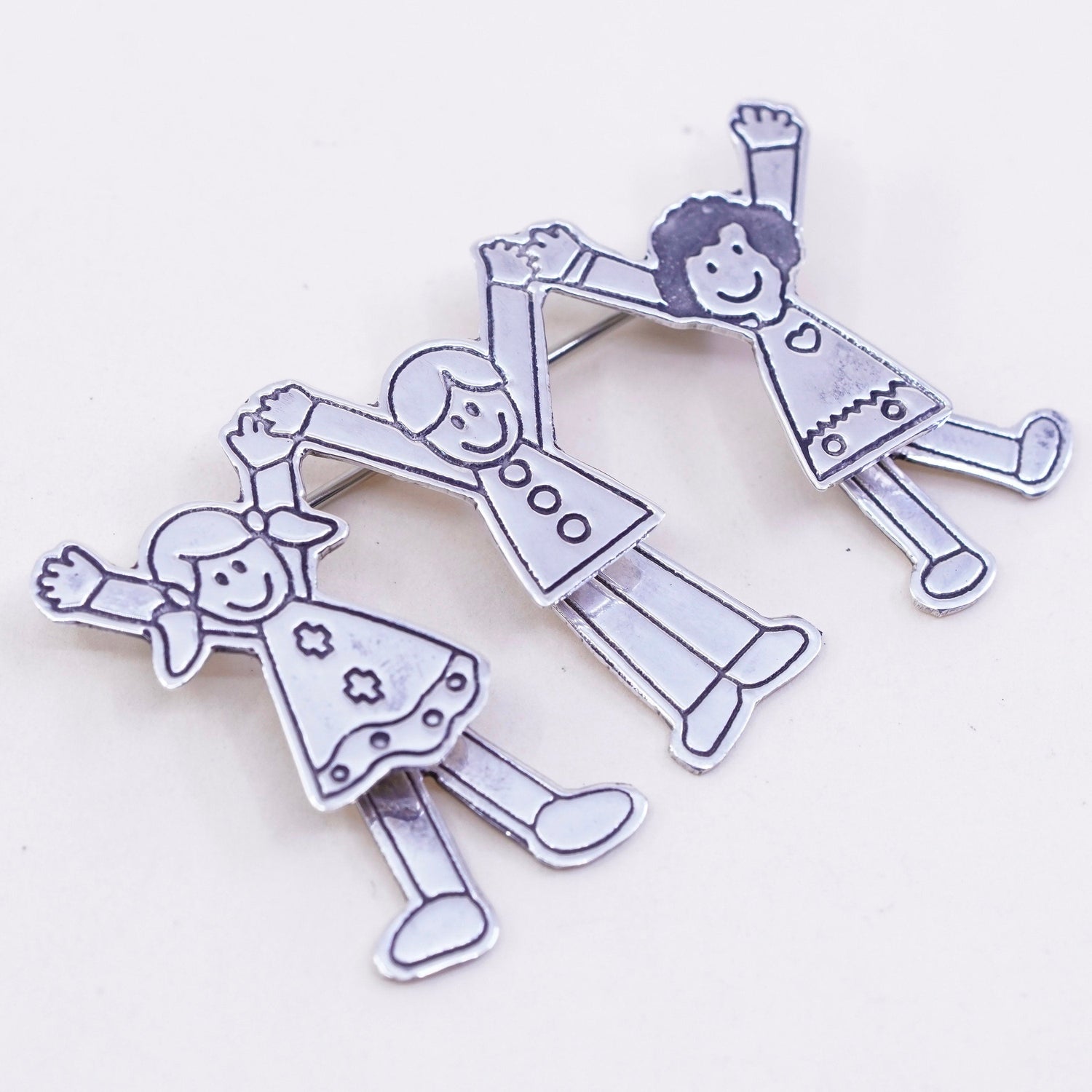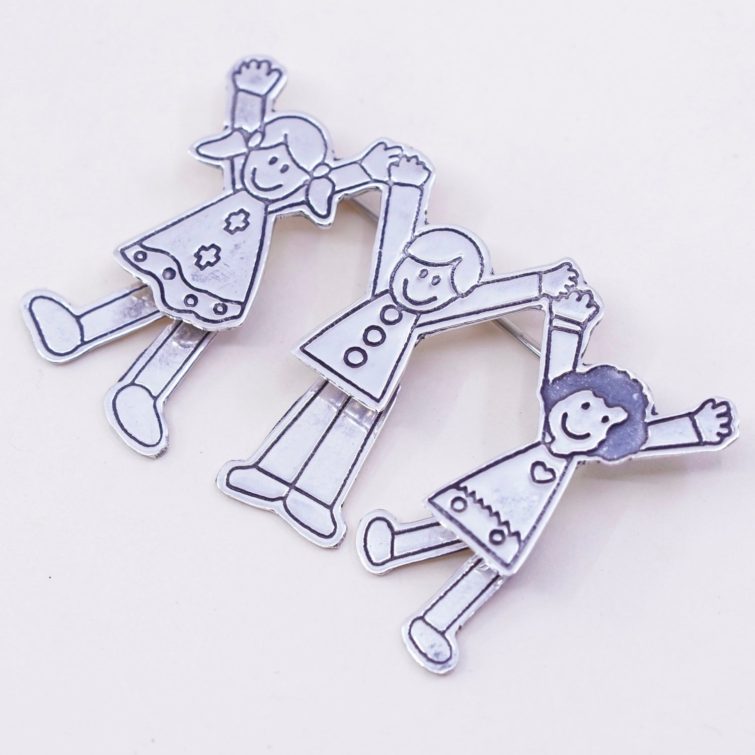 Antique sterling silver handmade brooch, 925 save the children with hearts, stamped 925 EFS Mexico