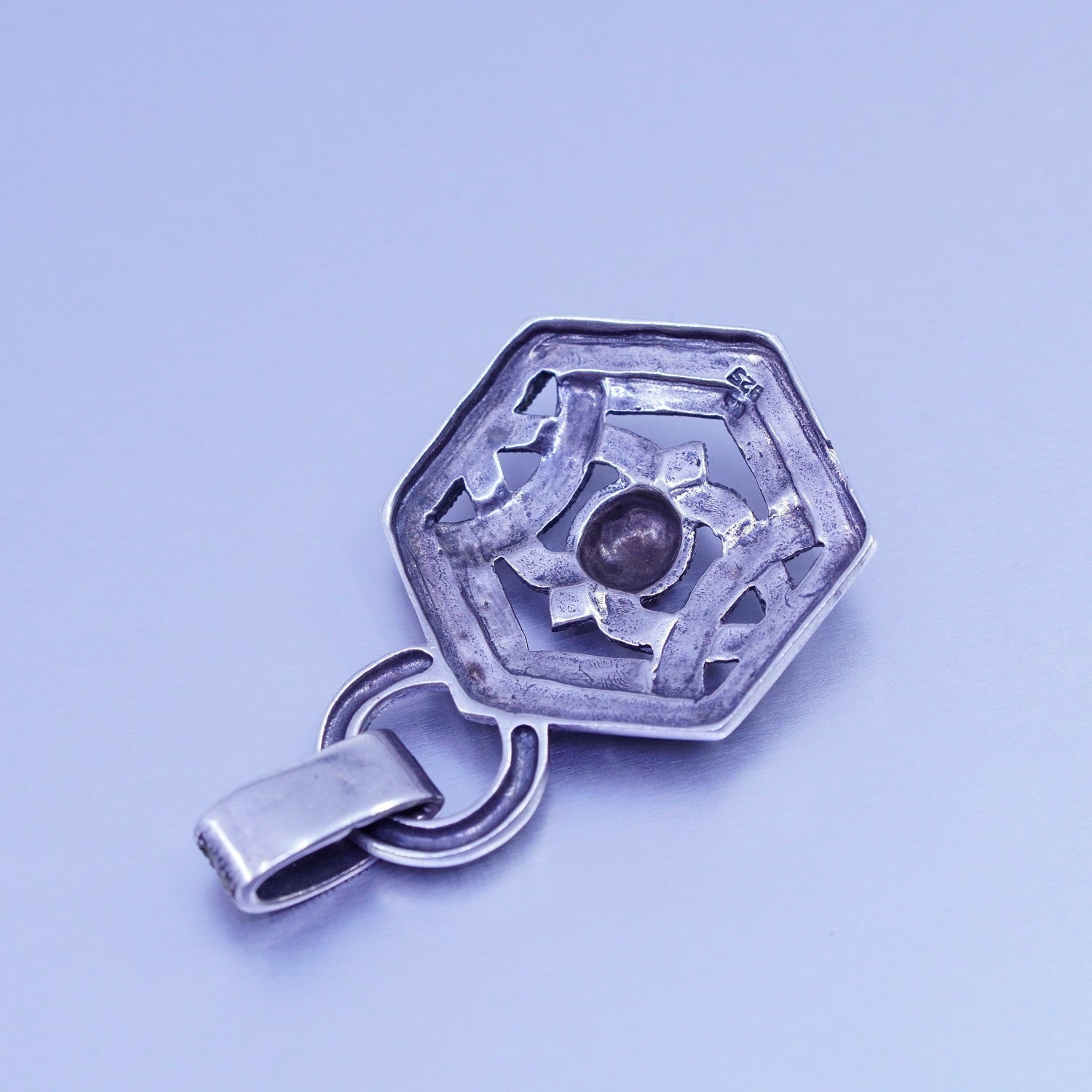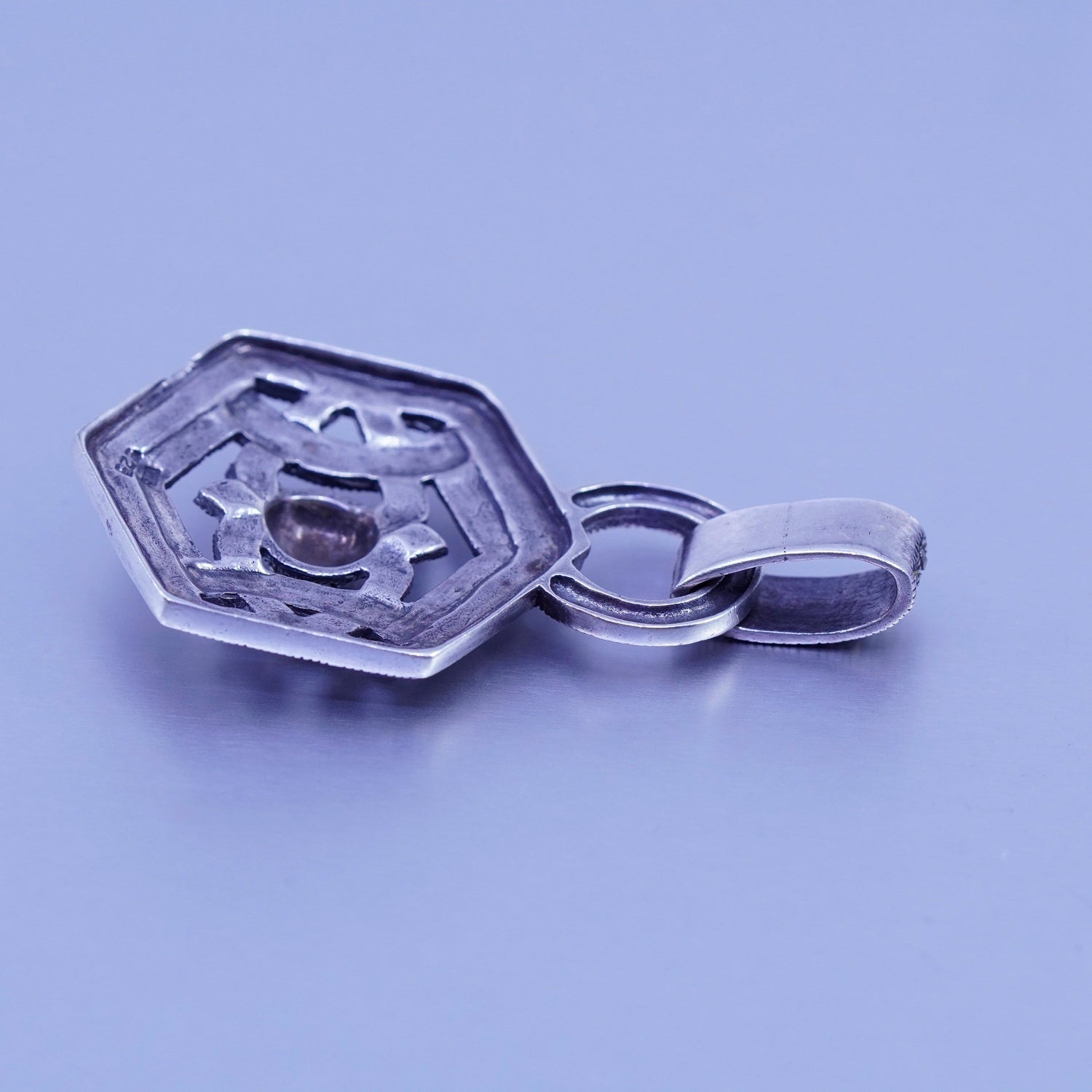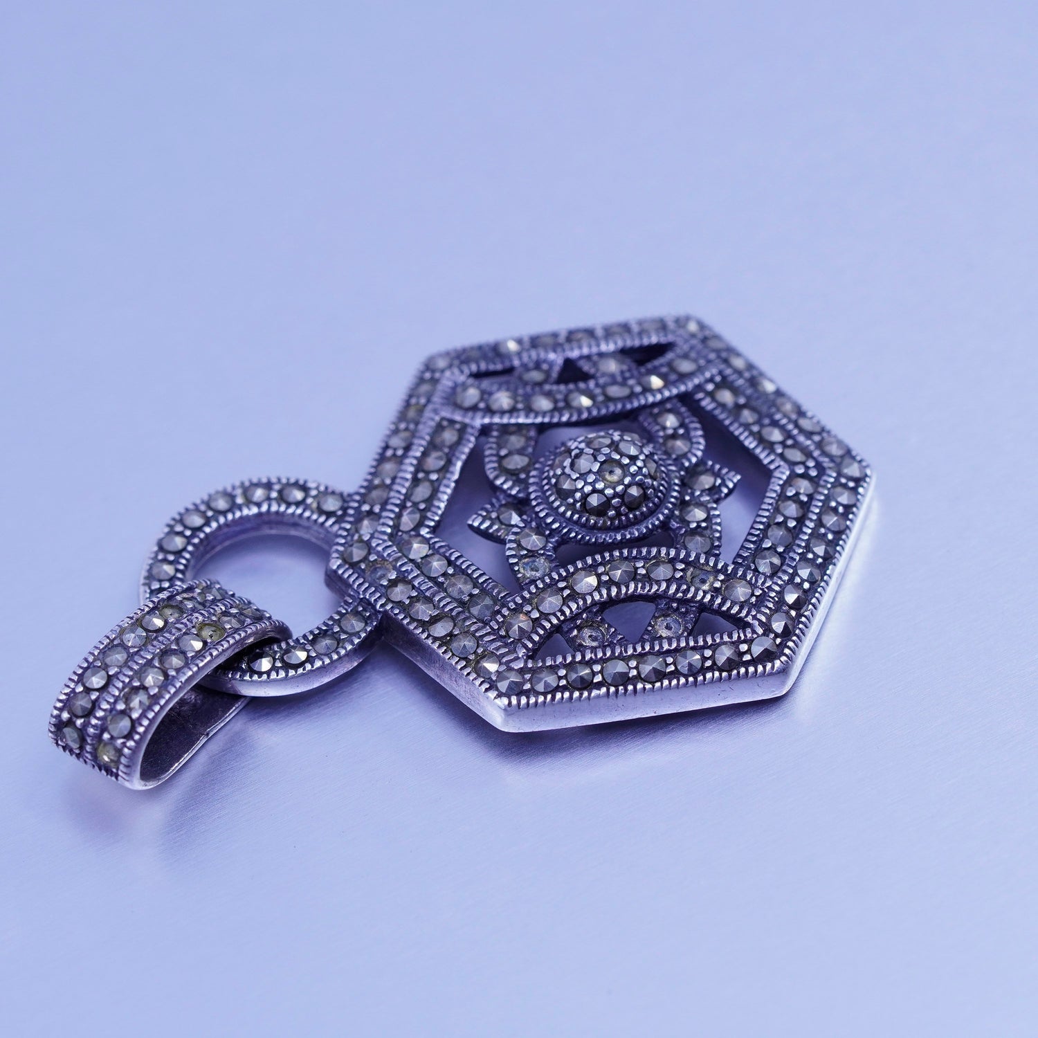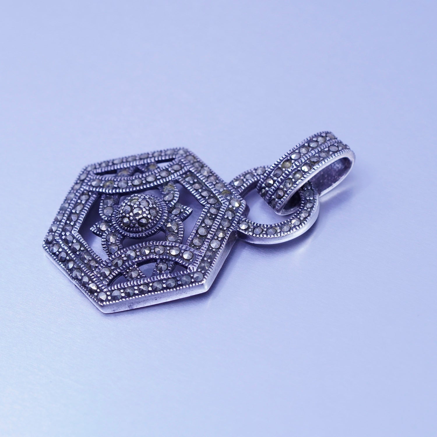 Antique Sterling silver handmade charm, 925 hexagram pendant with Marcasite. Stamped 925