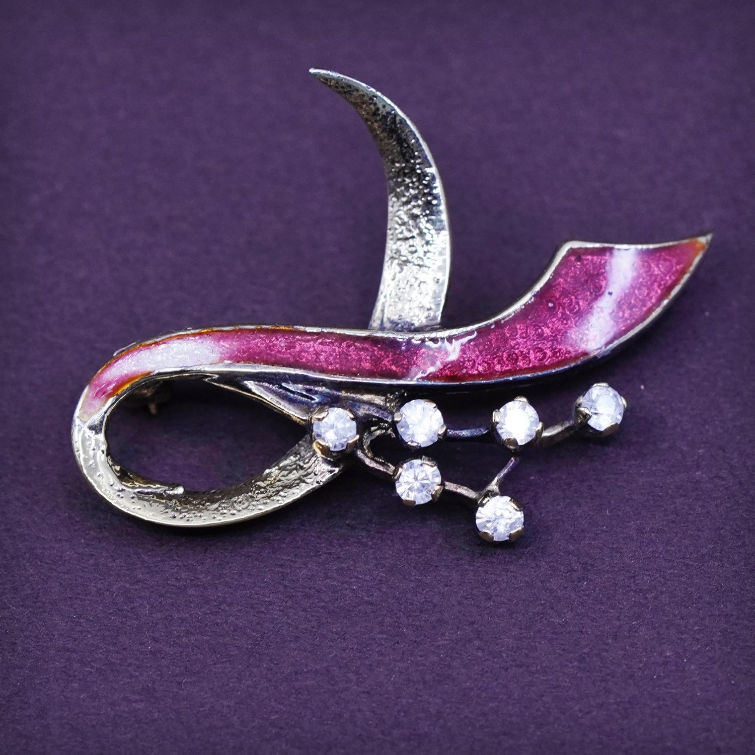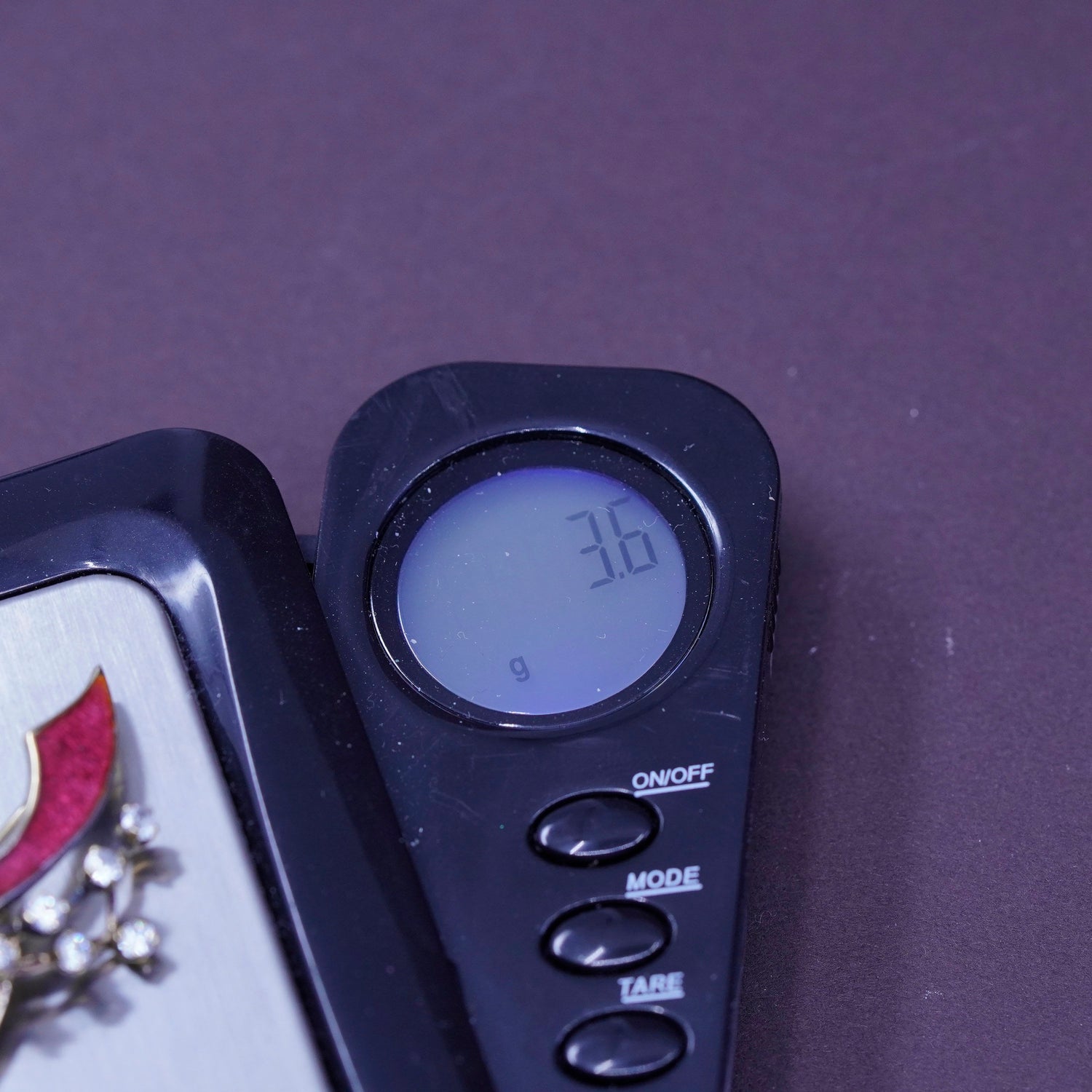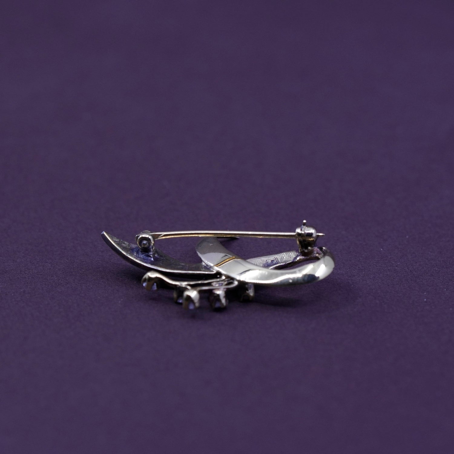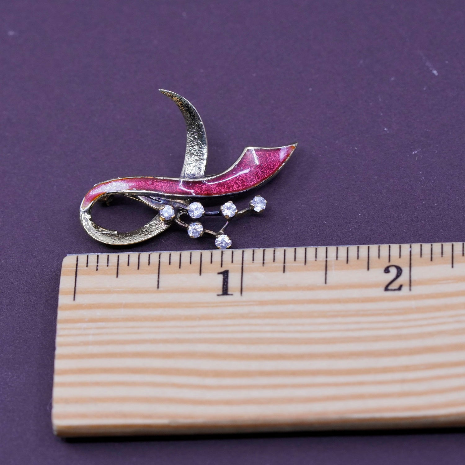 antique vermeil gold over sterling 925 silver flower brooch w/ enamel and Cz