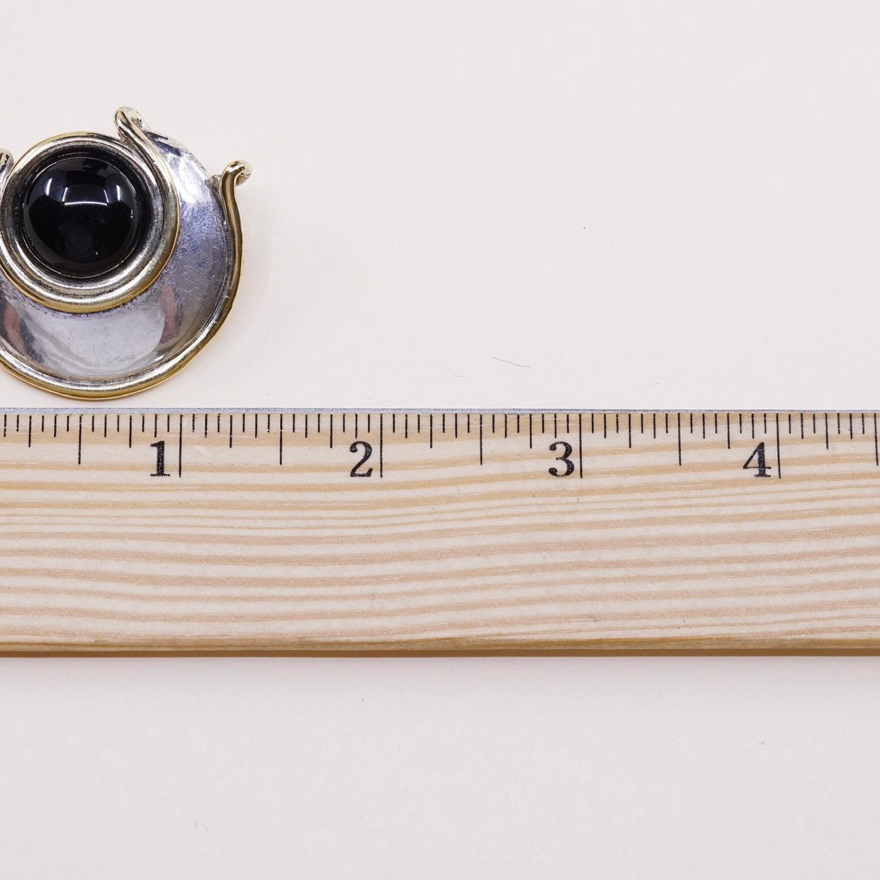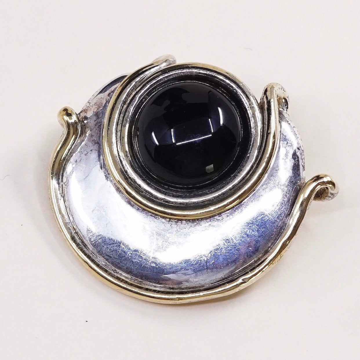 Vintage (000935) Brian Bergner Sterling silver chunky lightweight clip on earrings, 925 silver swirl with brass trim and obsidian, stamped 925 Brian