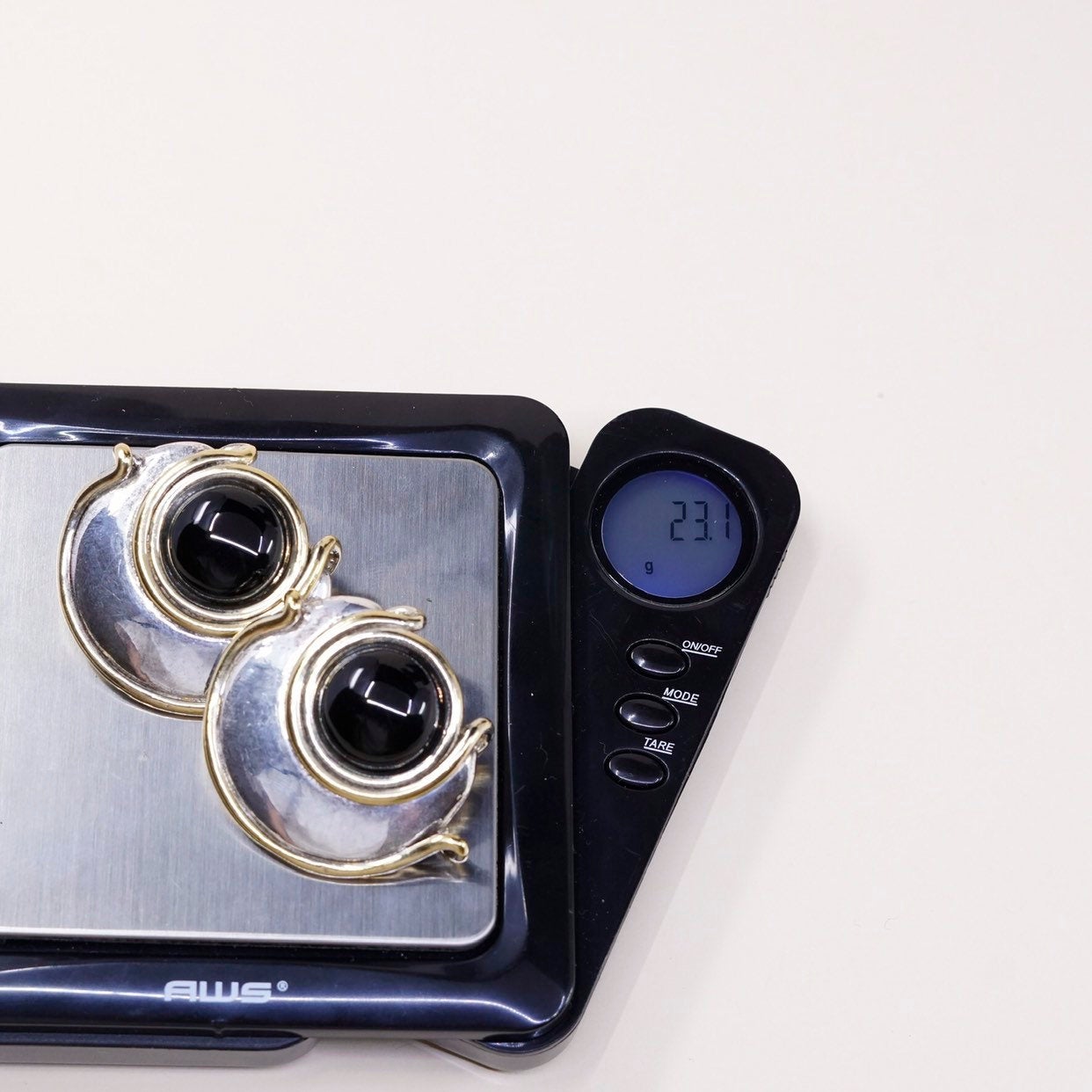 Brian Bergner Sterling 925 silver chunky lightweight clip on earrings obsidian