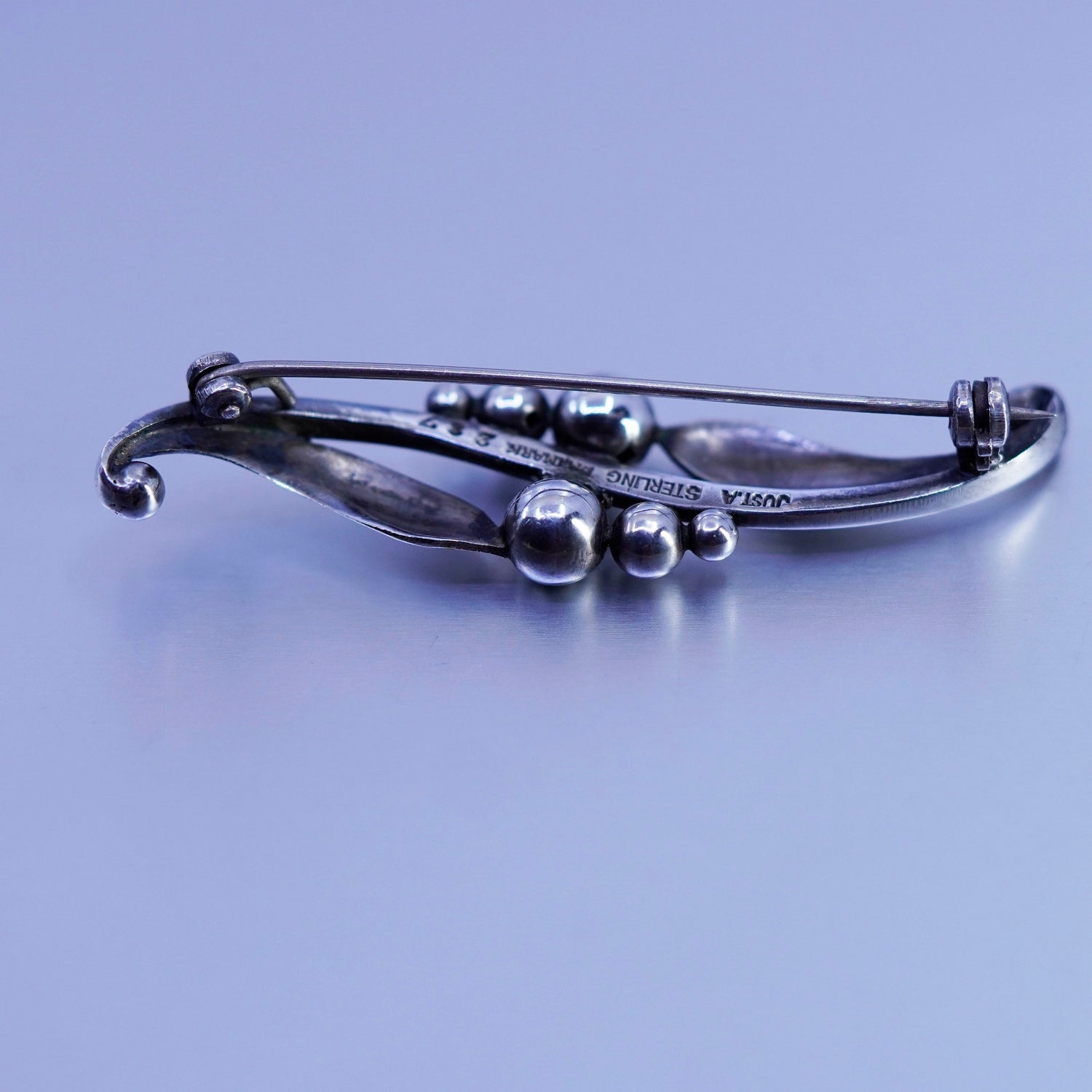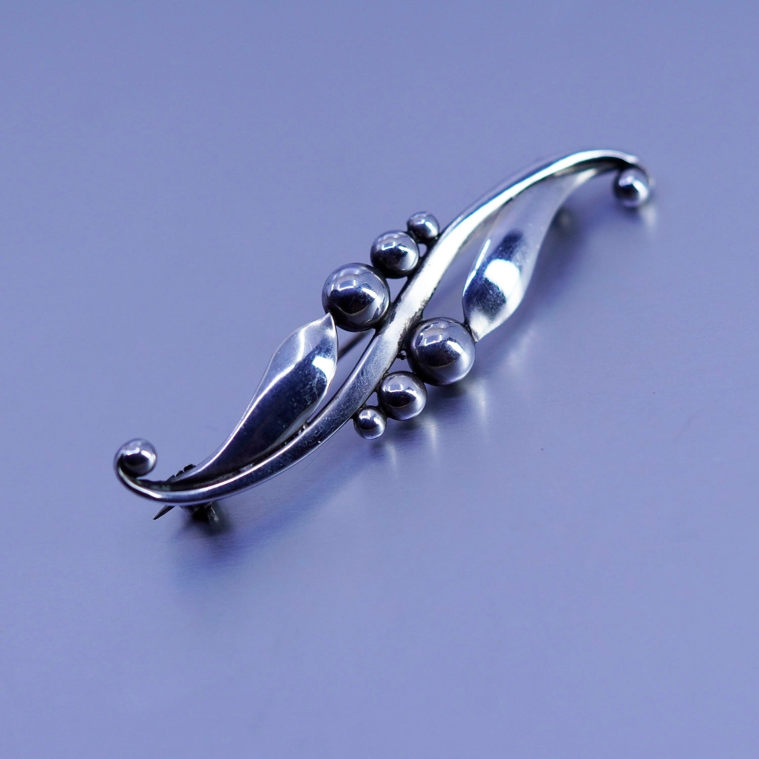 Denmark Just A Anderson handmade Sterling 925 Silver wavy Brooch, stamped denmark Sterling Just A.