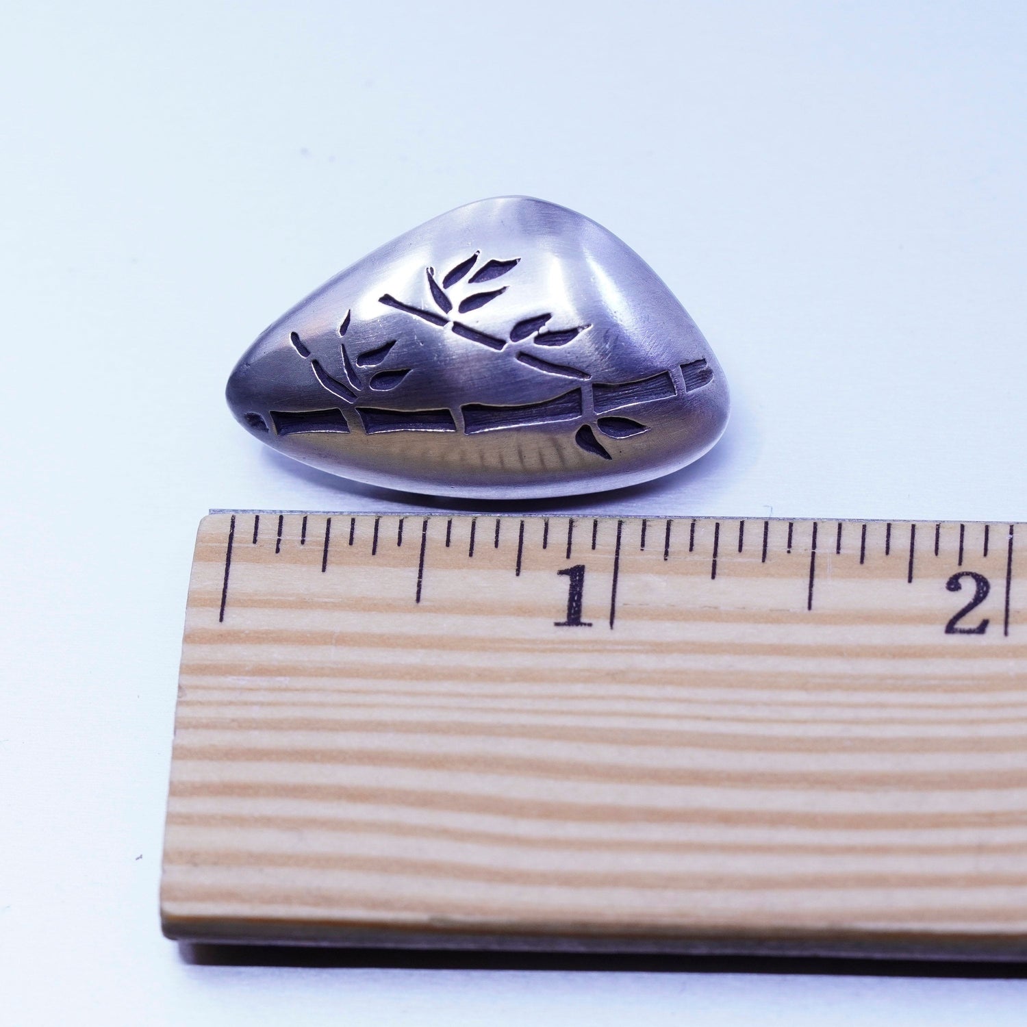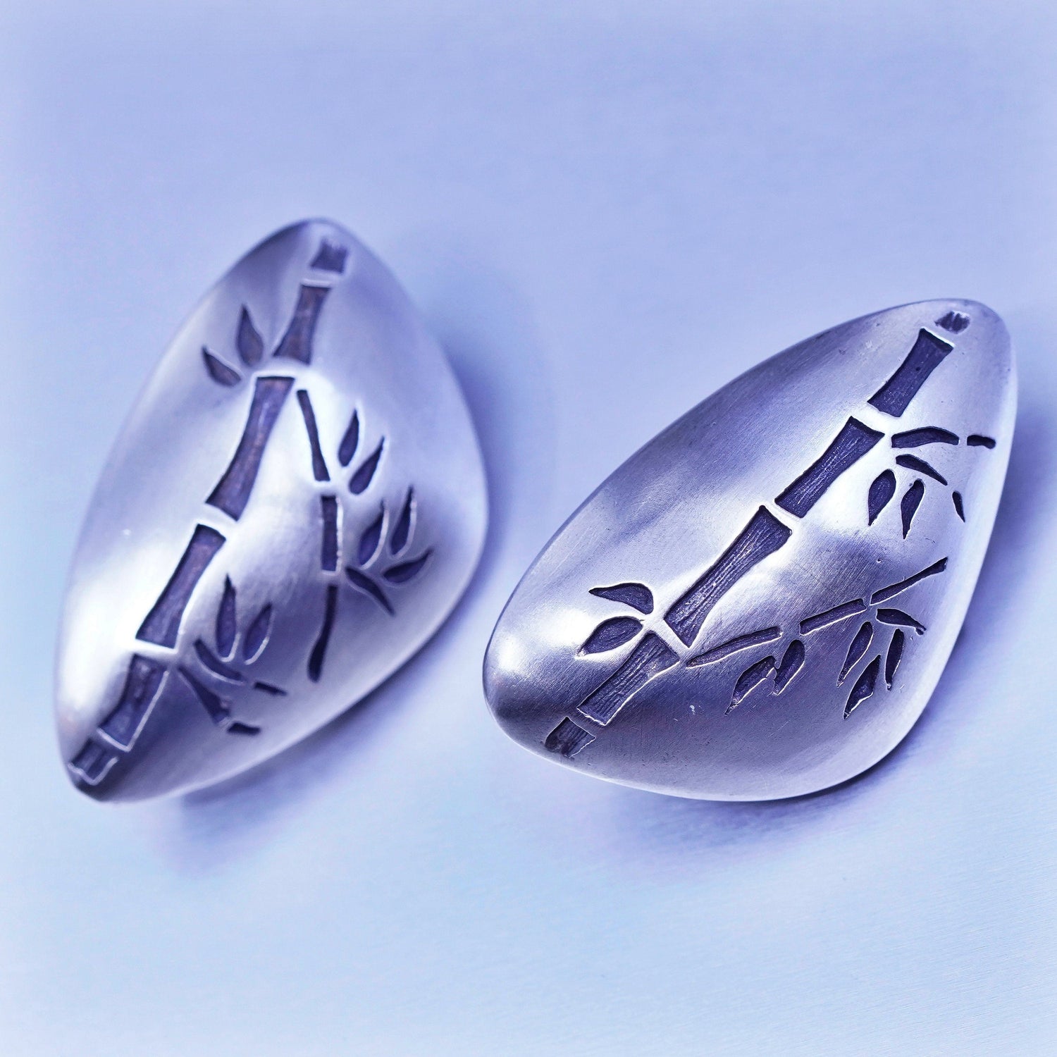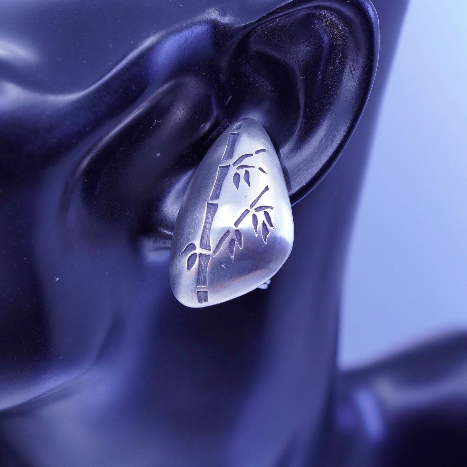 Designer modern Sterling silver handmade earrings, Matt 925 studs with bamboo, stamped silver, signed
