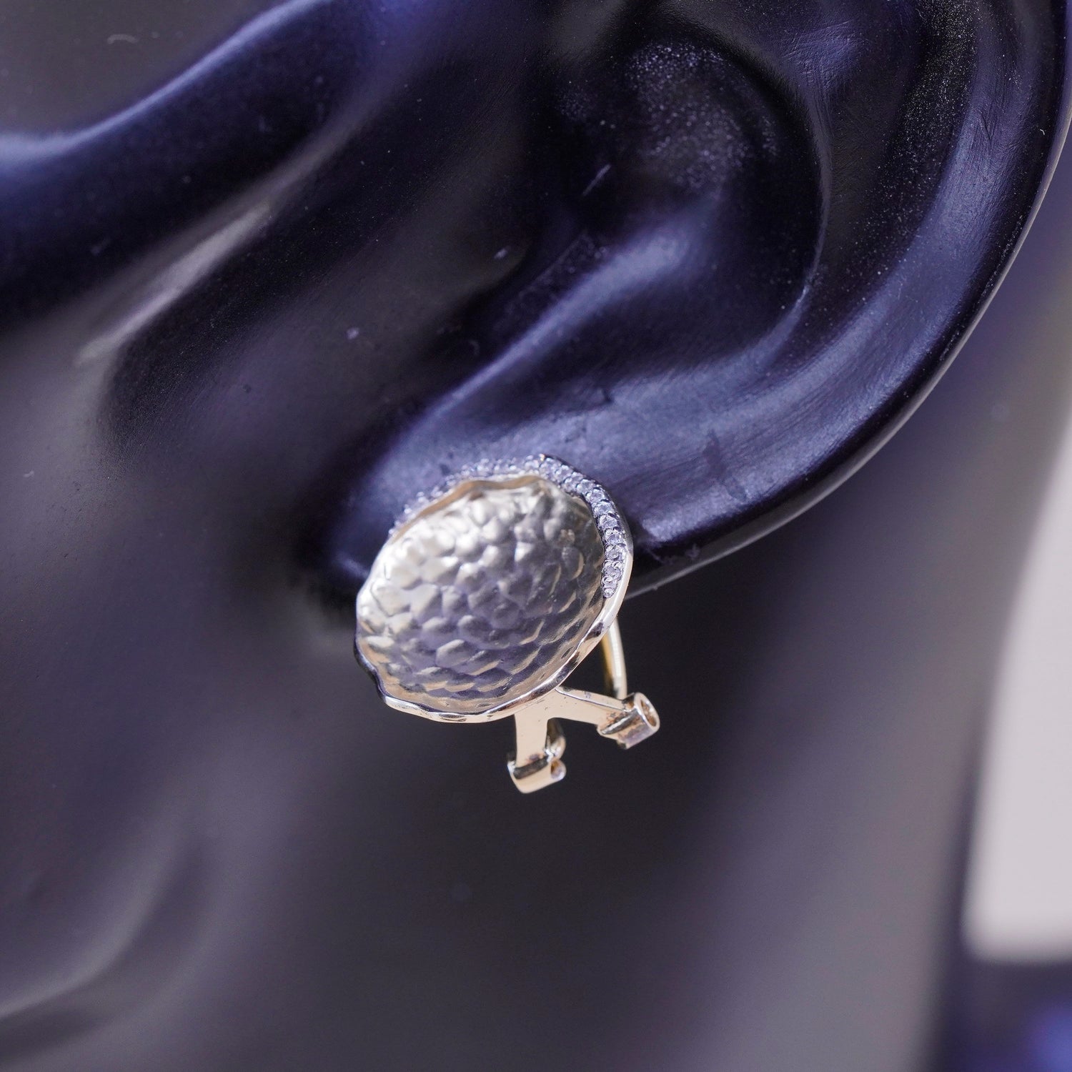 Vintage Gurhan vermeil 24K gold over Sterling silver handmade Hammered earrings, 925 round studs with diamonds, stamped 925 EA
