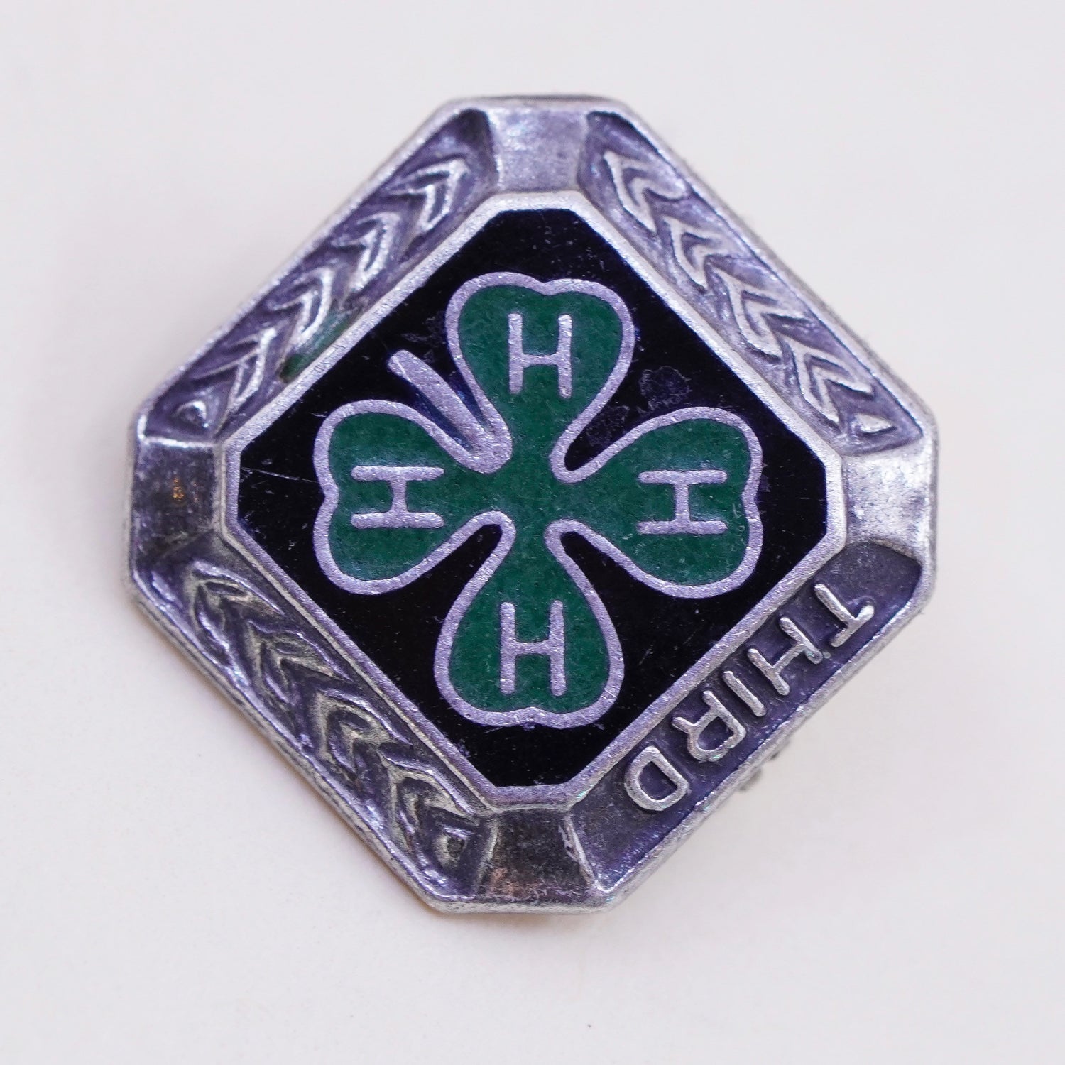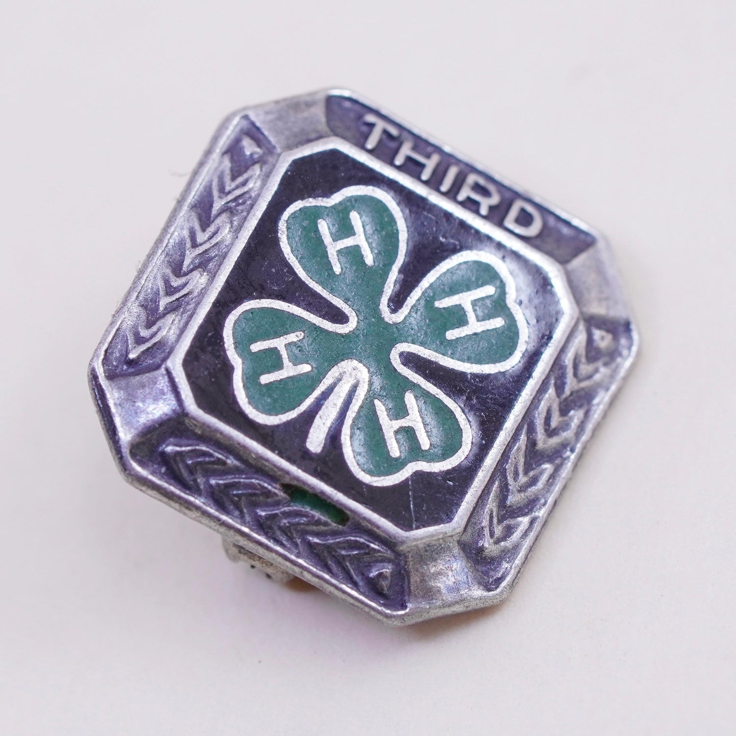 Vintage irish Sterling silver handmade brooch, solid 925 silver four leaves clover with green enamel, stamped sterling
