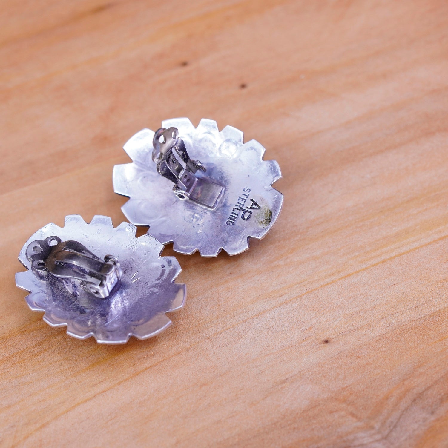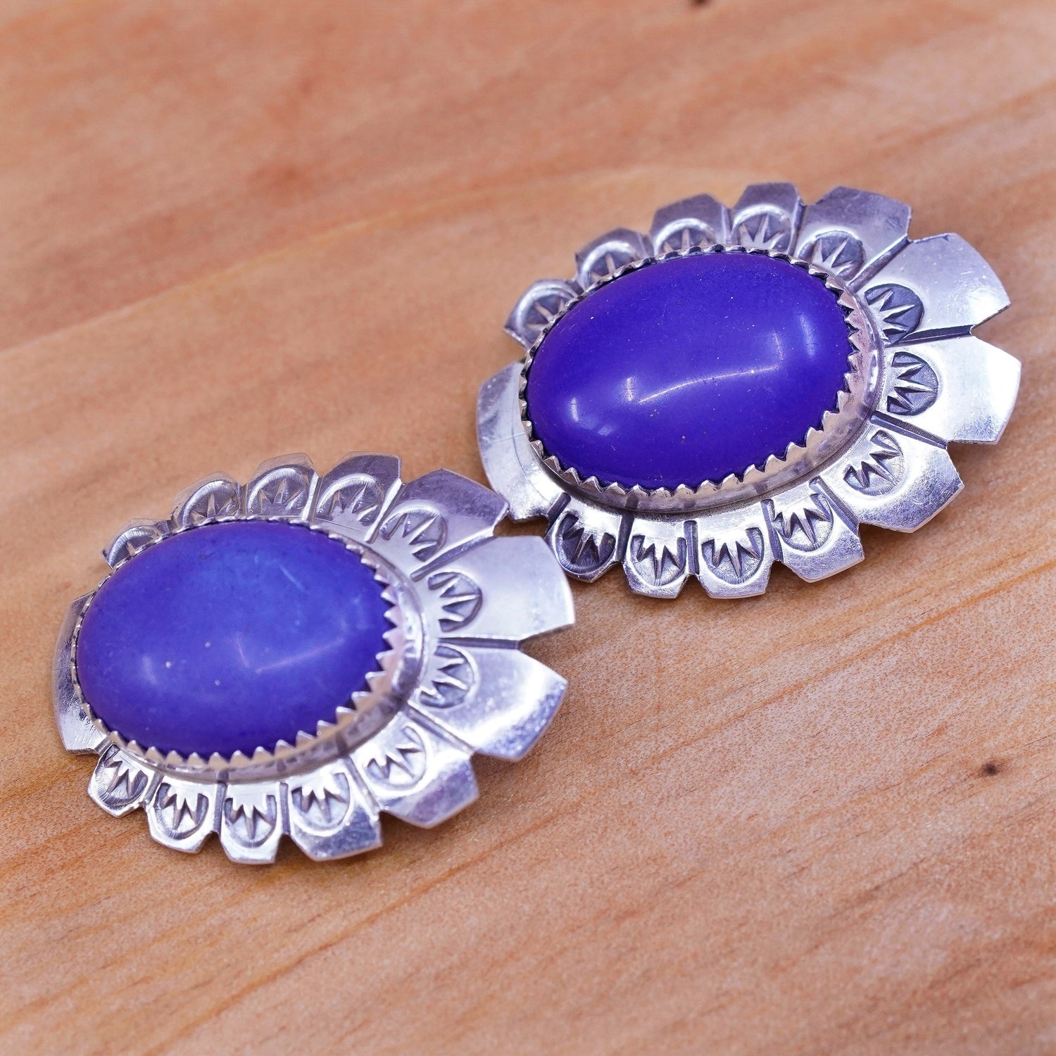 Native American zuni Arthur Platero Sterling silver handmade earrings, 925 oval lapis lazuli studs, stamped Sterling AP