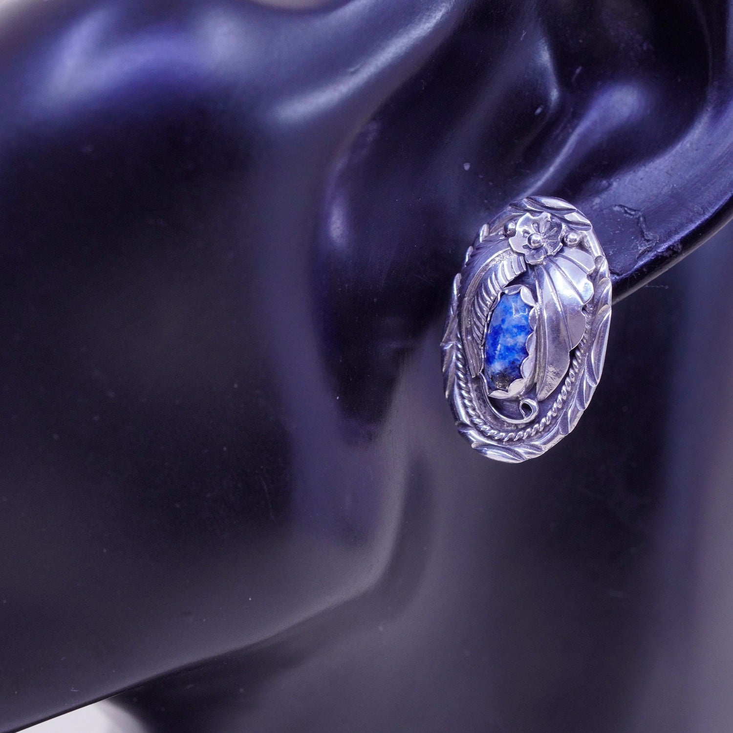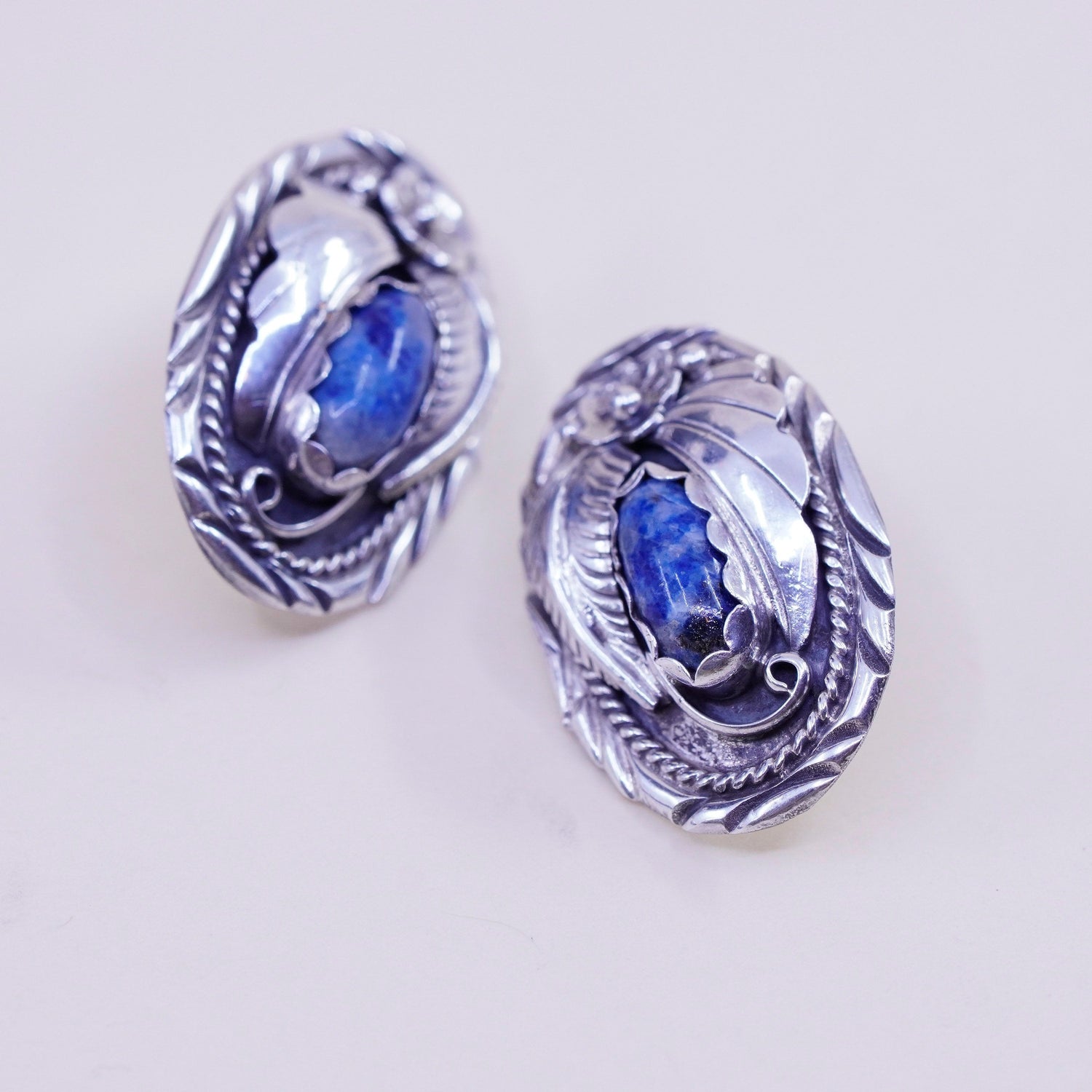 Native American handmade earrings. Navajo Sterling 925 Silver and agate studs, stamped sterling