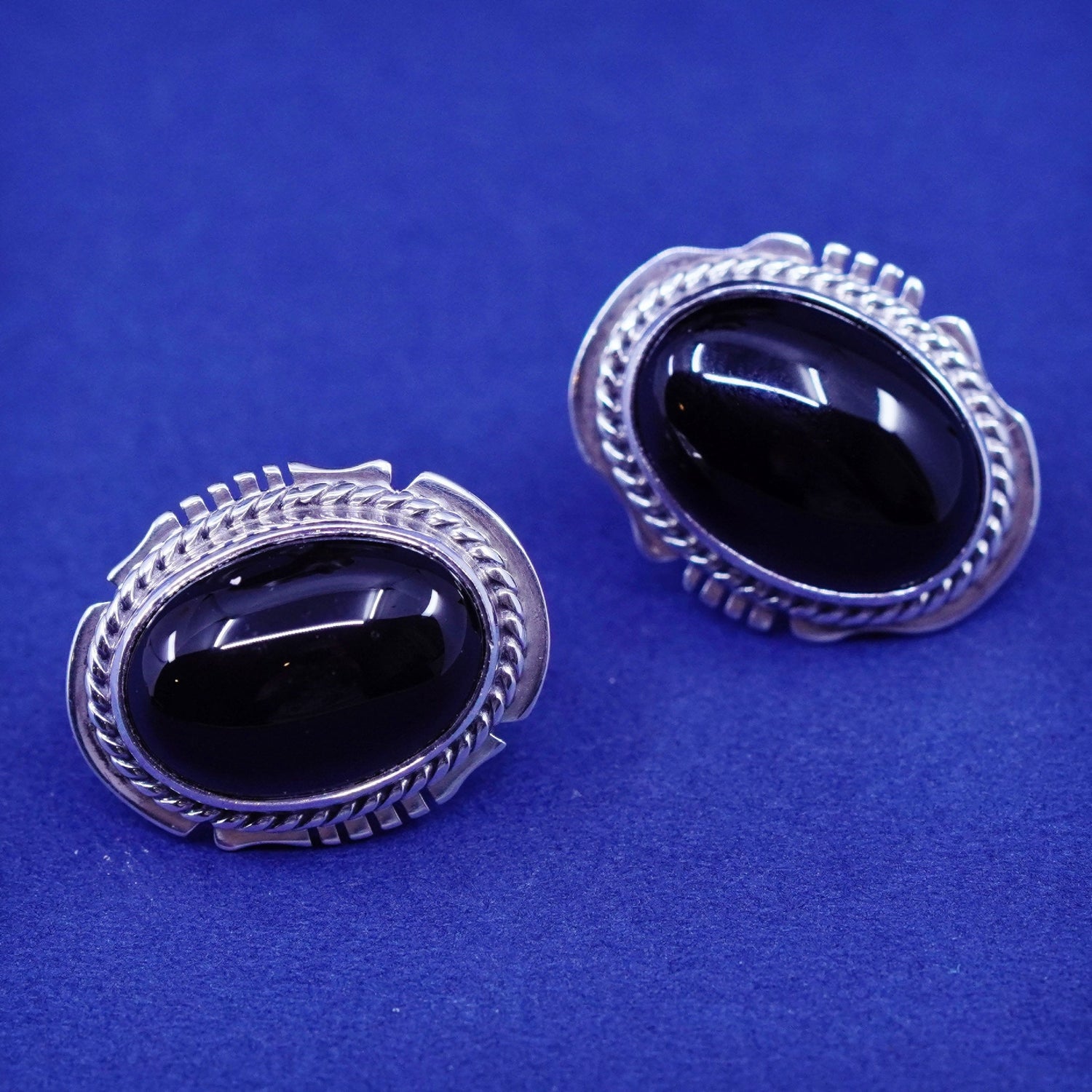 Native American Navajo arkie nelson Sterling silver earrings, 925 studs onyx