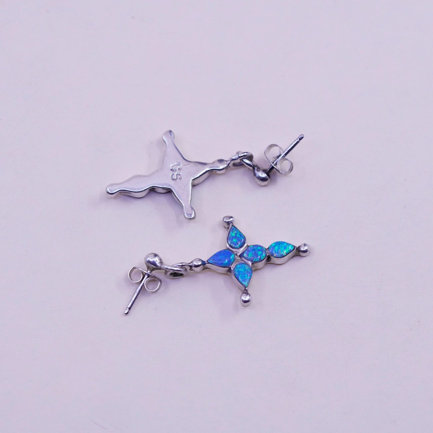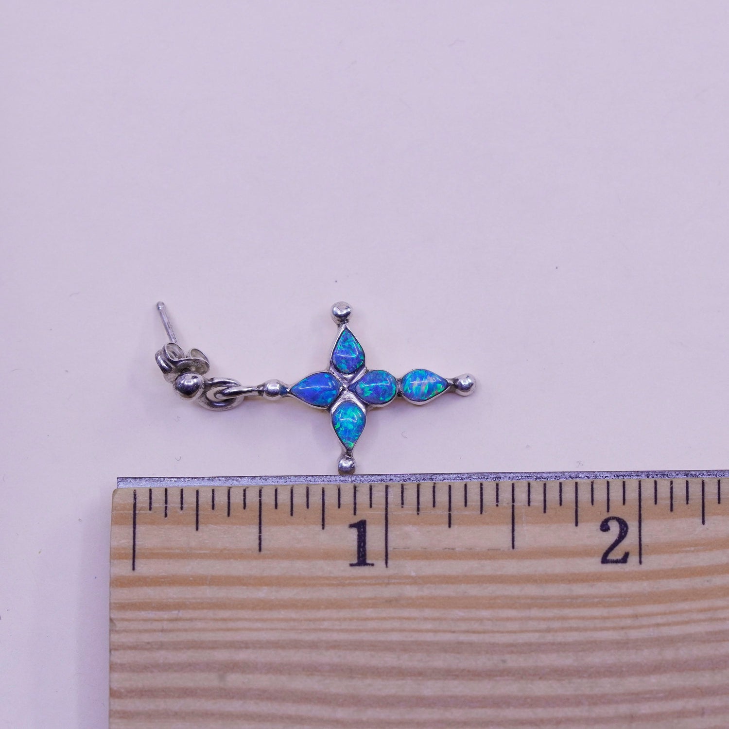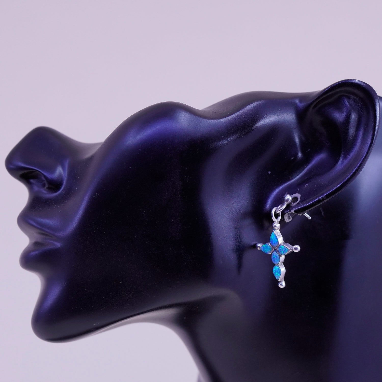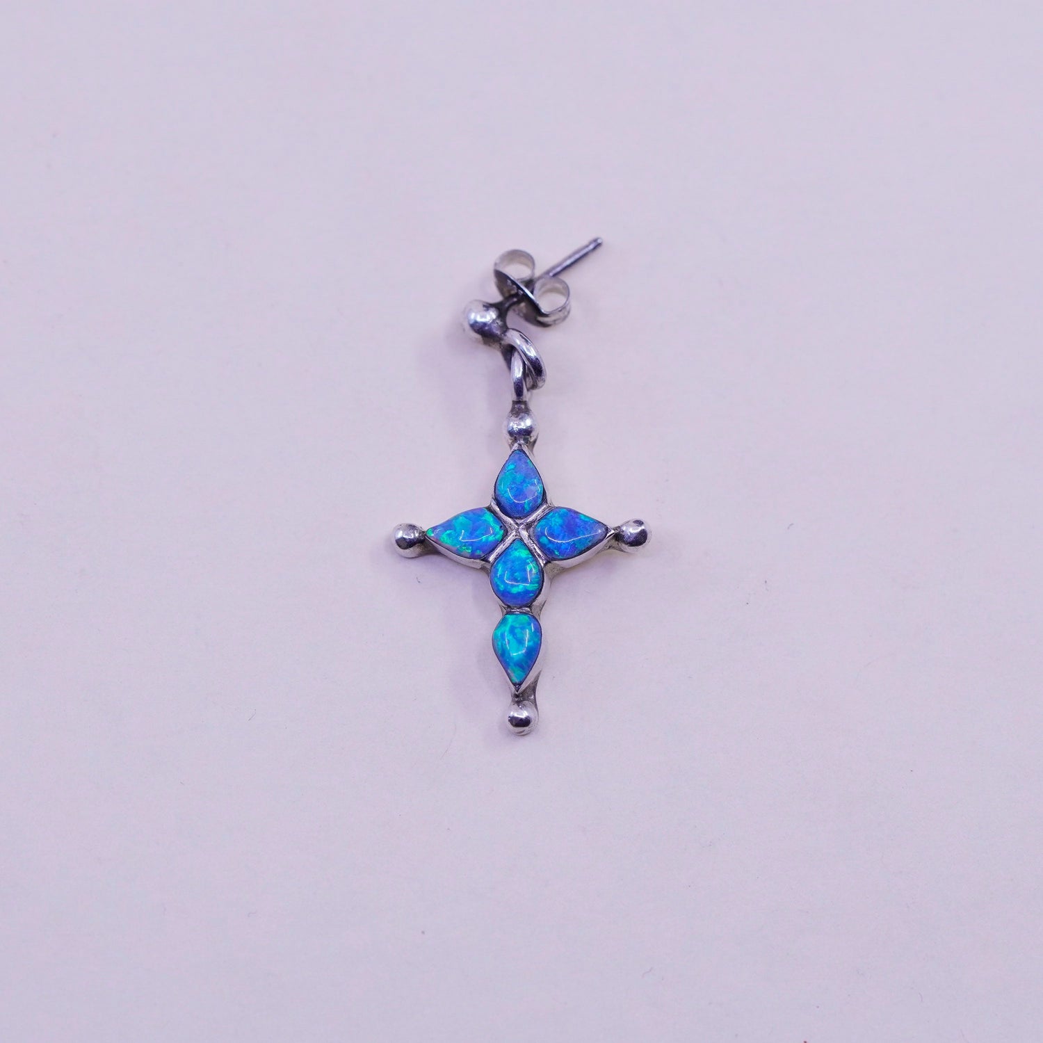 Native American Navajo Sterling 925 silver earrings, cross with fire opal, stamped Sterling