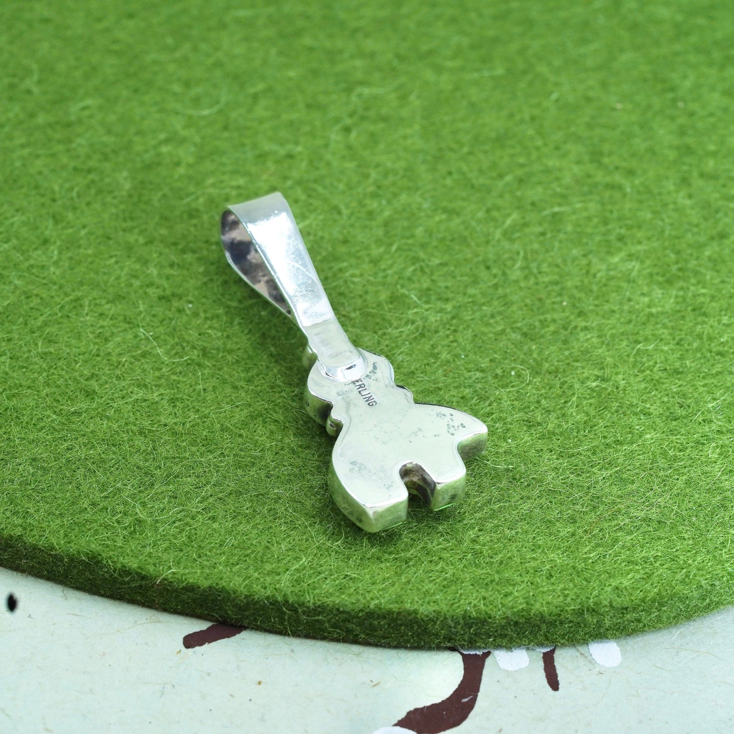 Native American Navajo Sterling Silver 925 handmade polar bear pendant with denim lapis lazuli and turquoise, stamped sterling