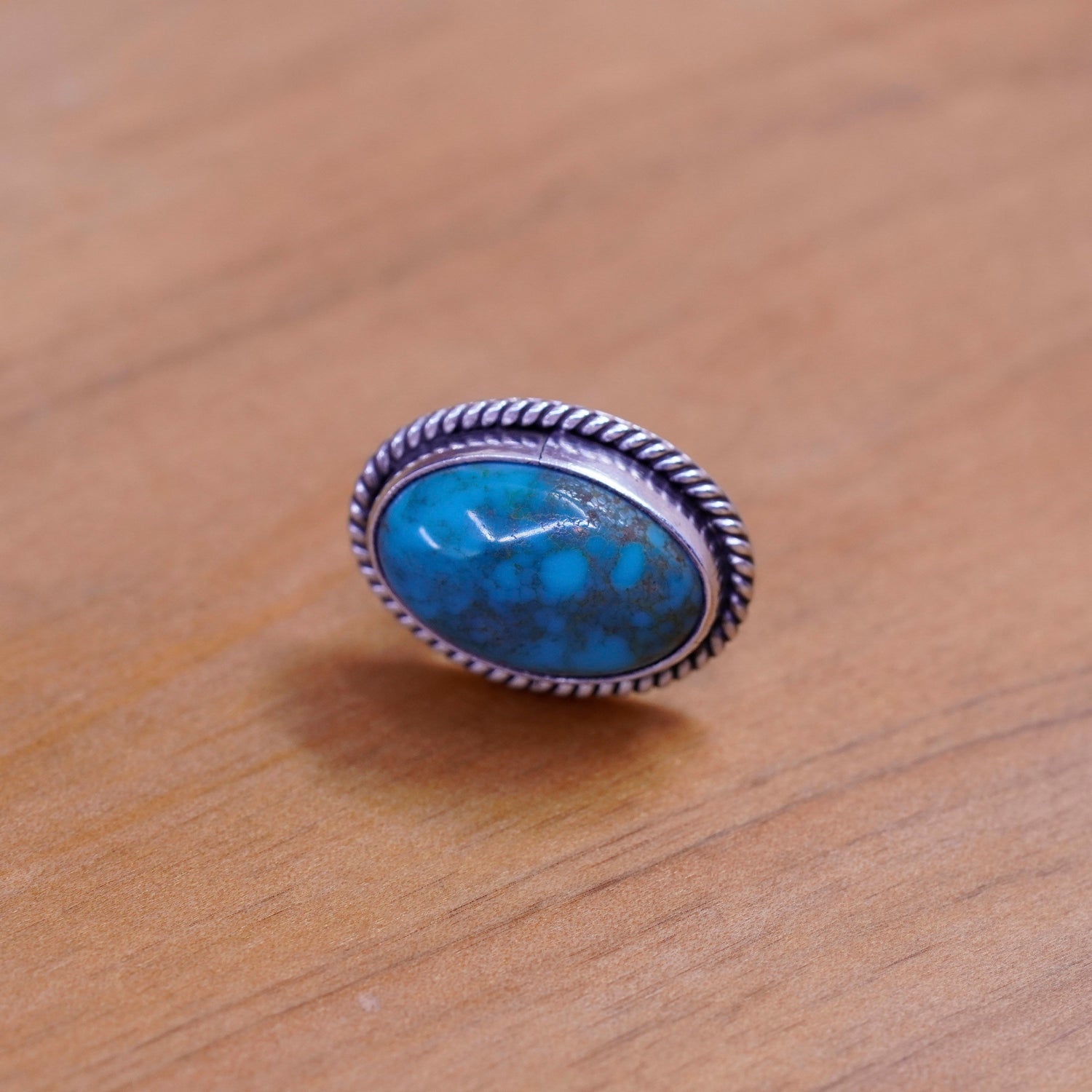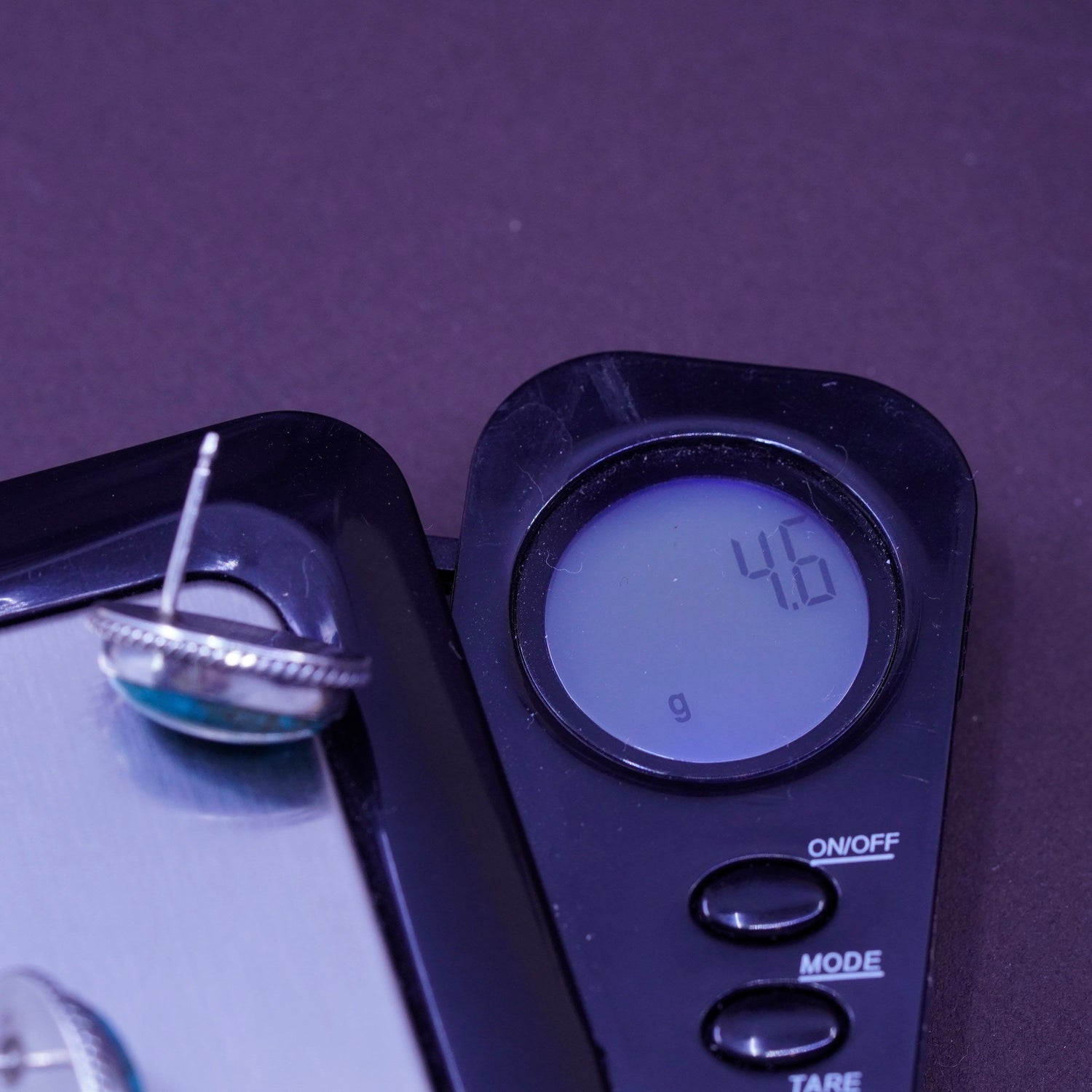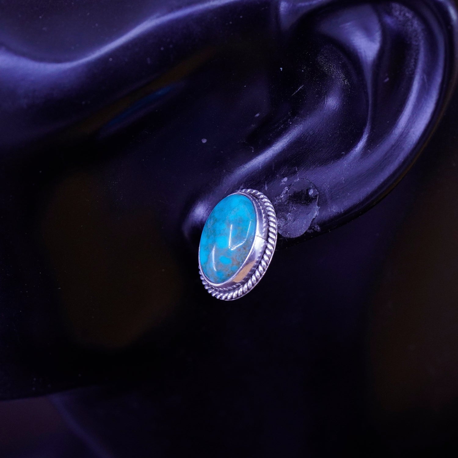 Native American Navajo William G Johnson Sterling silver handmade earrings, southwestern 925 studs with Kingman spiderwebbed turquoise, stamped Sterling WG Johnson