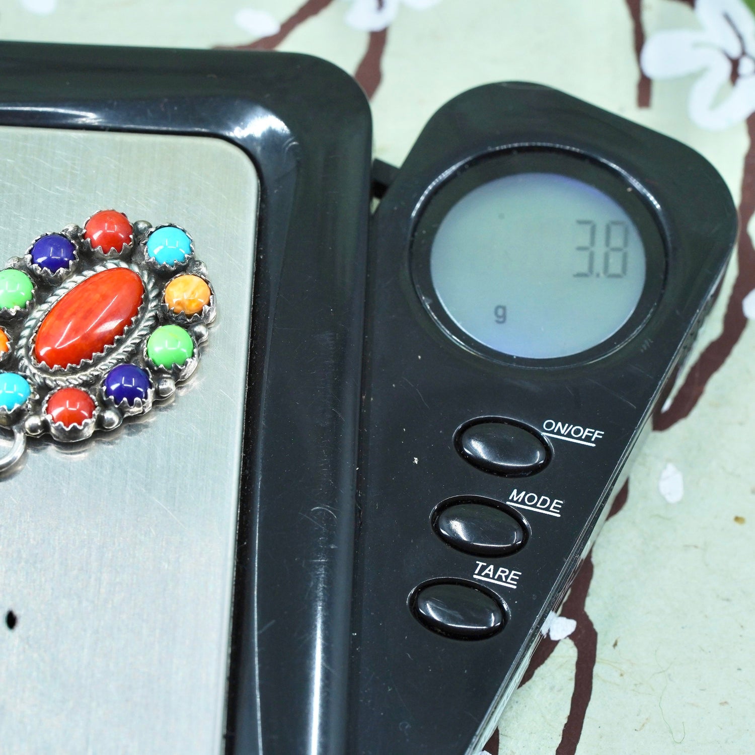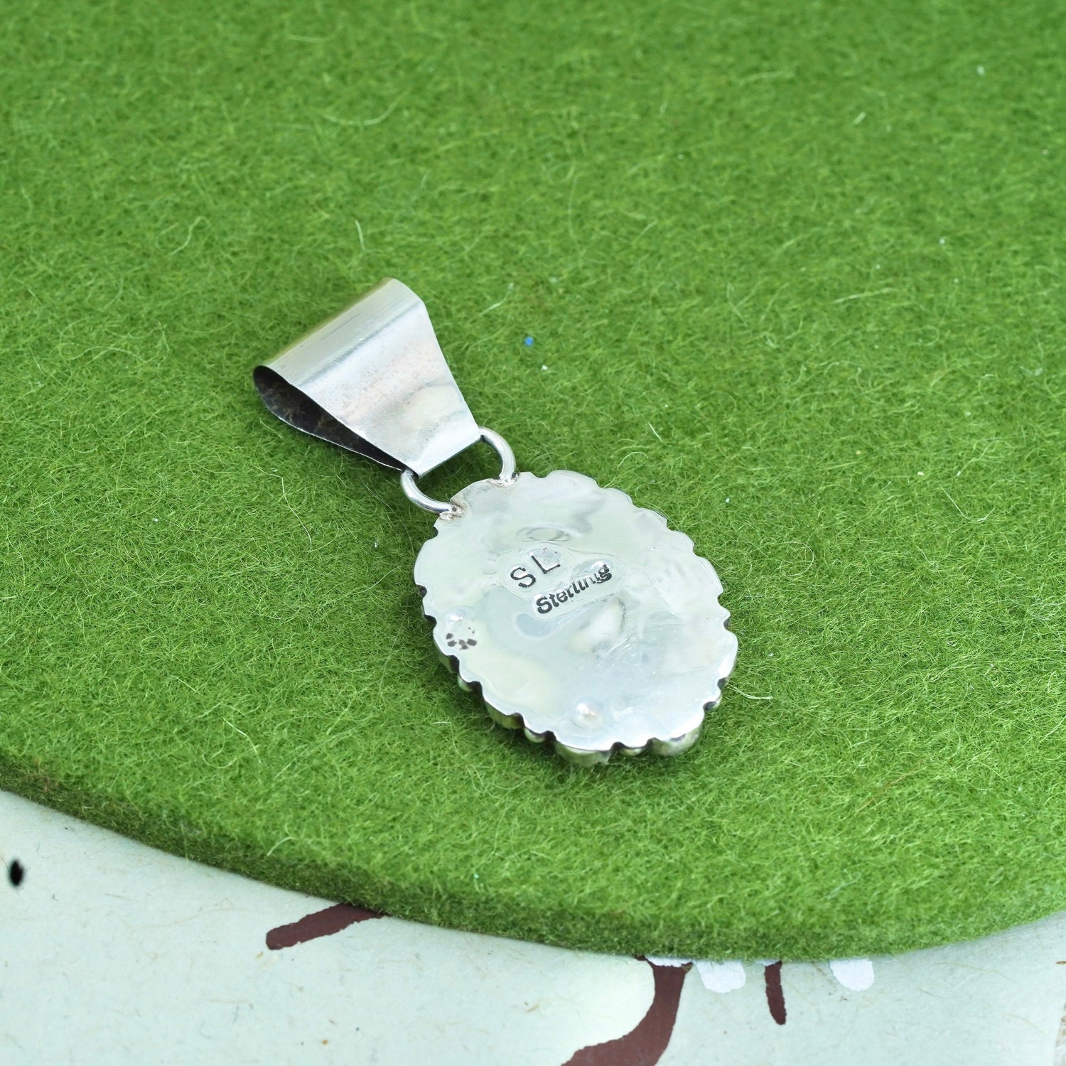 Native American SL sterling silver 925 handmade oval pendant with turquoise and coral, stamped SL sterling