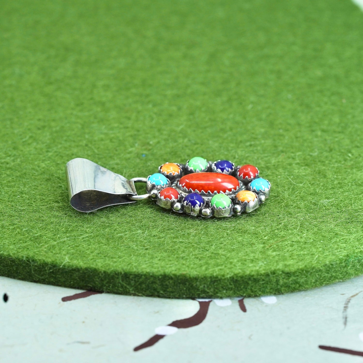 Native American SL sterling silver 925 handmade oval pendant turquoise coral
