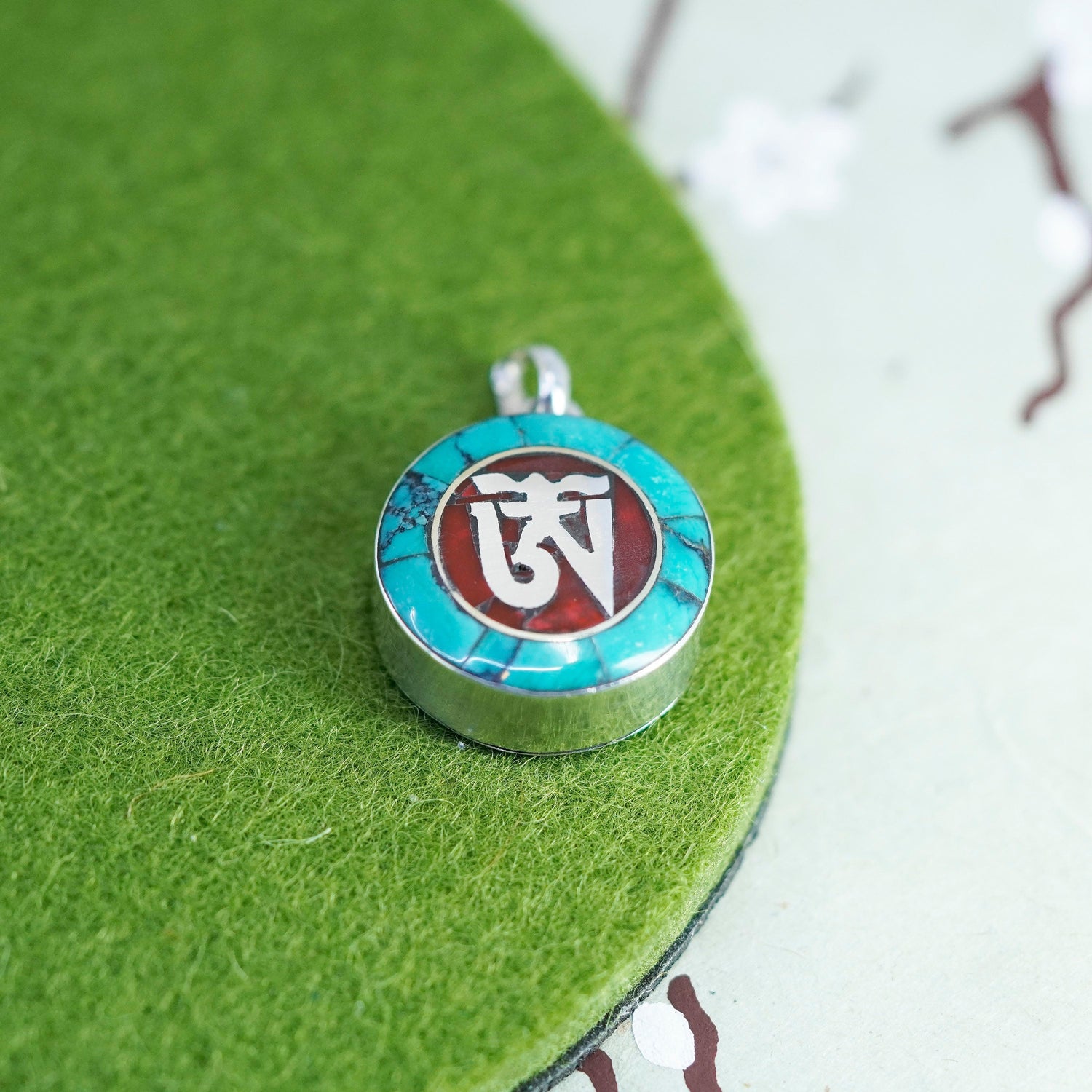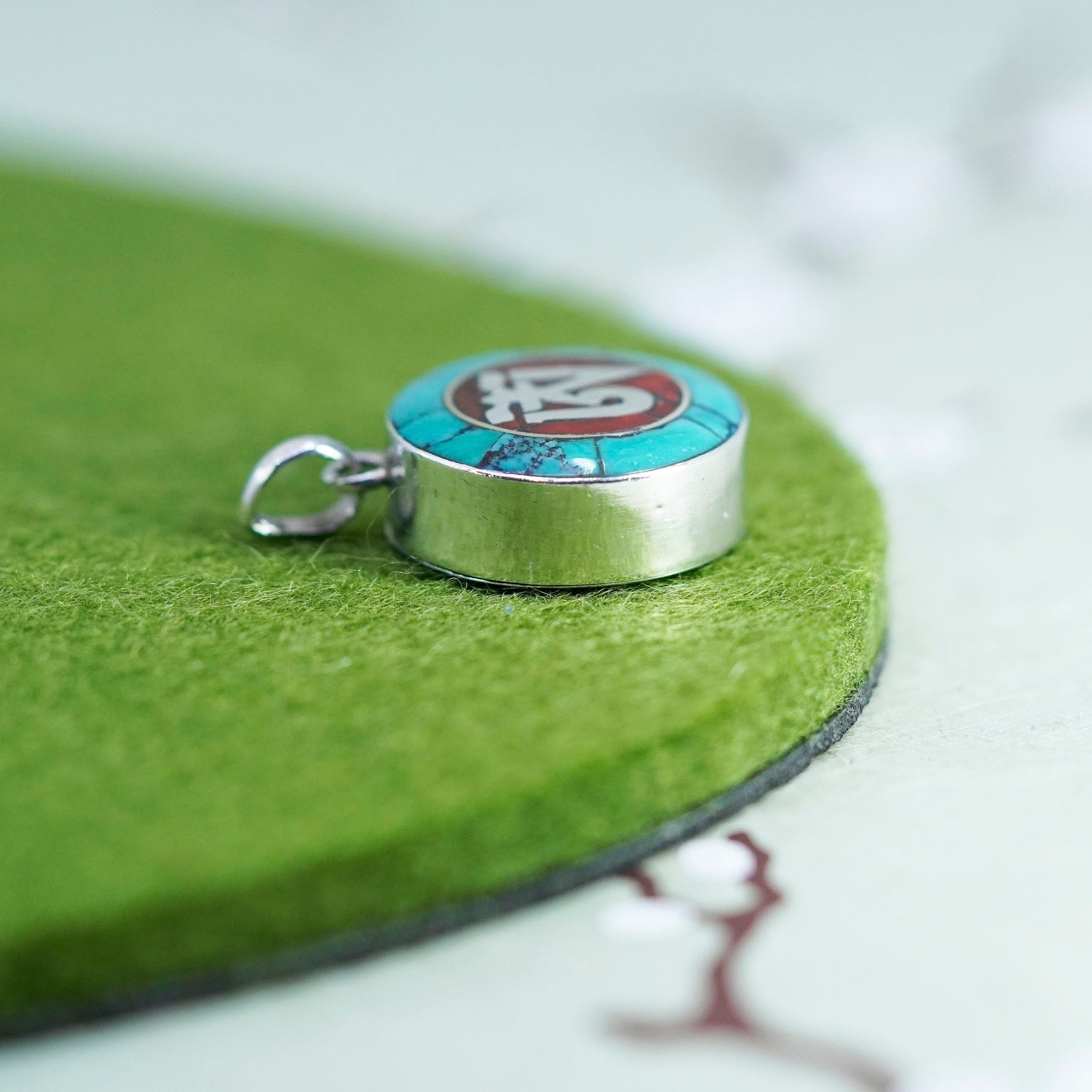 Native American sterling 925 silver handmade charm pendant with turquoise coral
