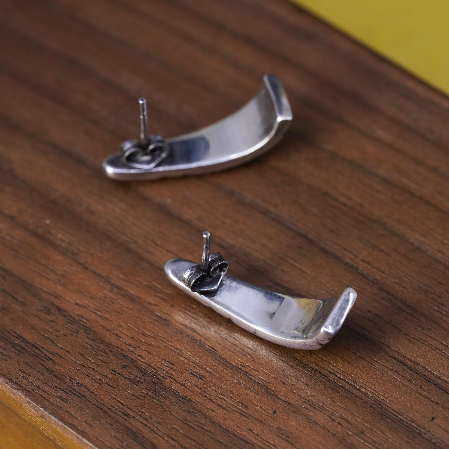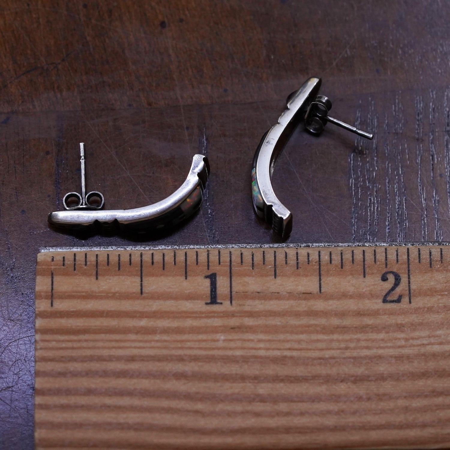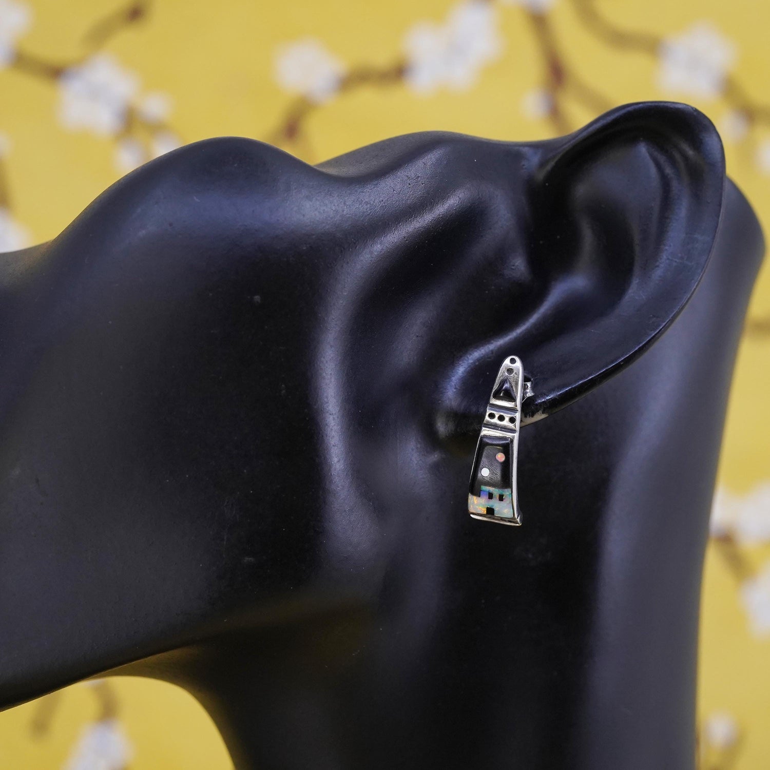 Native American Sterling 925 silver handmade zuni huggie studs earrings with onyx and opal inlay, stamped sterling