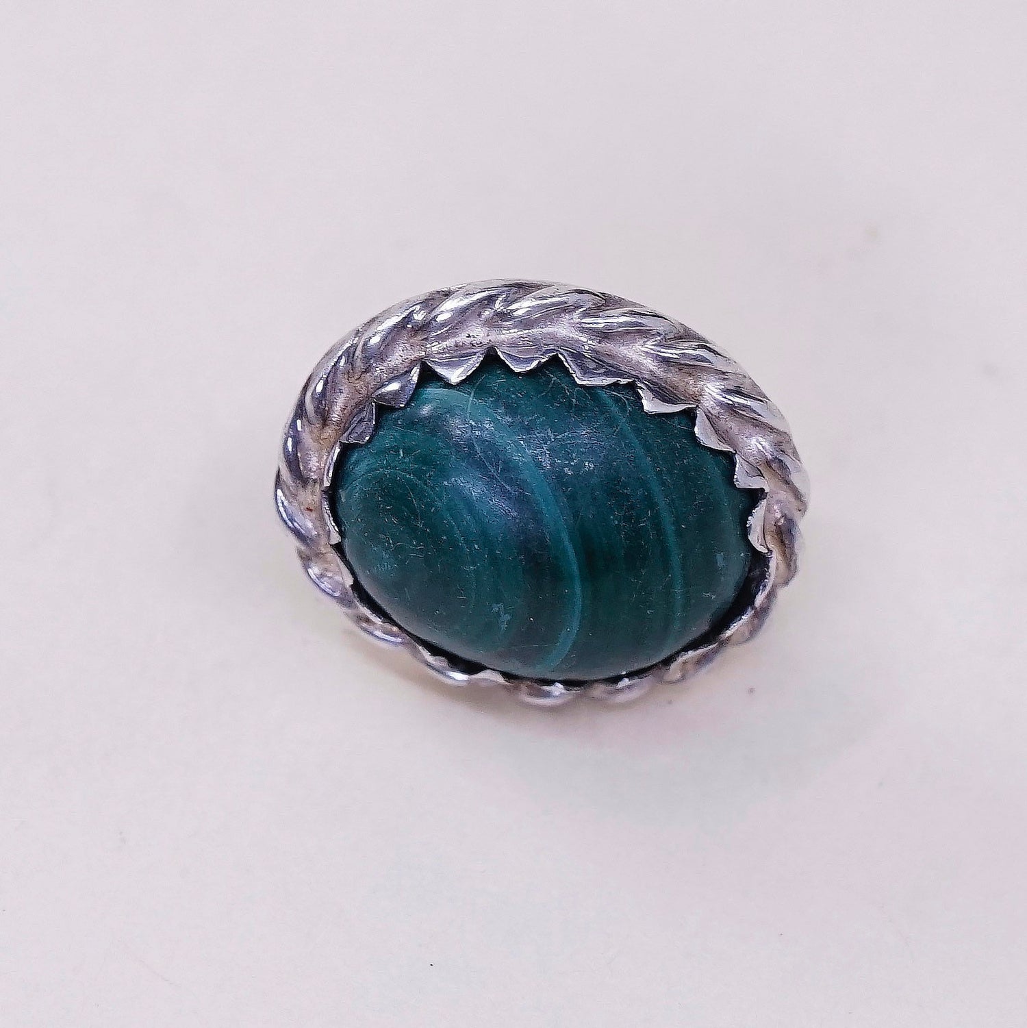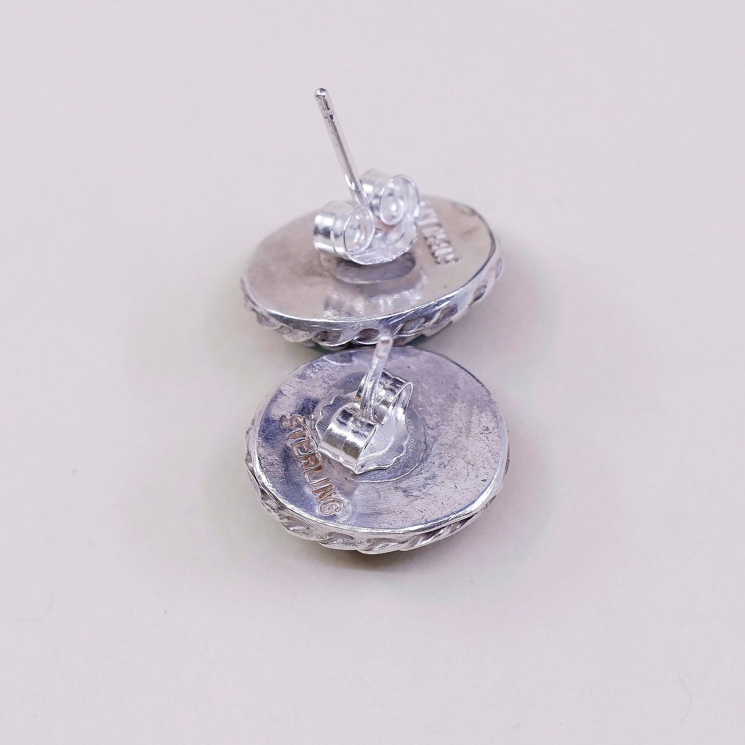 Vintage southwestern Native American Sterling silver handmade earrings, 925 silver studs with oval malachite inlay, stamped sterling