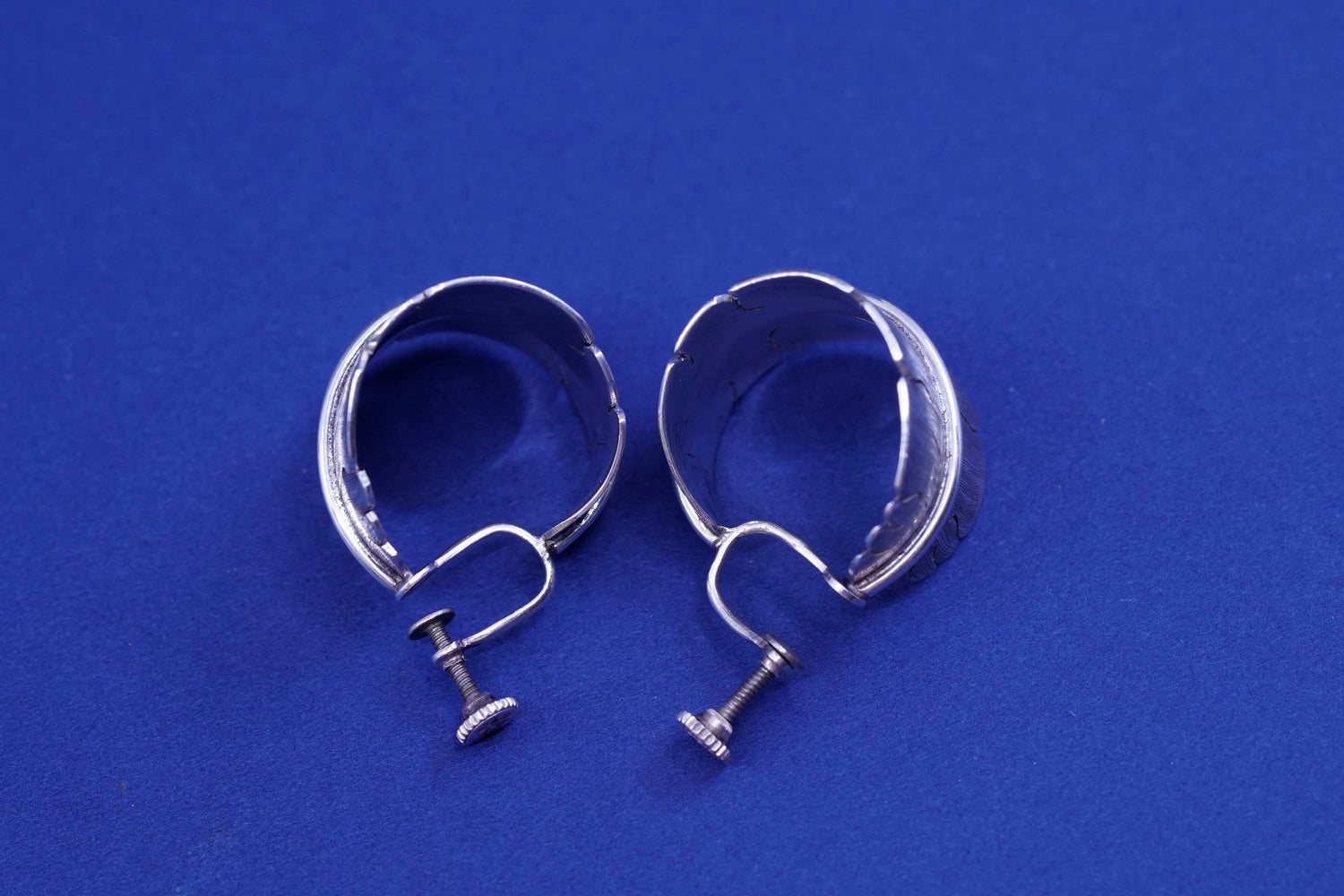 Native American navajo Michael Kirk Sterling silver handmade earrings, 925 screw back feather, stamped Sterling M Kirk