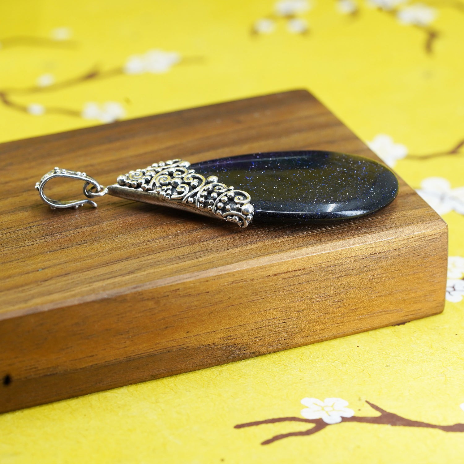 Sajen Sterling 925 silver handmade pendant with blue glittering goldstone