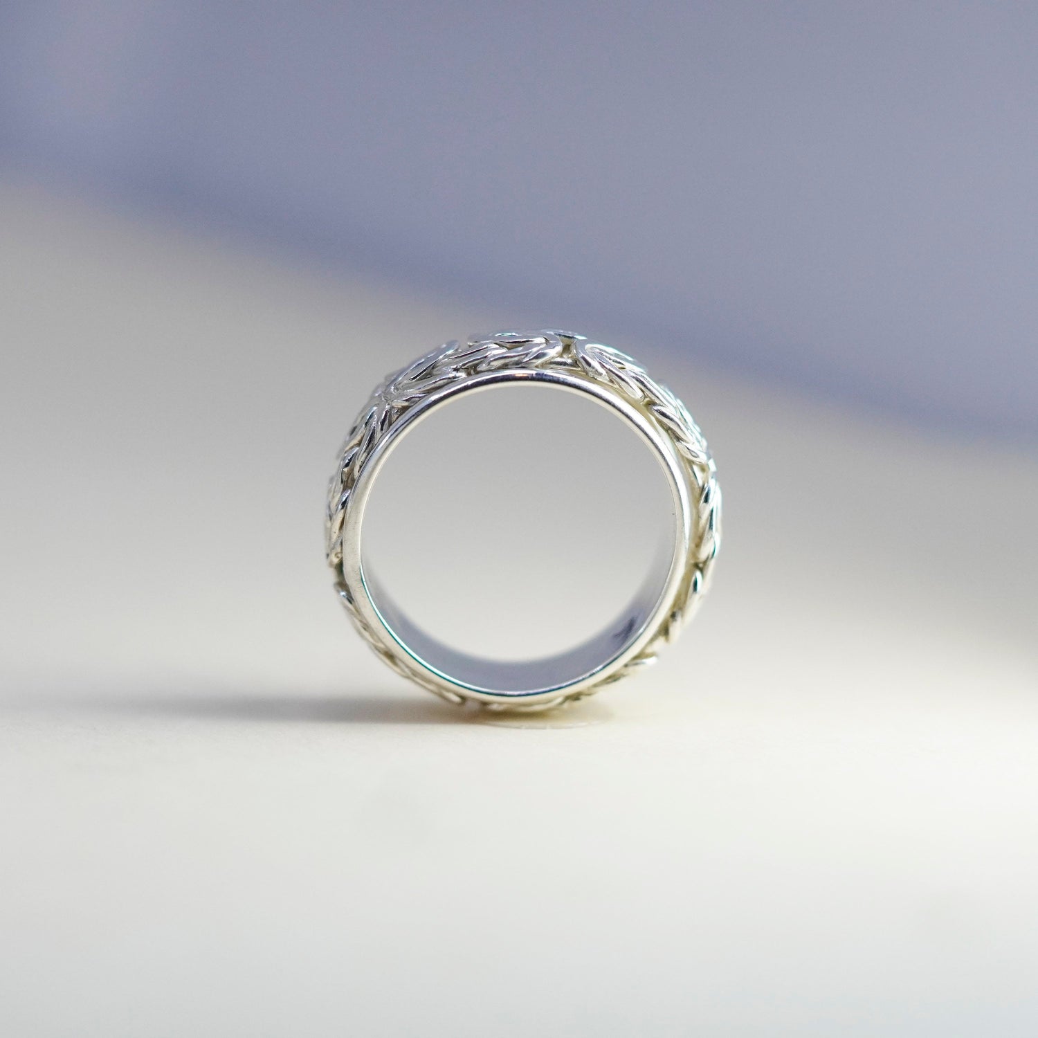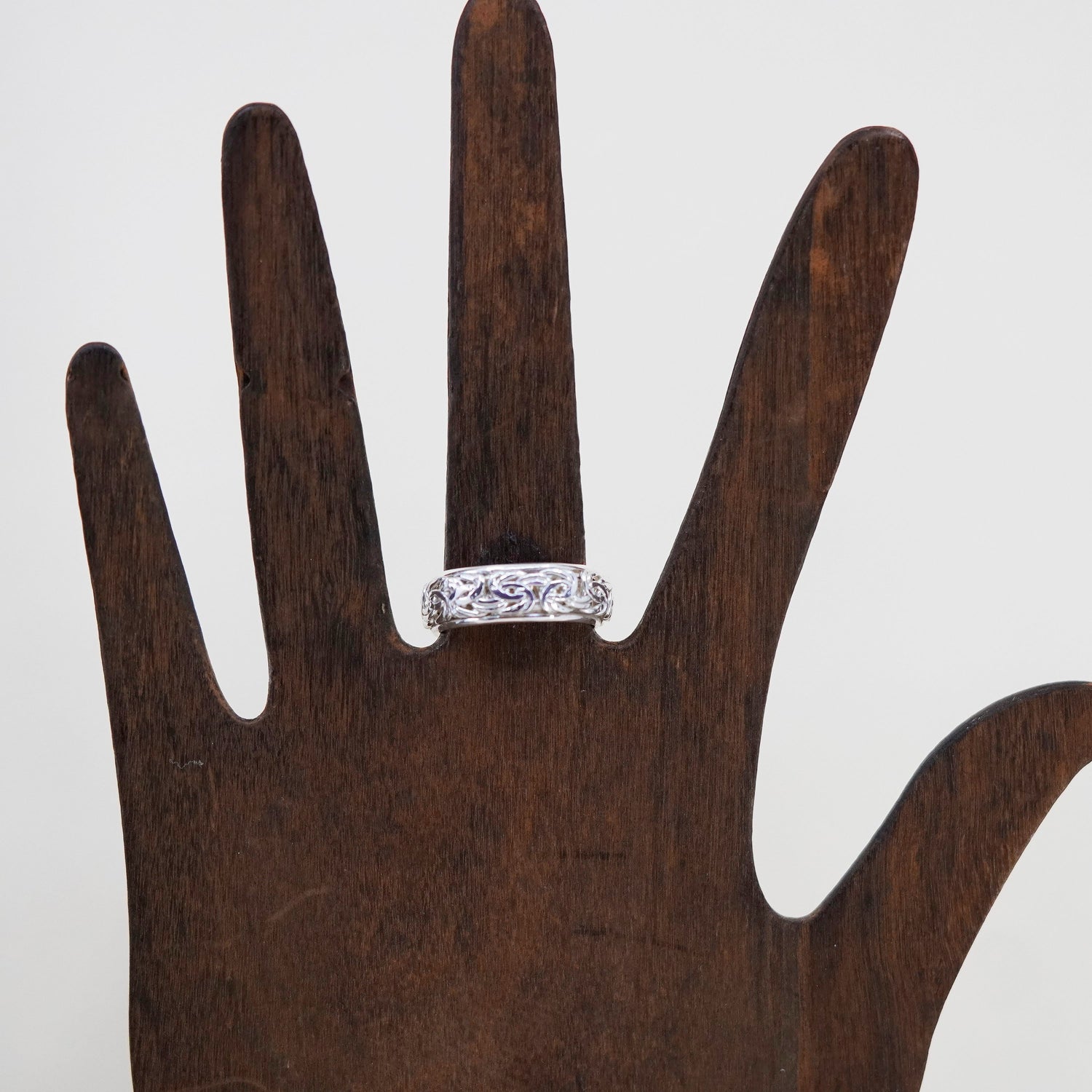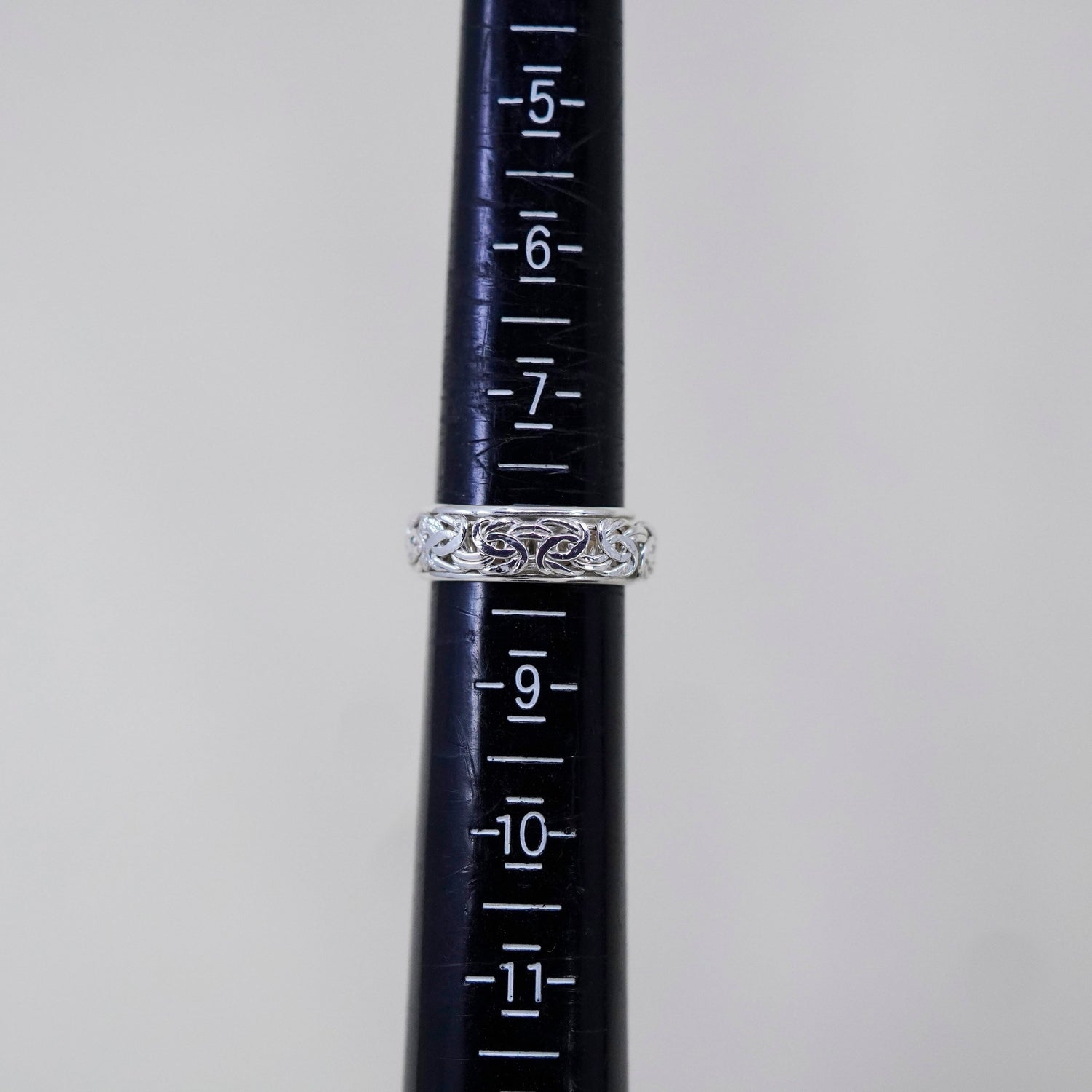 Size 11, vintage Hopi sterling silver ring, 925 spinner roller band w/ entwines