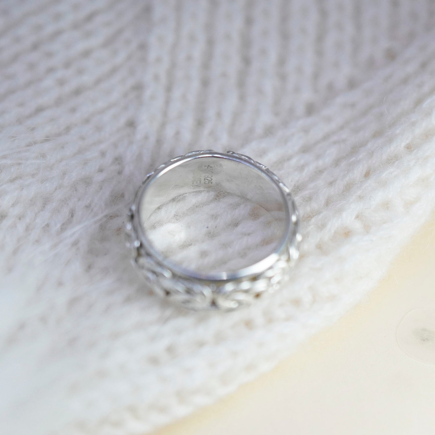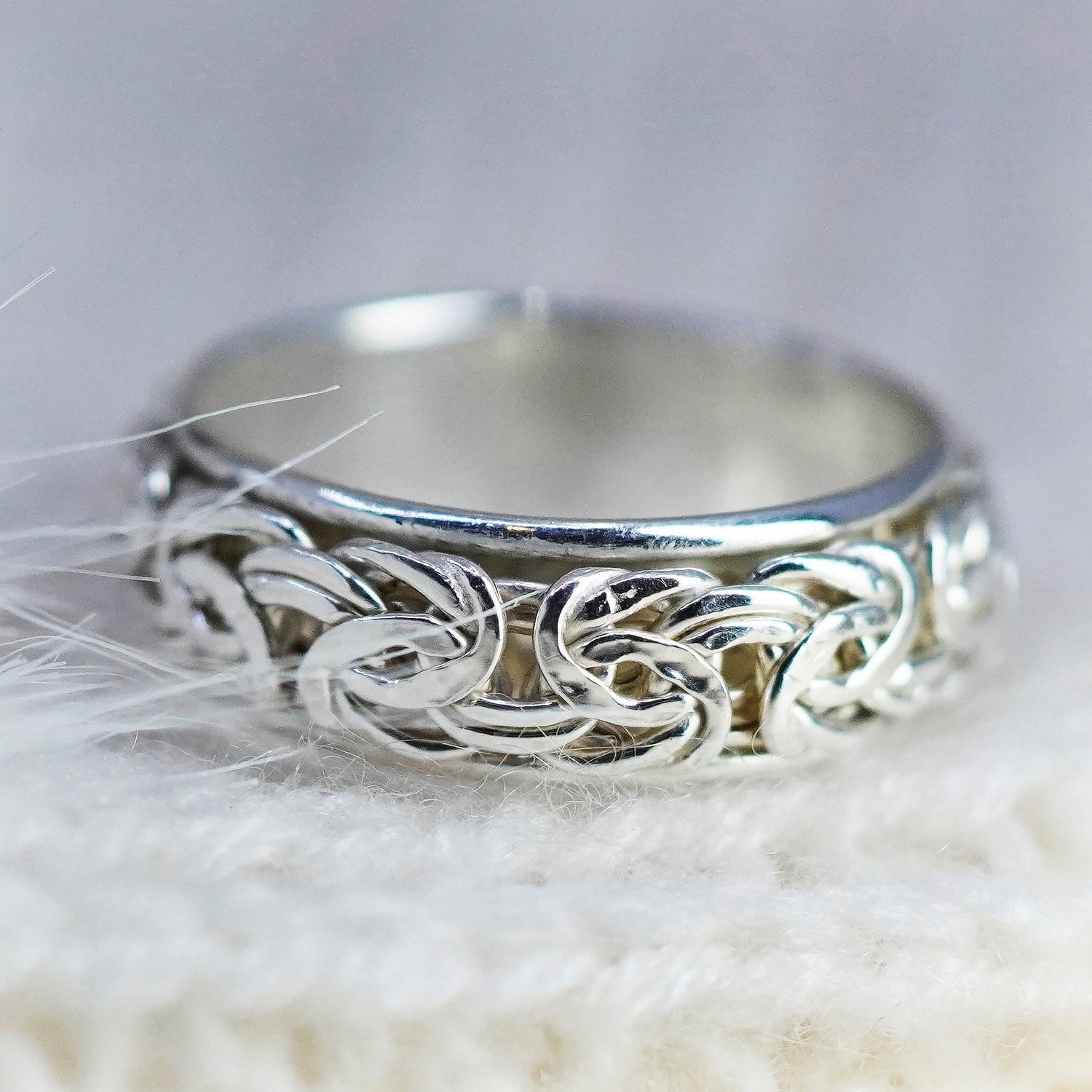 Size 8, vintage turkey sterling silver handmade ring, 925 spinner roller band with cable, Stamped 925 turkey