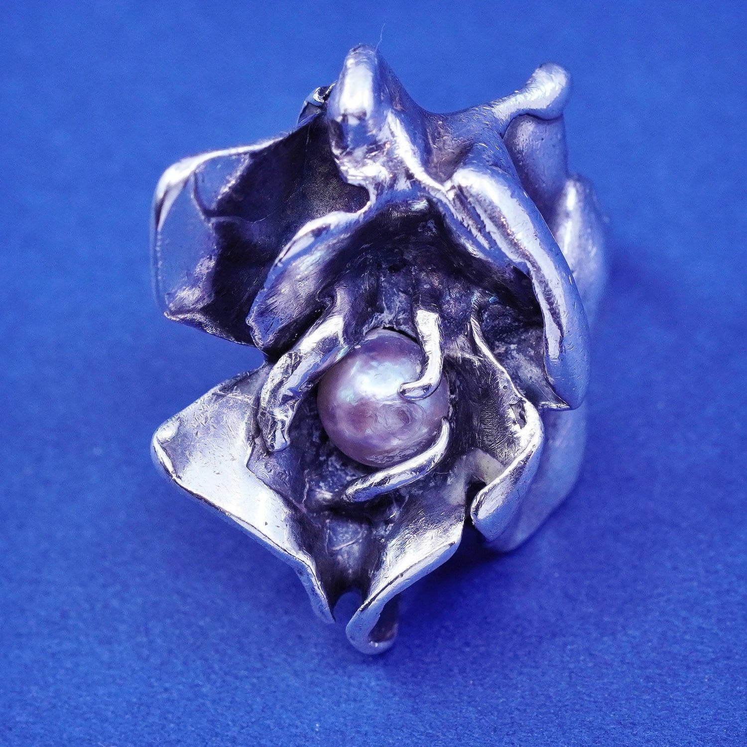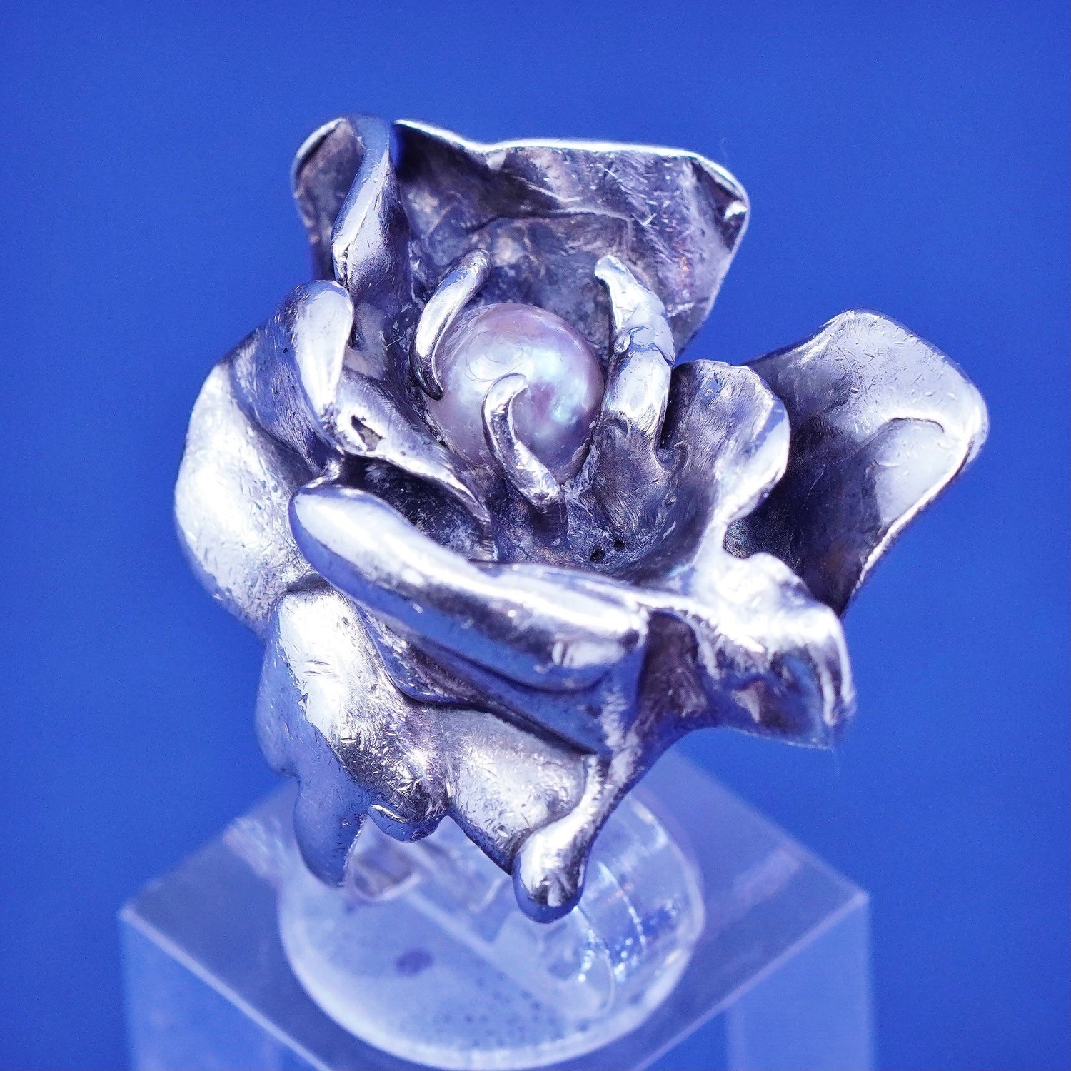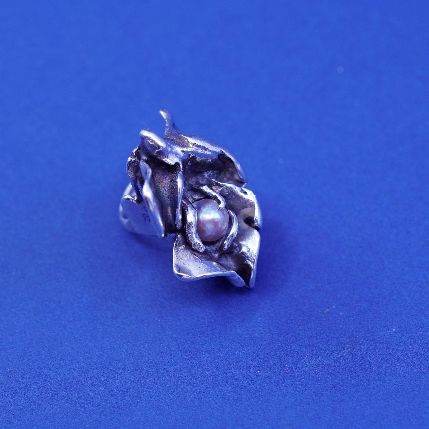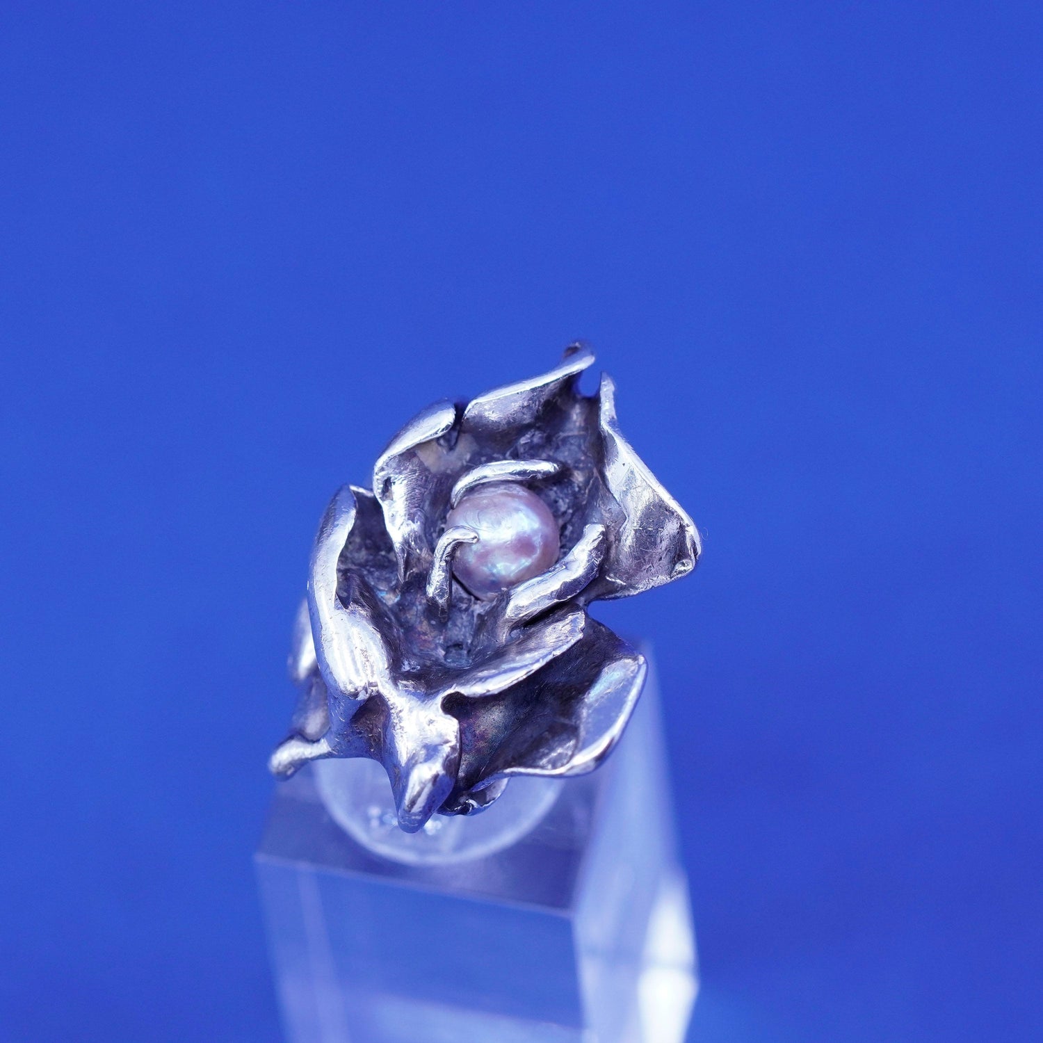 Size 3.25, vintage Sterling Silver Israel, handmade ring with pearl, silver tested