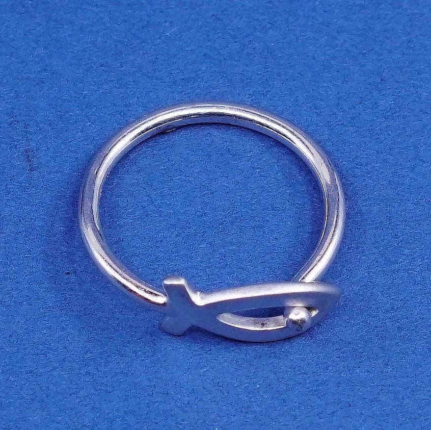Size 4, vtg sterling silver handmade ring, 925 men’s band engraved fish
