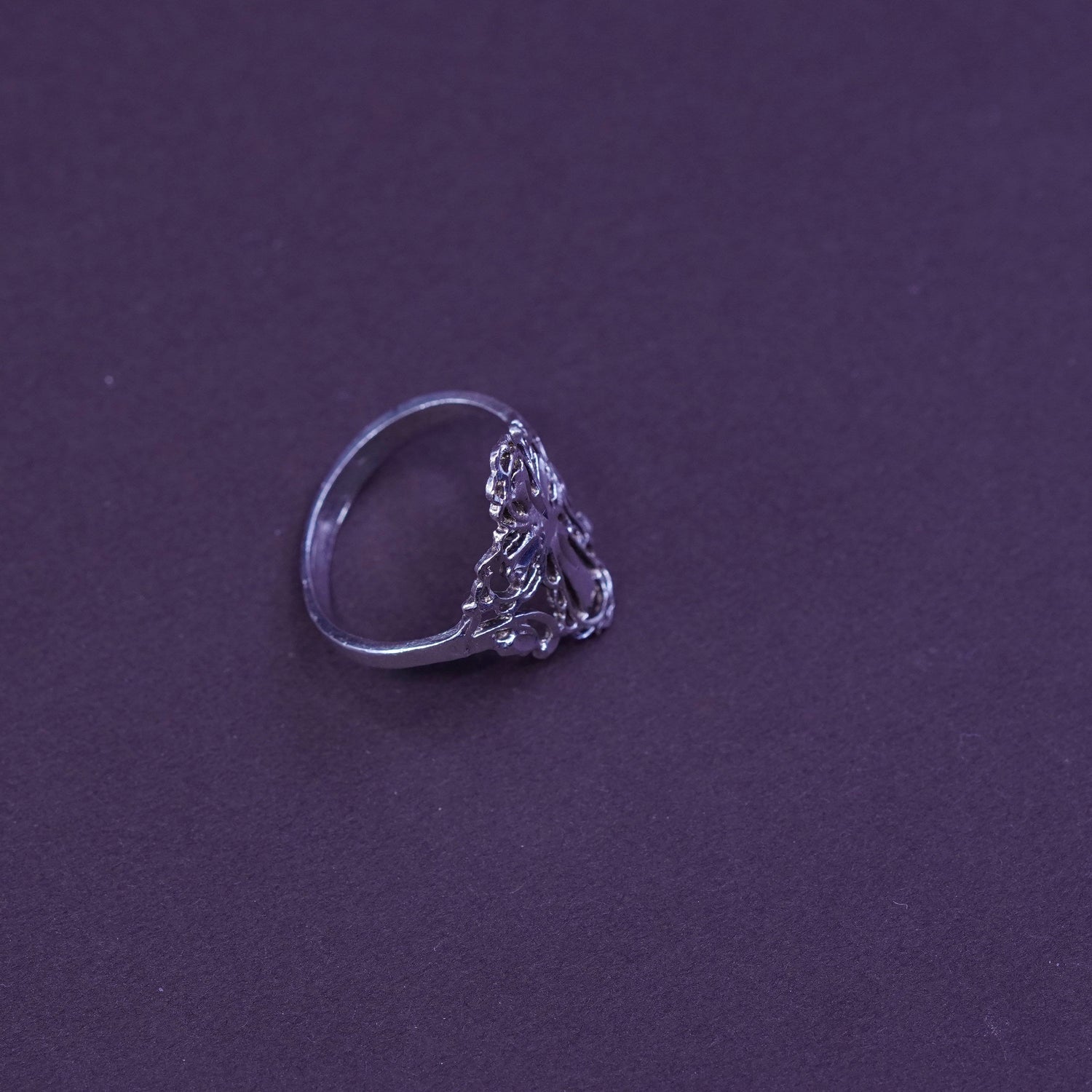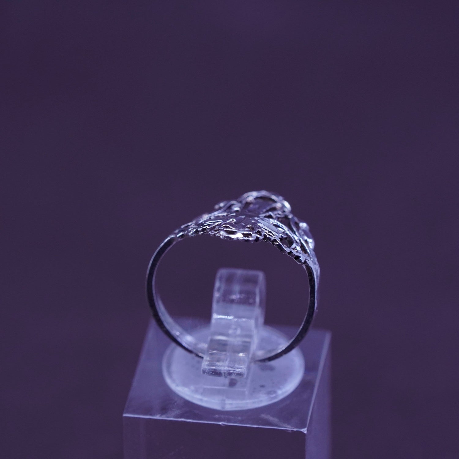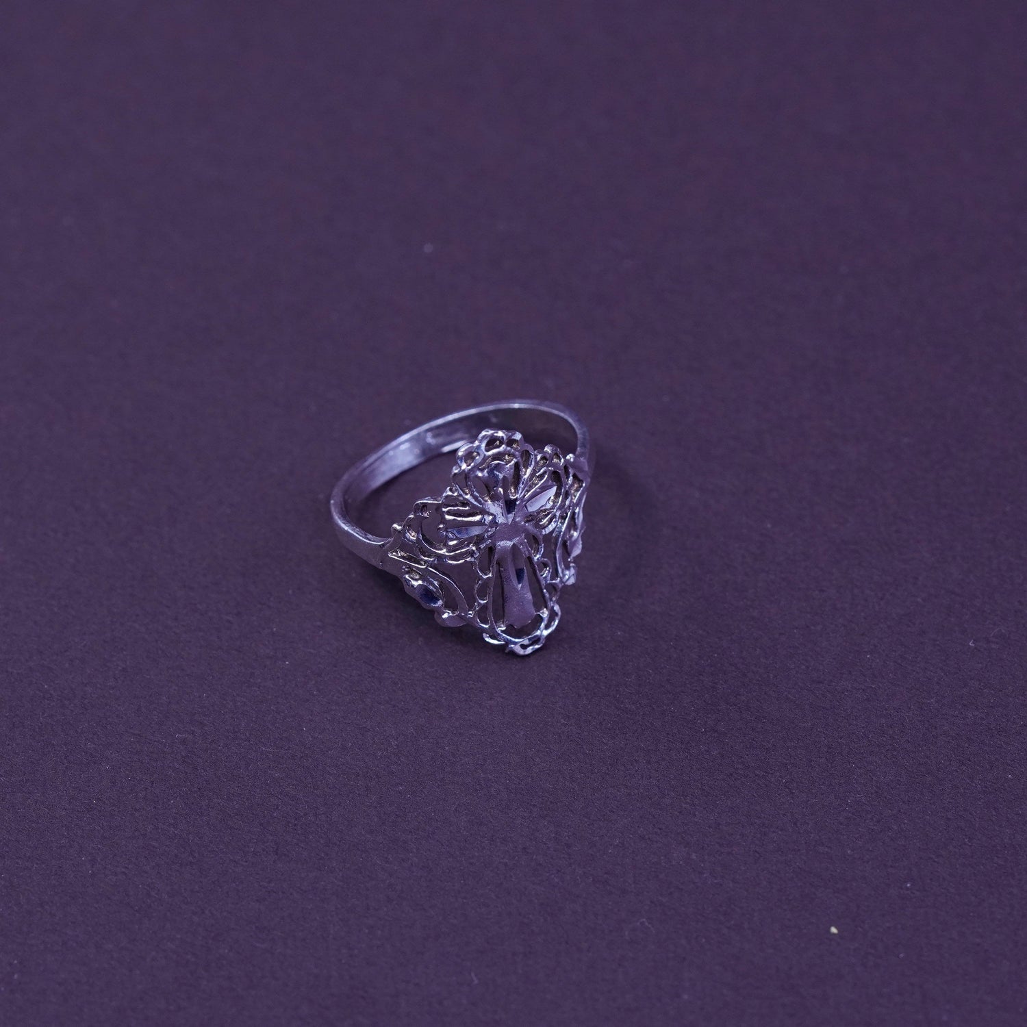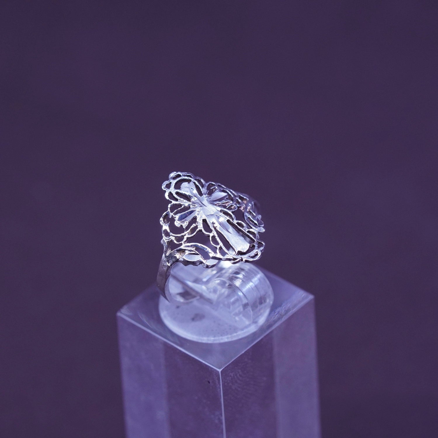 Size 5.5, 1.5g, vintage solid 14K white gold handmade filigree cross ring band
