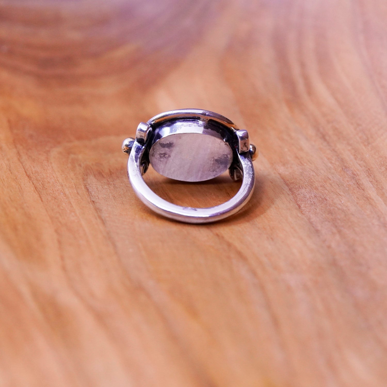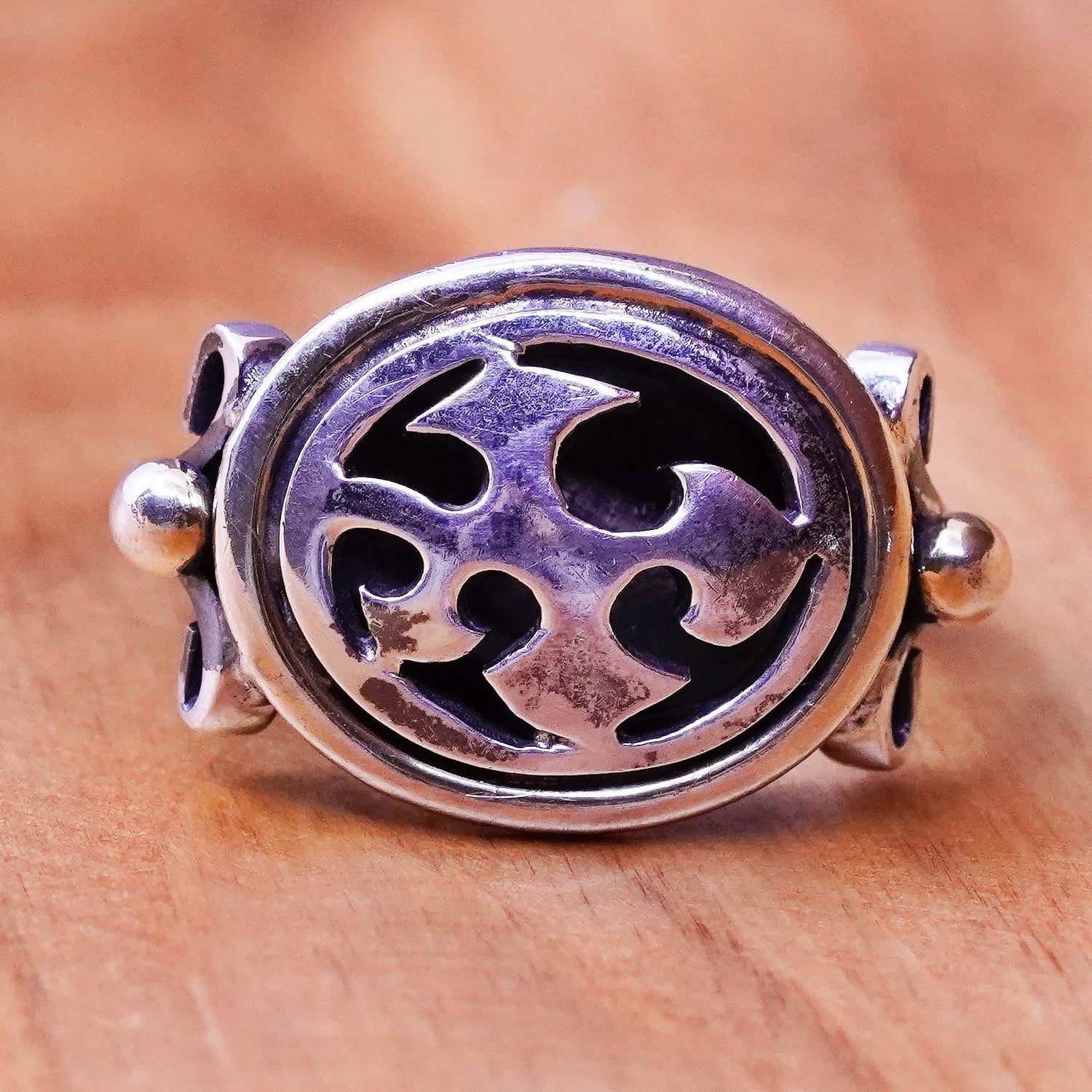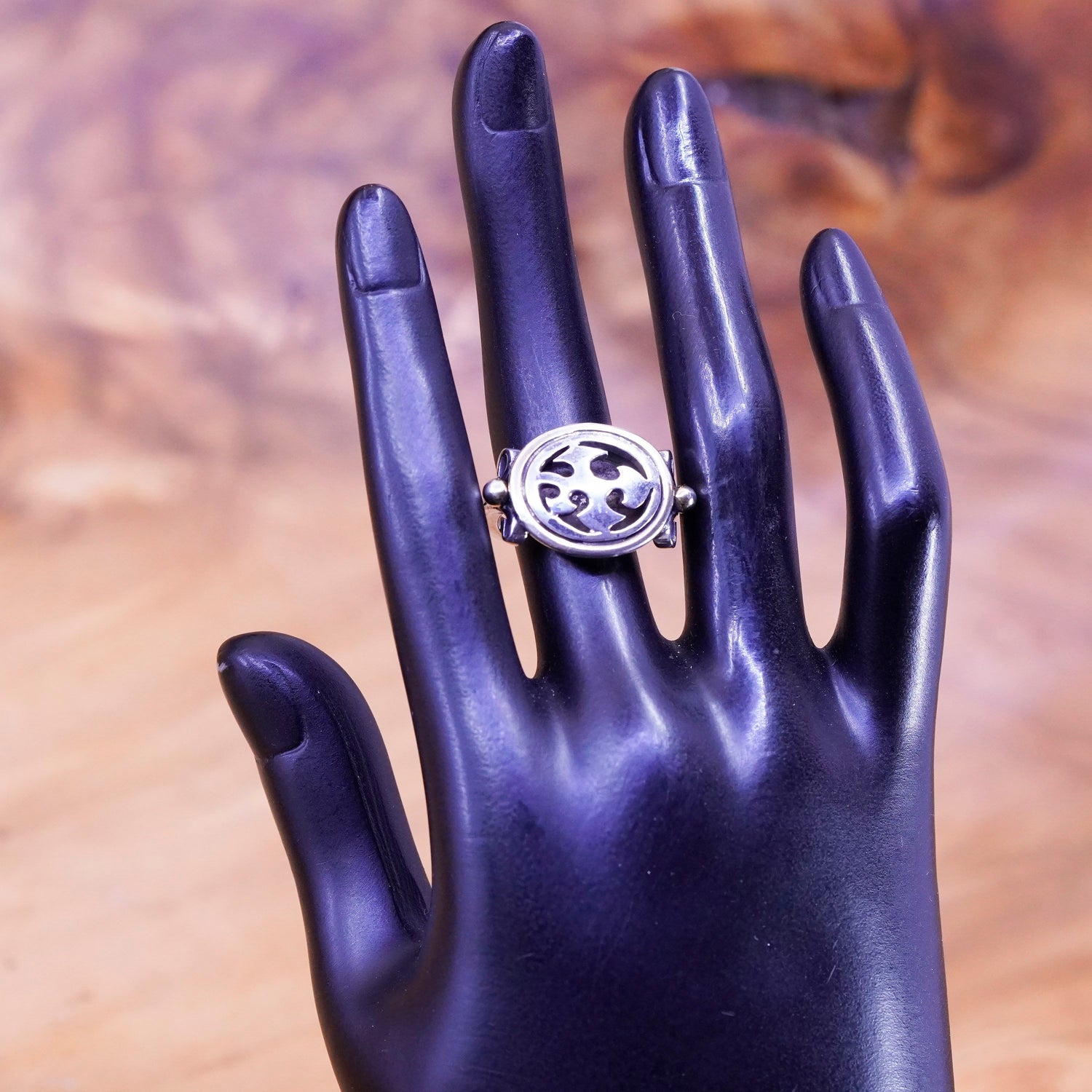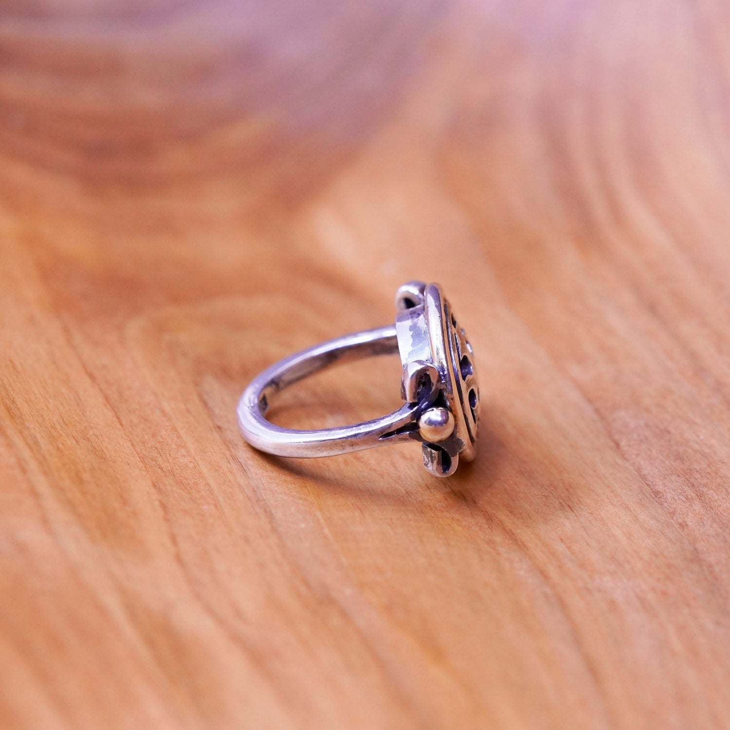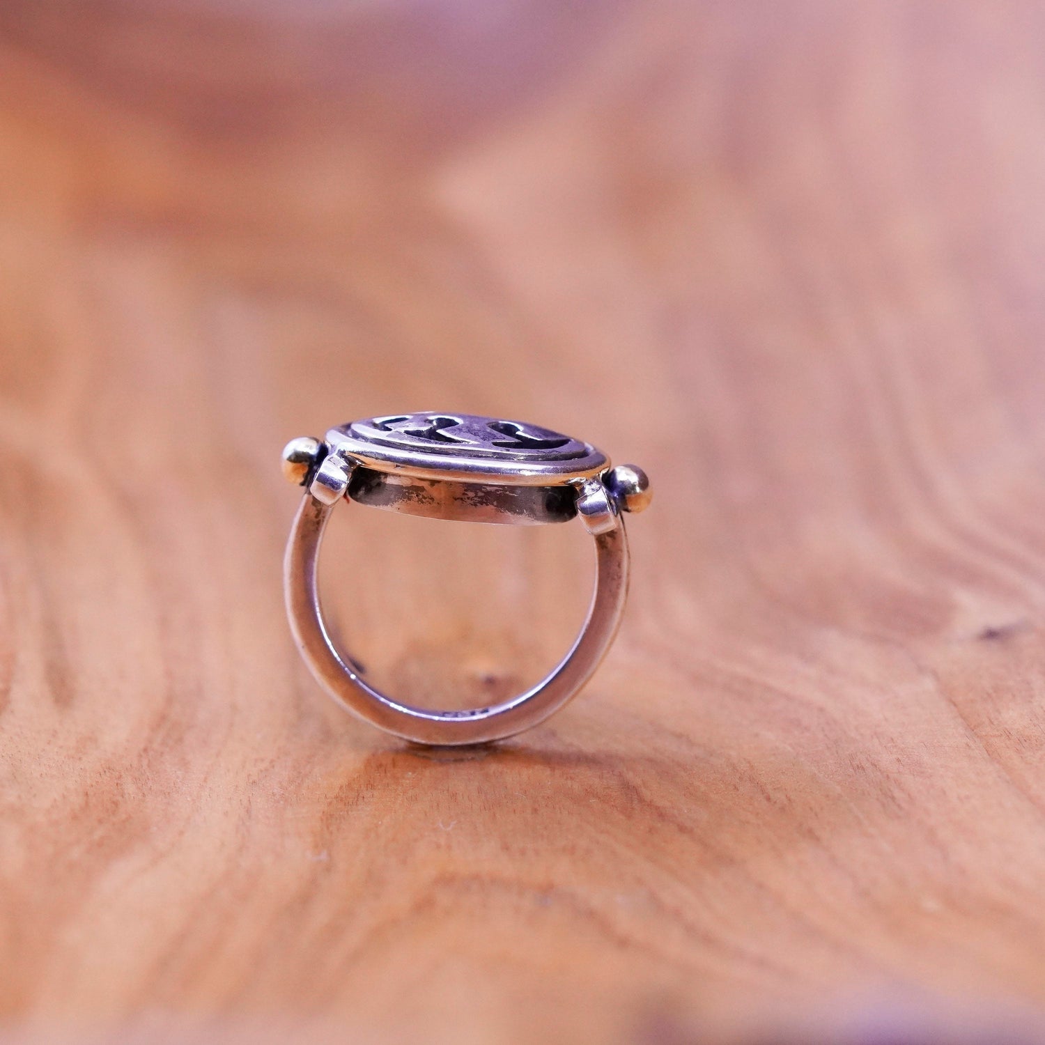Size 5.5, modern Ireland two tone Sterling 925 silver handmade ribbed ring with filigree details, stamped 925