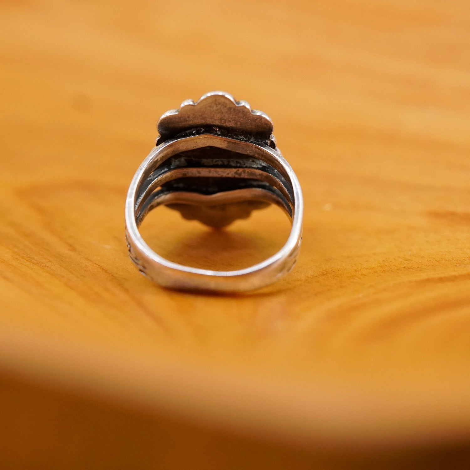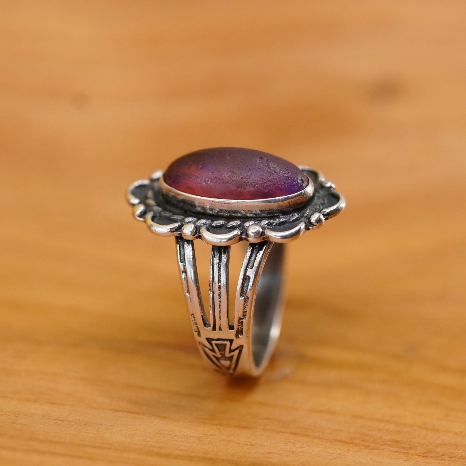 Size 5.5, Sterling 925 silver ring, Native American, Navajo dragon breath glass
