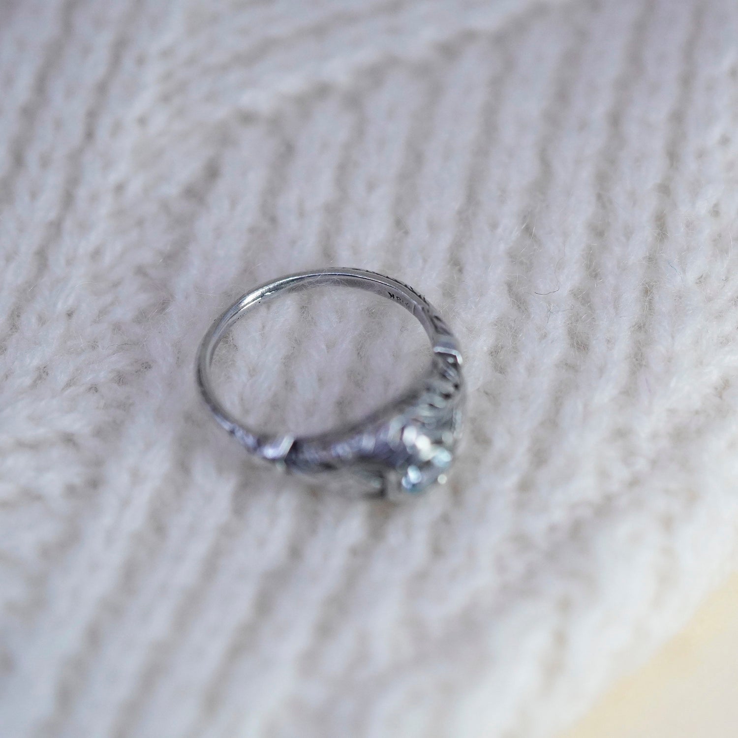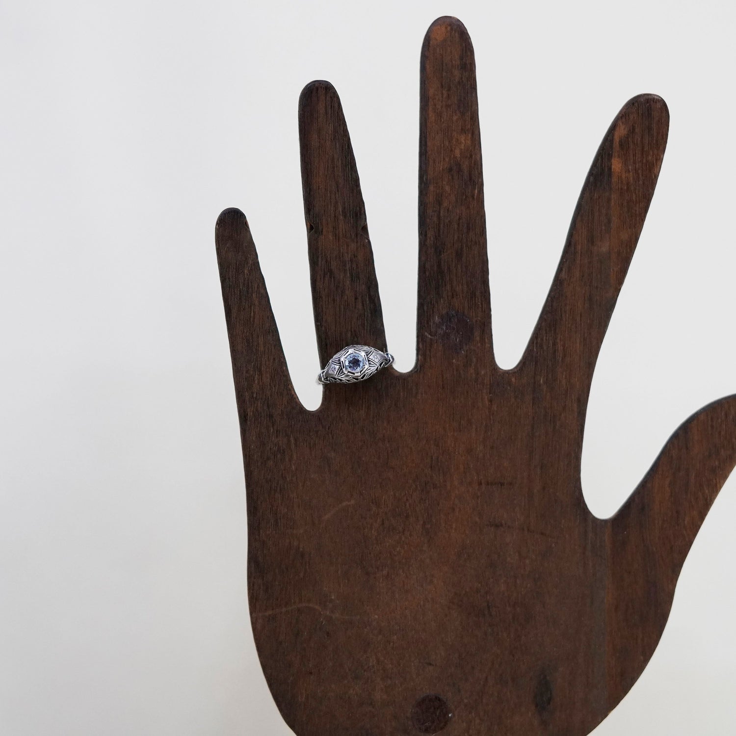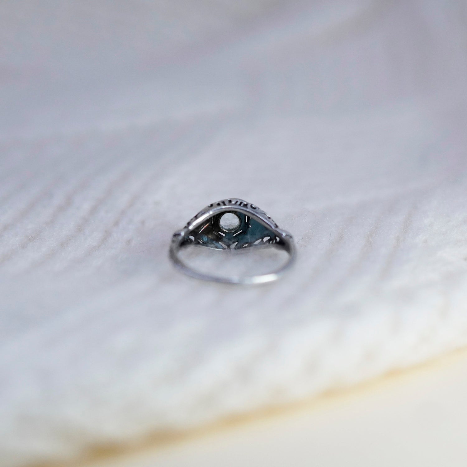 Size 5.5, vintage Sterling silver statement ring, 925 filigree band with blue topaz, stamped 925