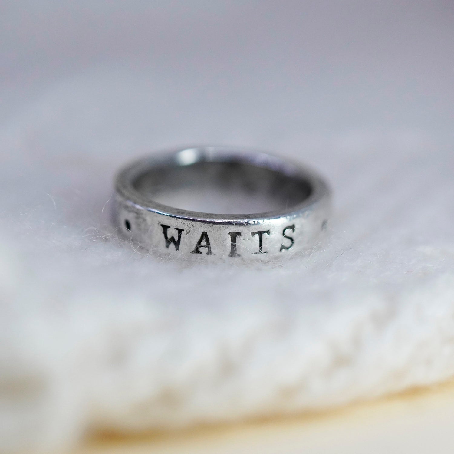 Size 5.75, Vintage sterling silver handmade ring, 925 quote band engraved "true love waits", stamped Sterling