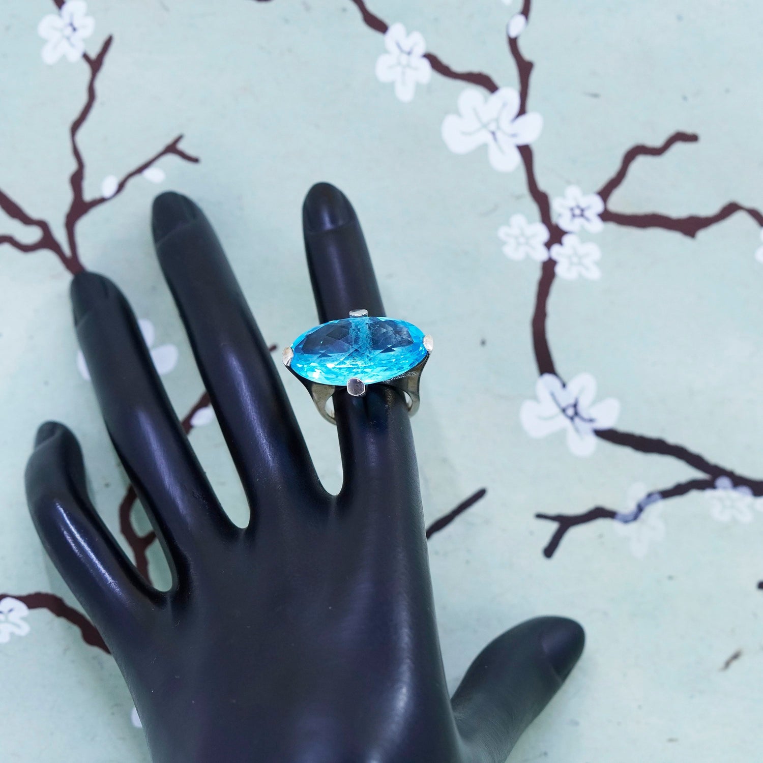 Size 5, Vintage Italian Nomination sterling silver ring, 925 statement ring with blue crystal, stamped 1584 made in Italy 925 nomination
