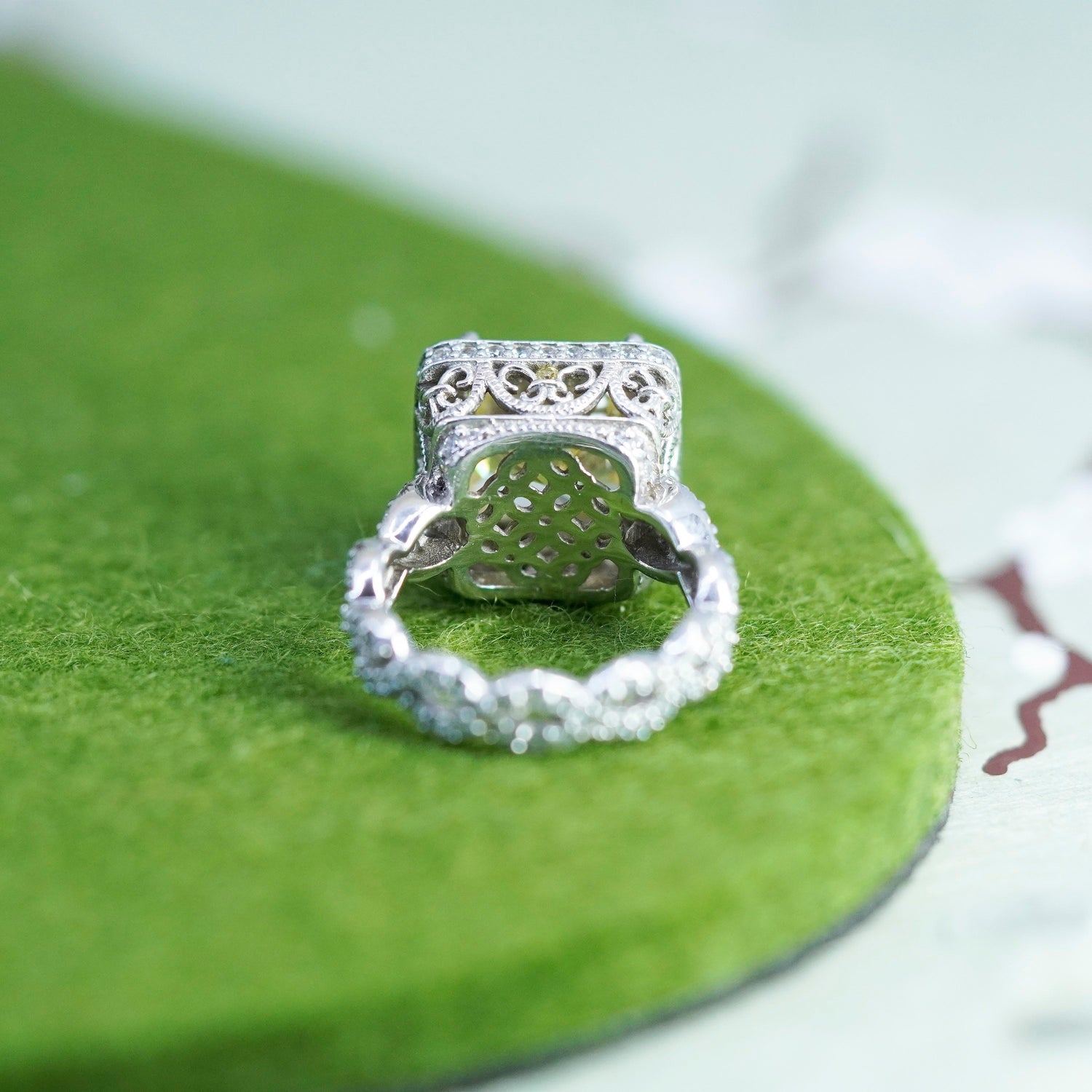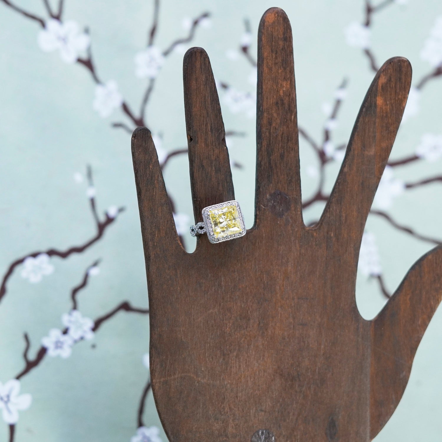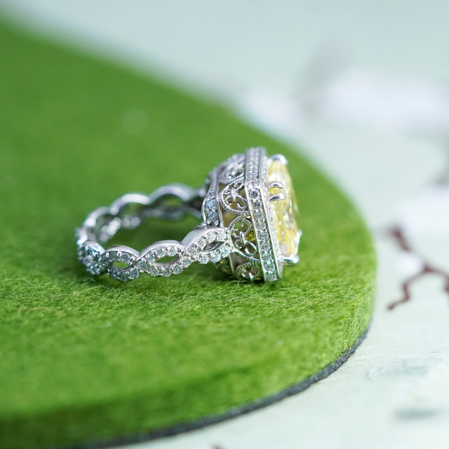 Size 5, vintage Sterling 925 silver band ring with citrine and cluster cz