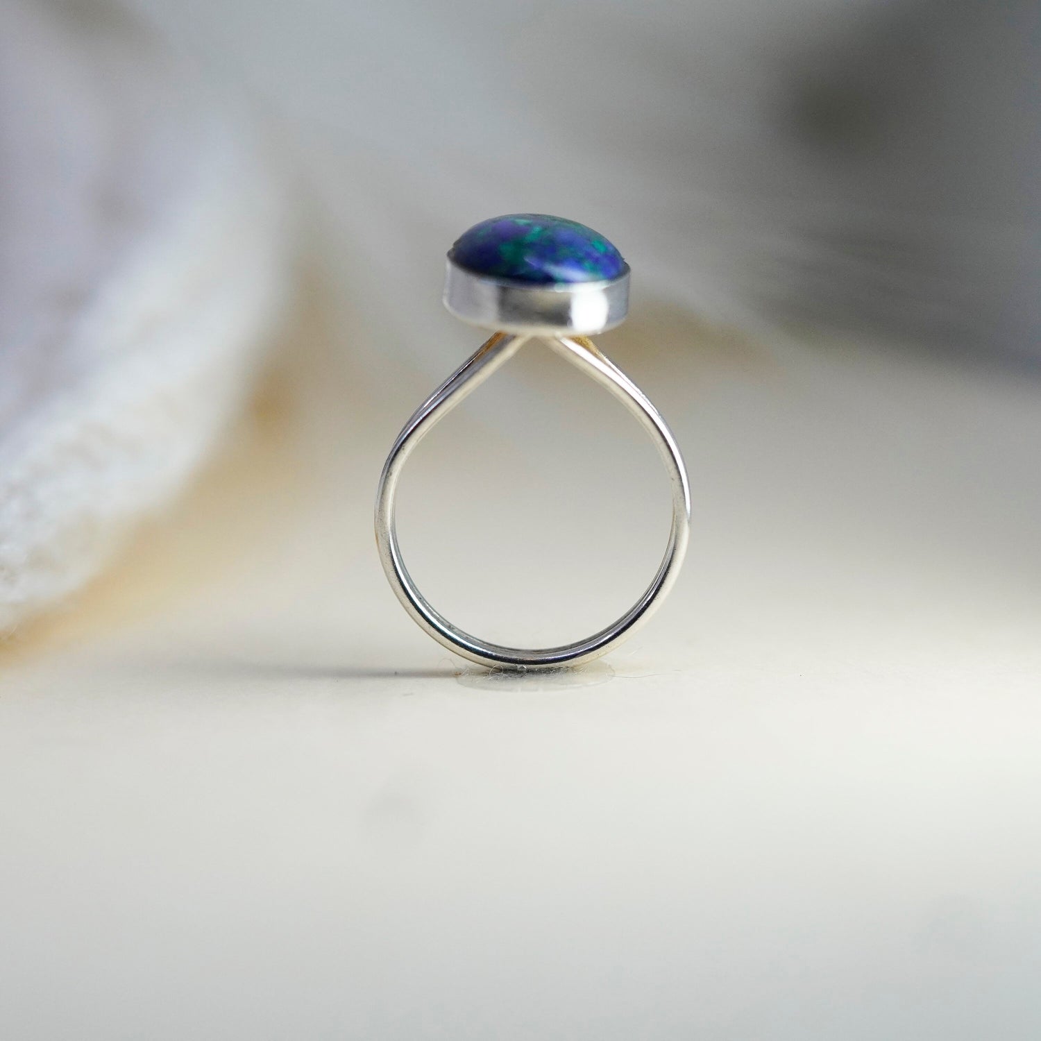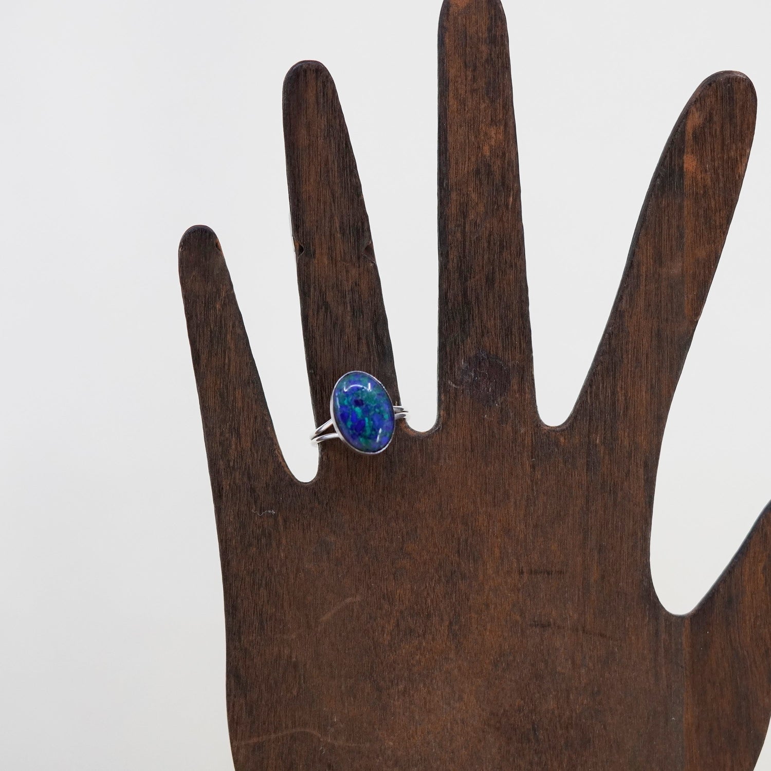 Size 5, Vintage sterling 925 silver handmade ring with azurite inlay