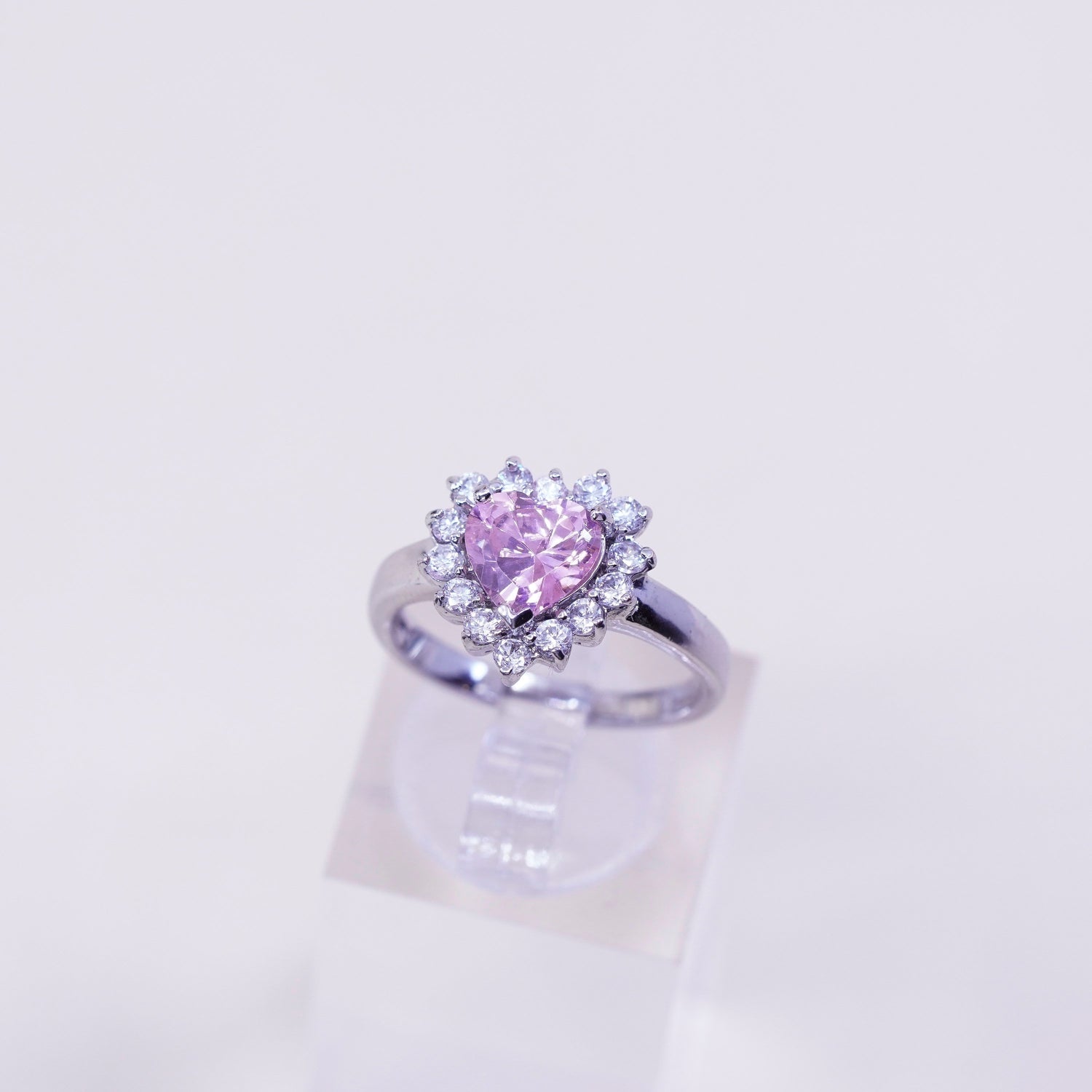 Size 6.25, 2.8g, vintage 12K white gold engagement pink heart ring with Cz