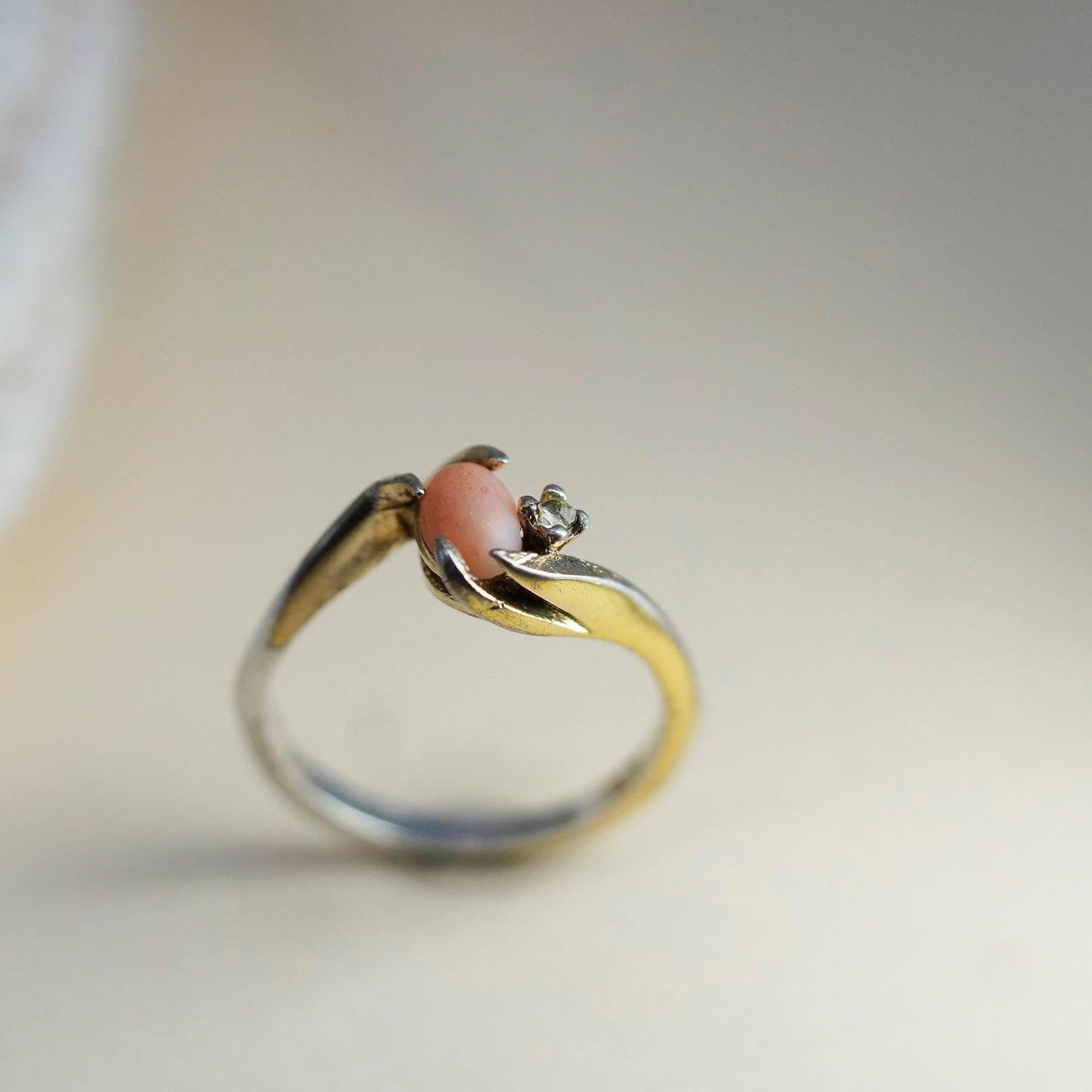 Size 6.25, Vermeil gold over sterling 925 silver ring with gold stone and Cz, stamped Sterling